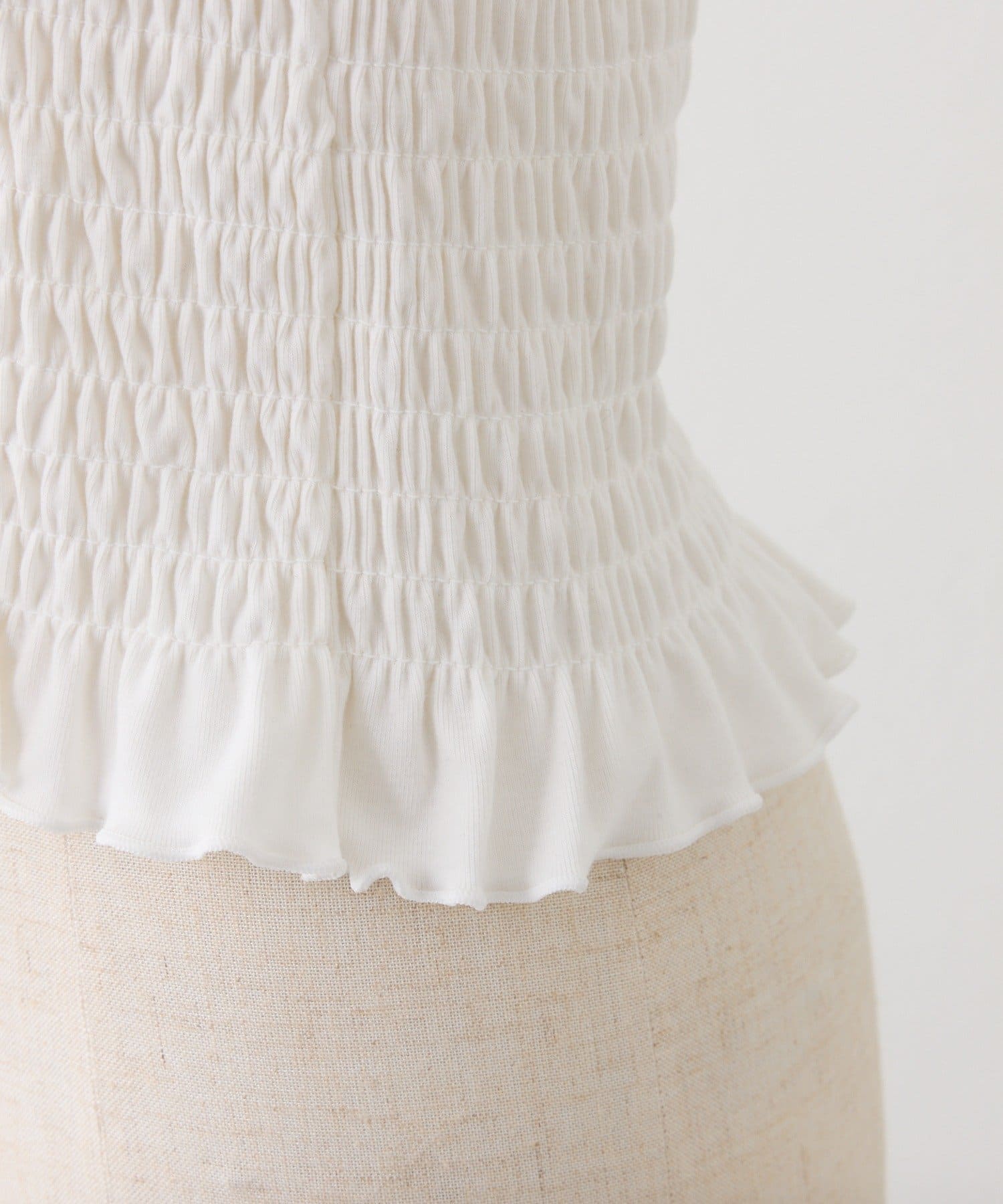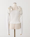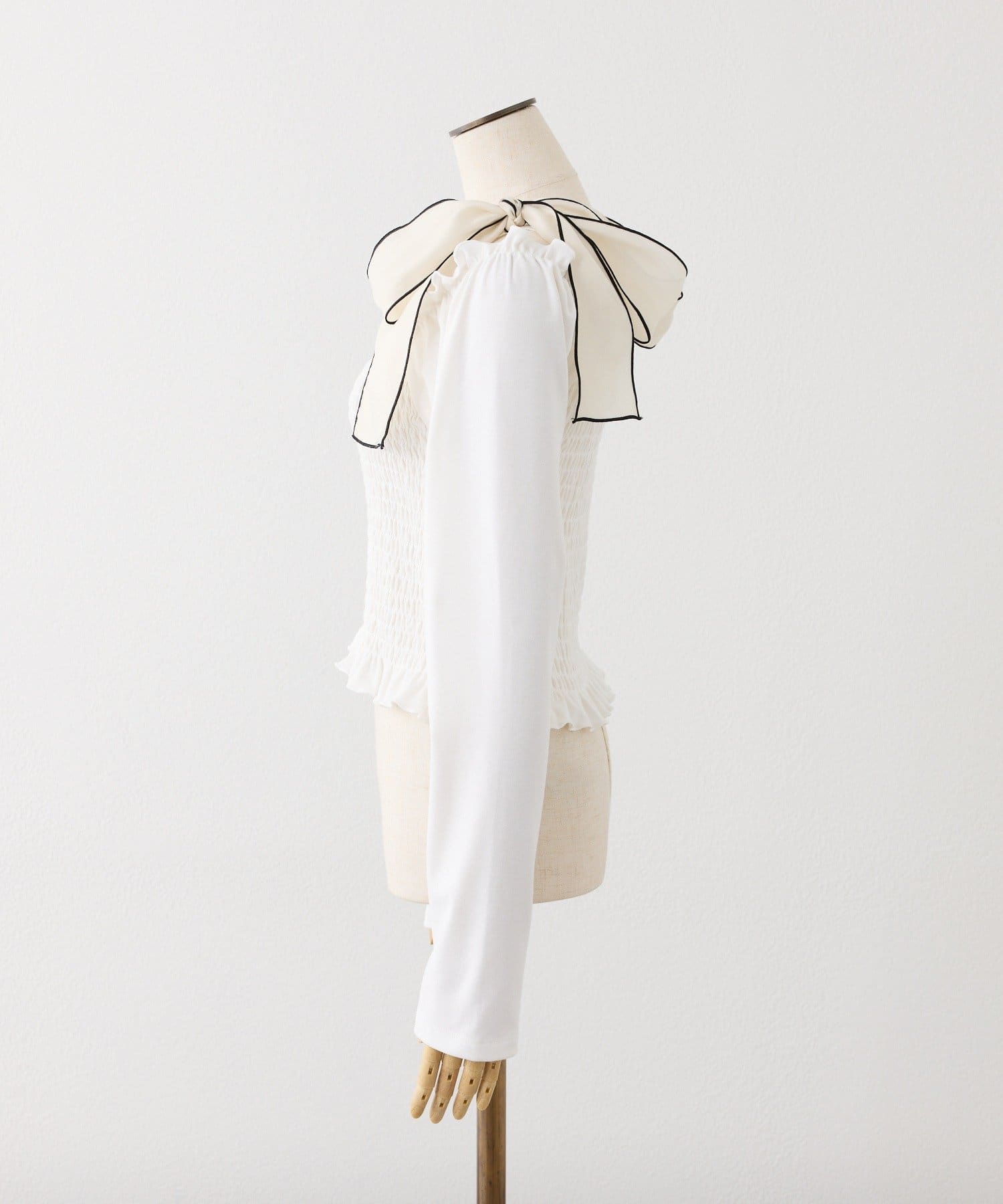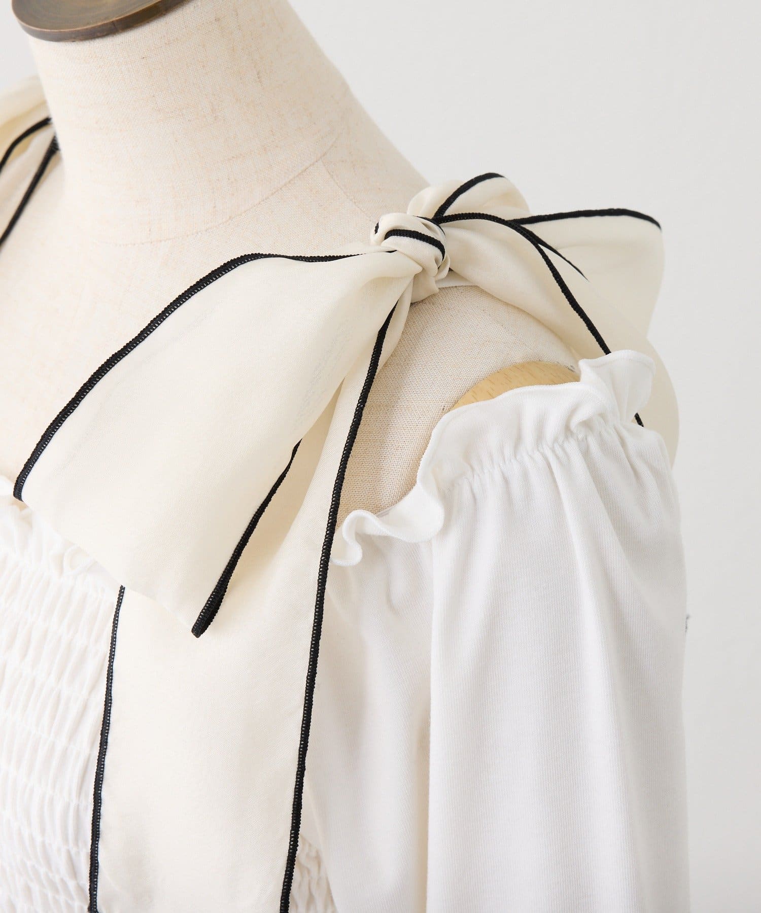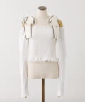 肩リボンシャーリングトップス