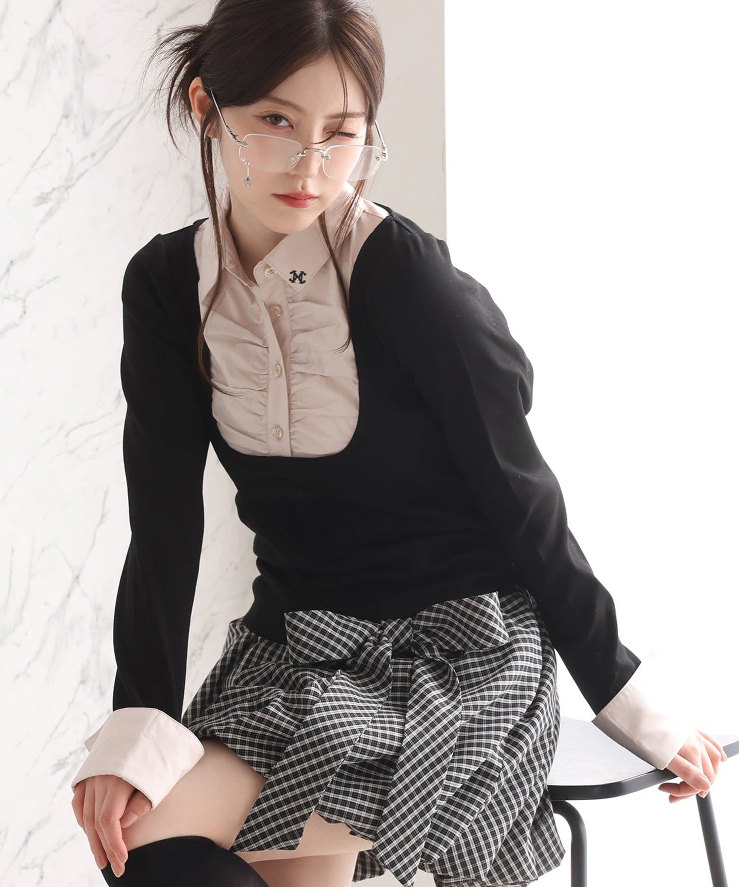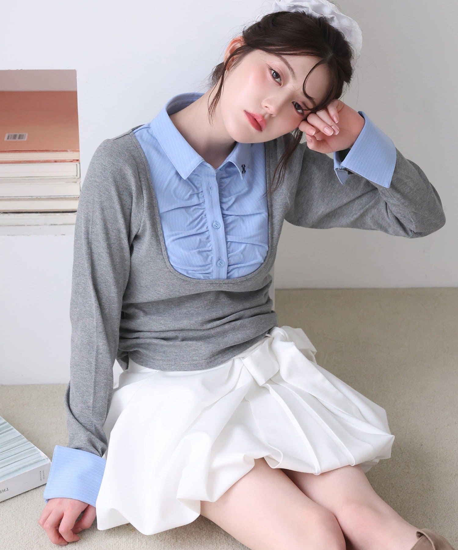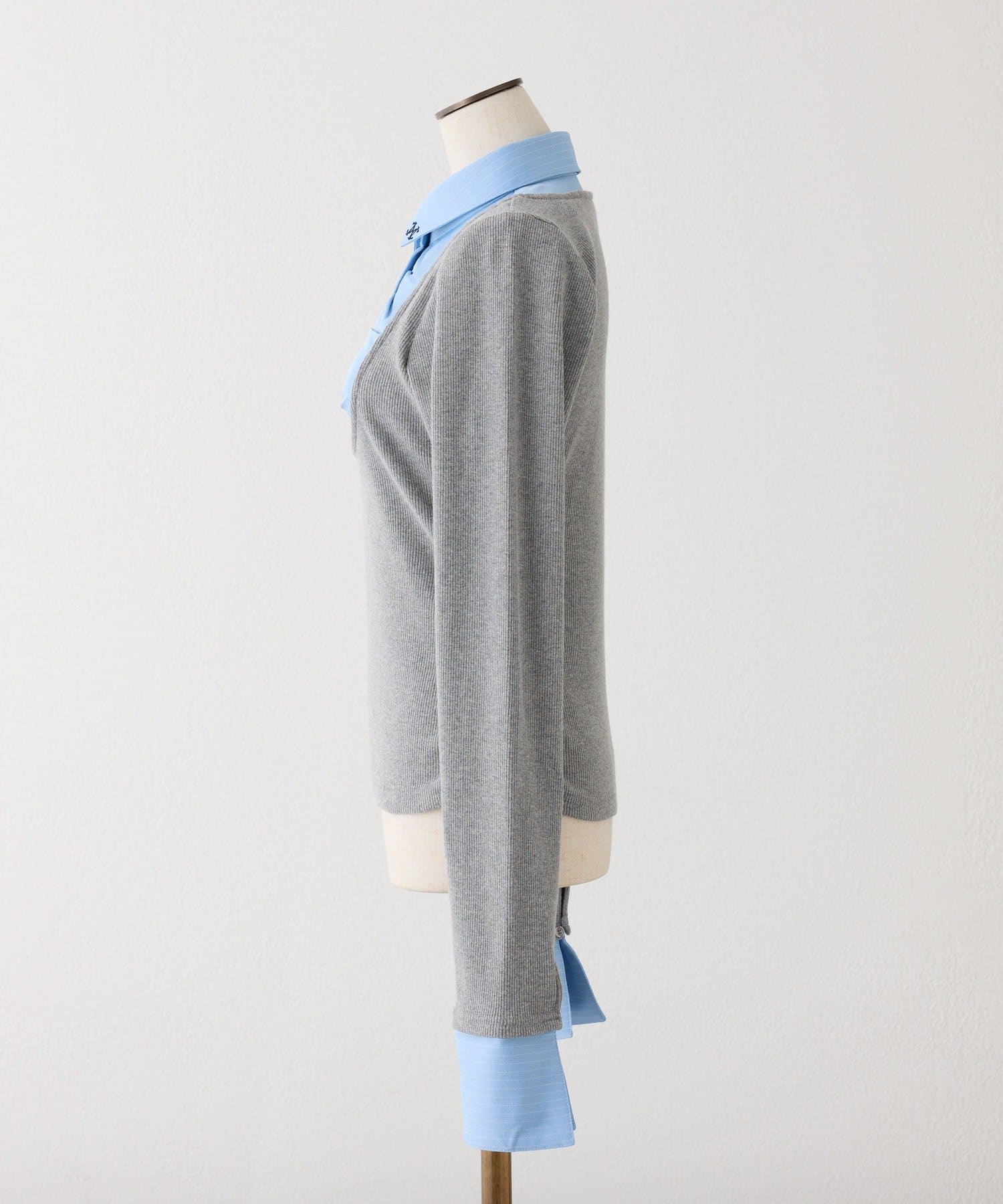 カットソーにシャツがドッキングされた、1枚でレイヤード風に見える万能トップス。