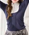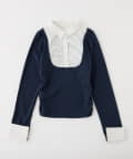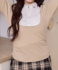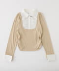 カットソーにシャツがドッキングされた、1枚でレイヤード風に見える万能トップス。