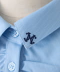 襟元のロゴ刺繡が上品なアクセントになって、甘さも大人っぽさもどっちも叶うデザインです。