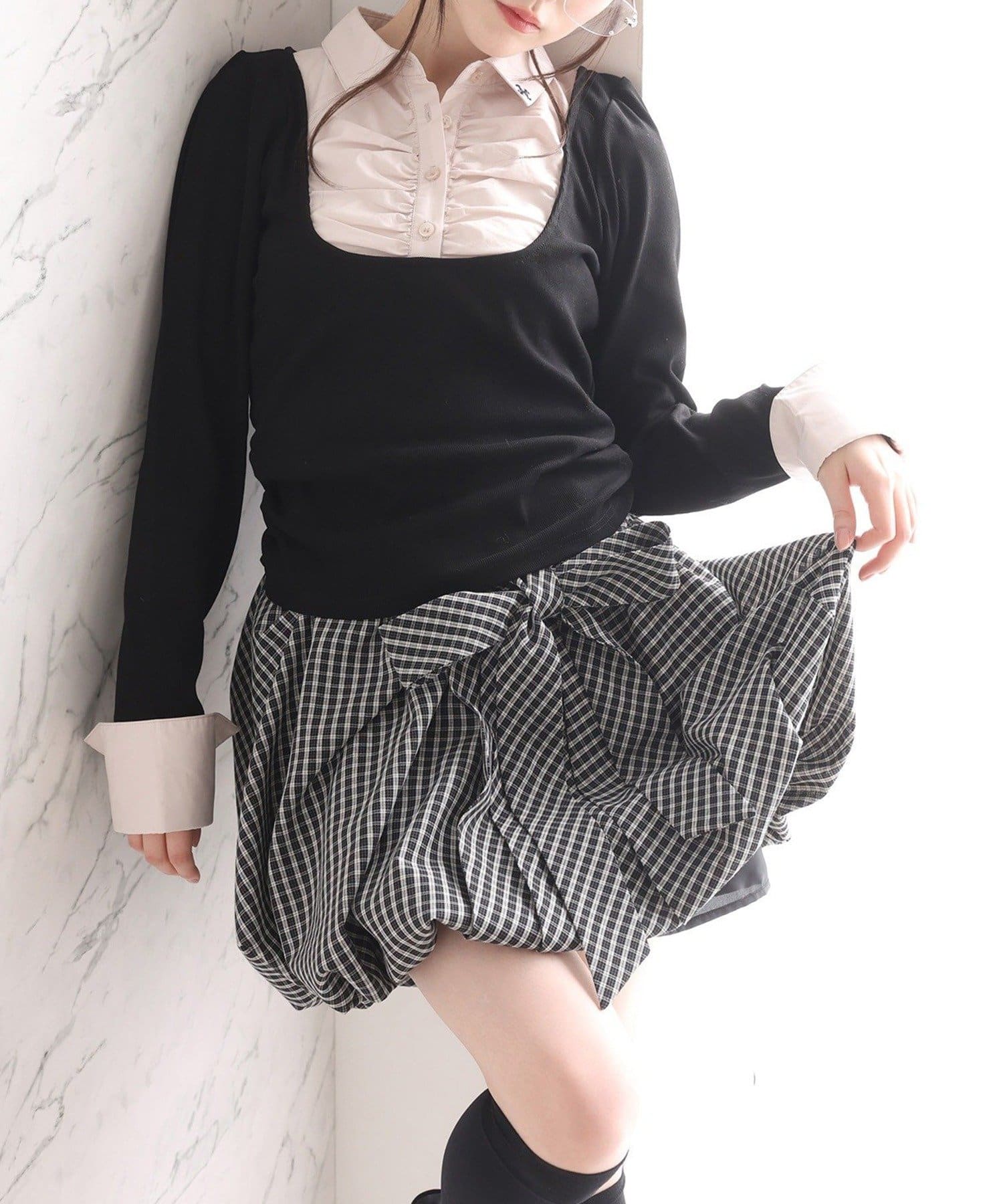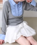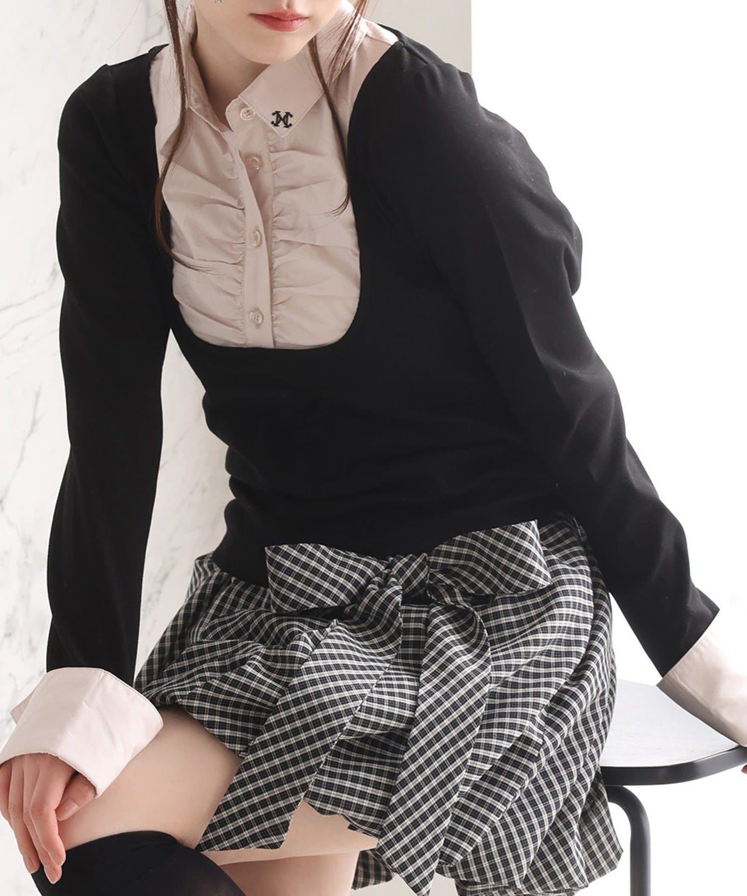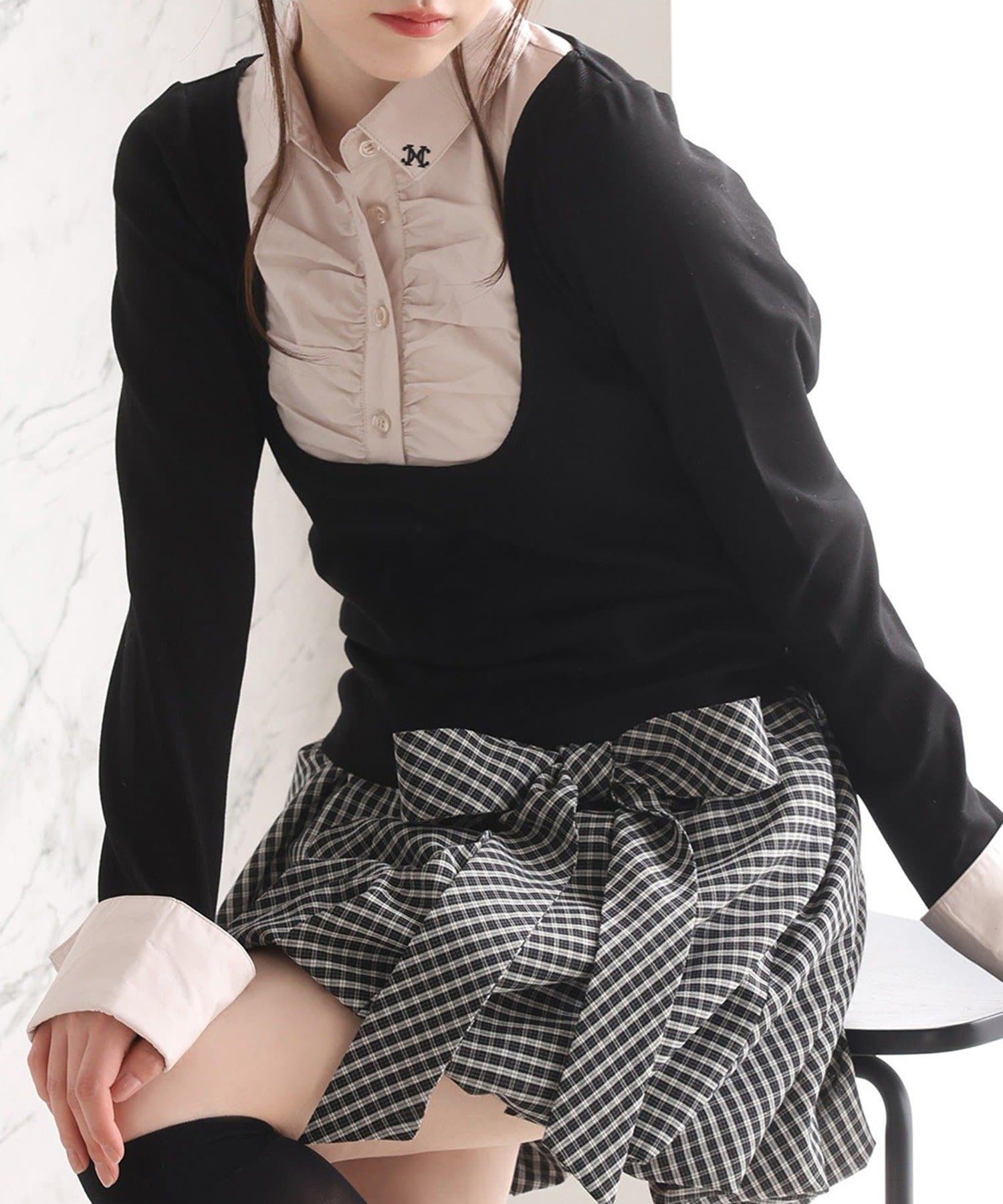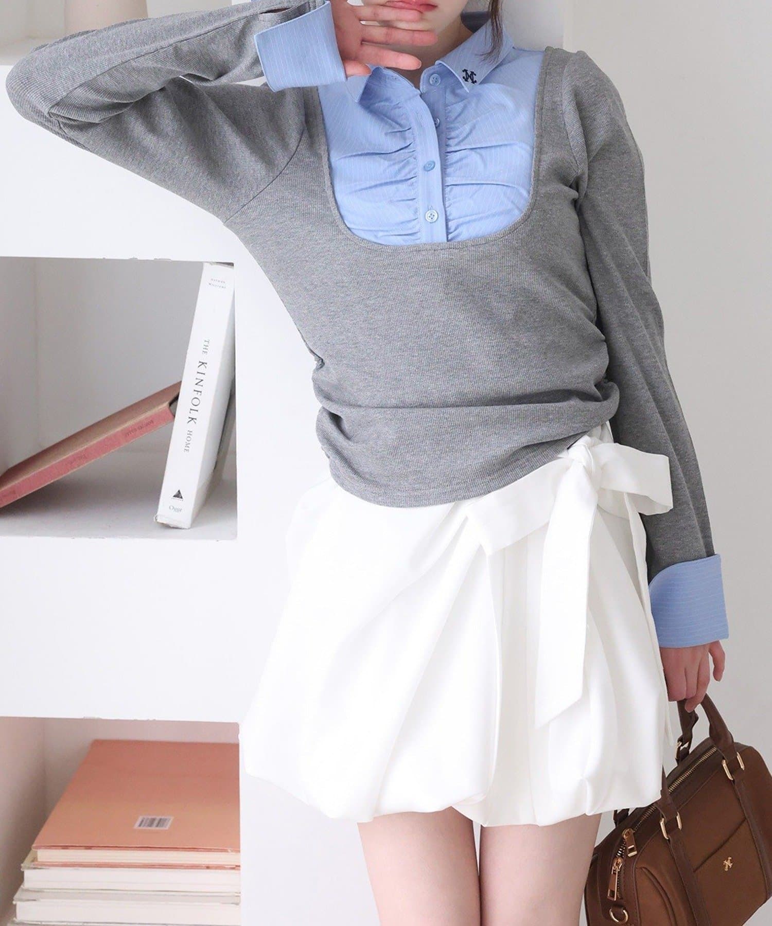 カットソーにシャツがドッキングされた、1枚でレイヤード風に見える万能トップス。