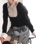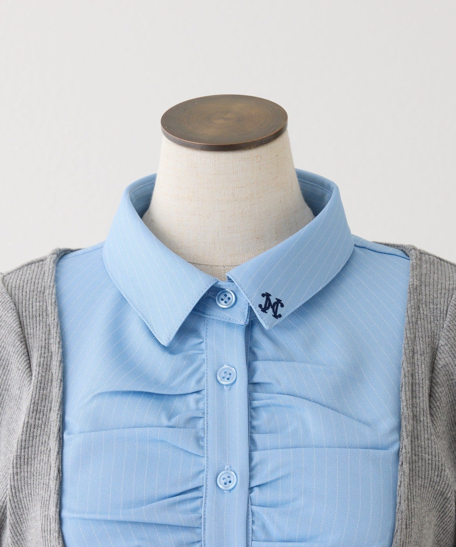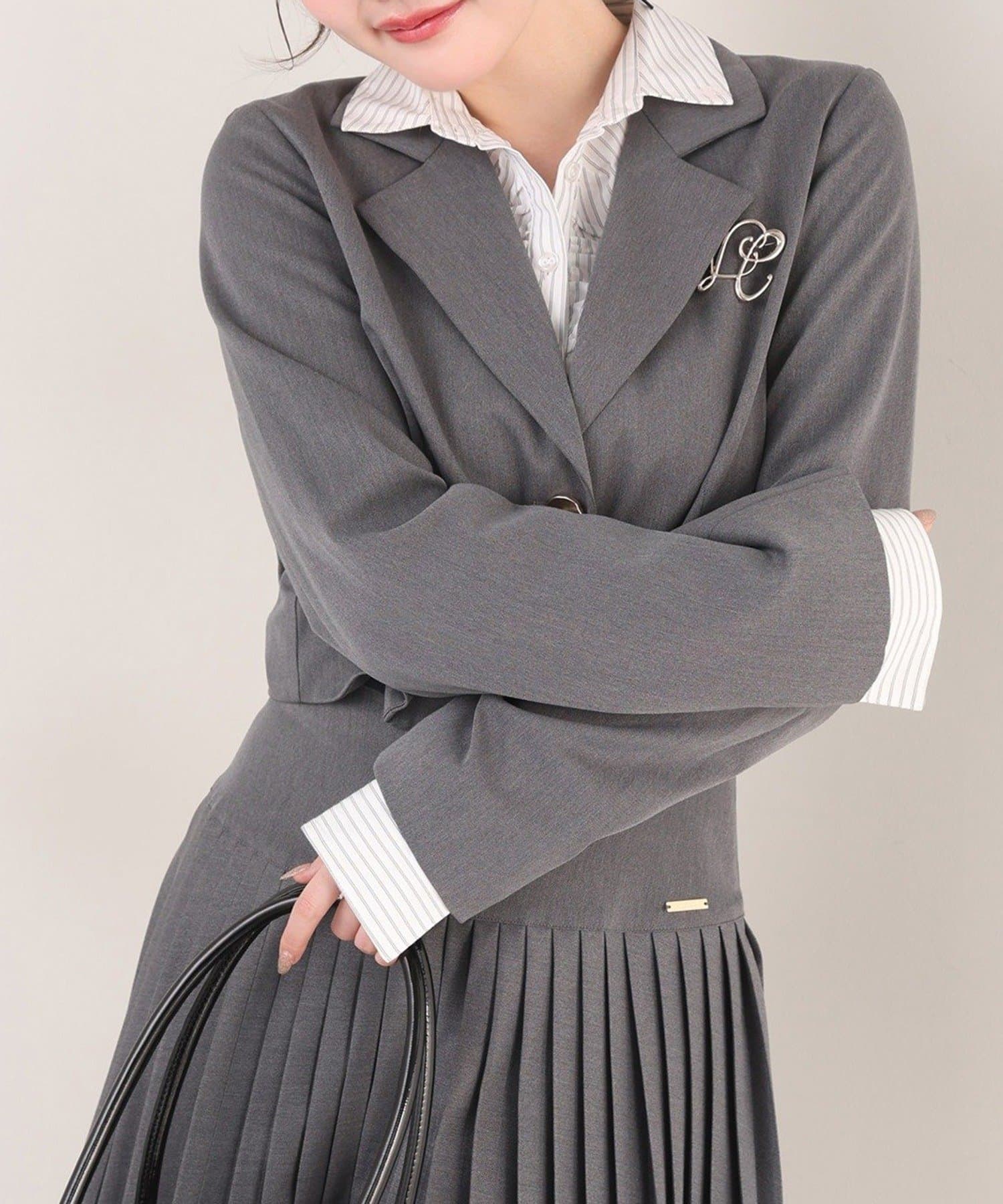 襟元のロゴ刺繡が上品なアクセントになって、甘さも大人っぽさもどっちも叶うデザインです。