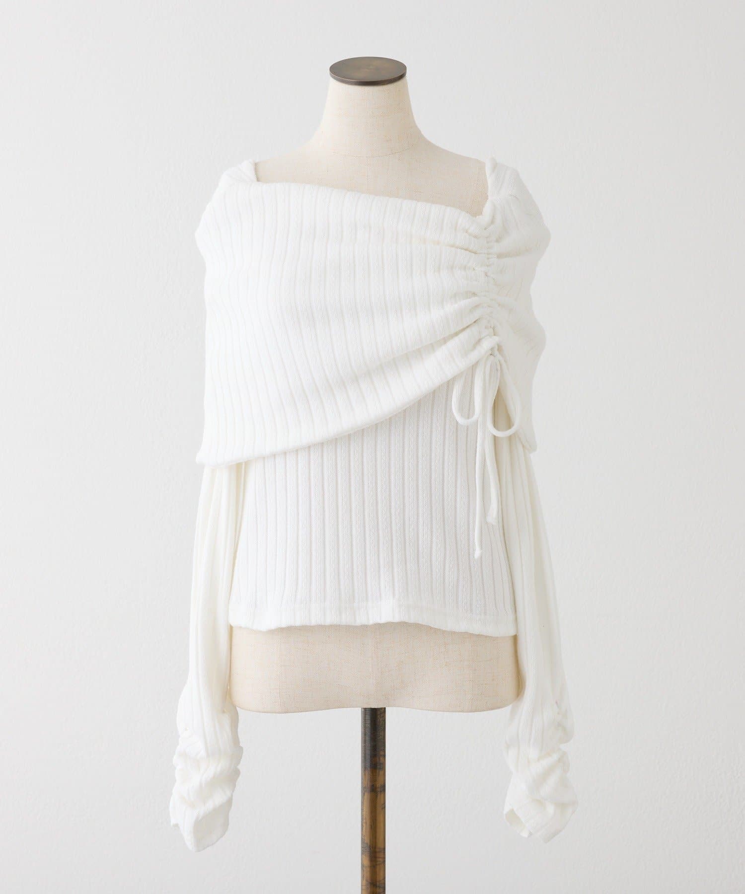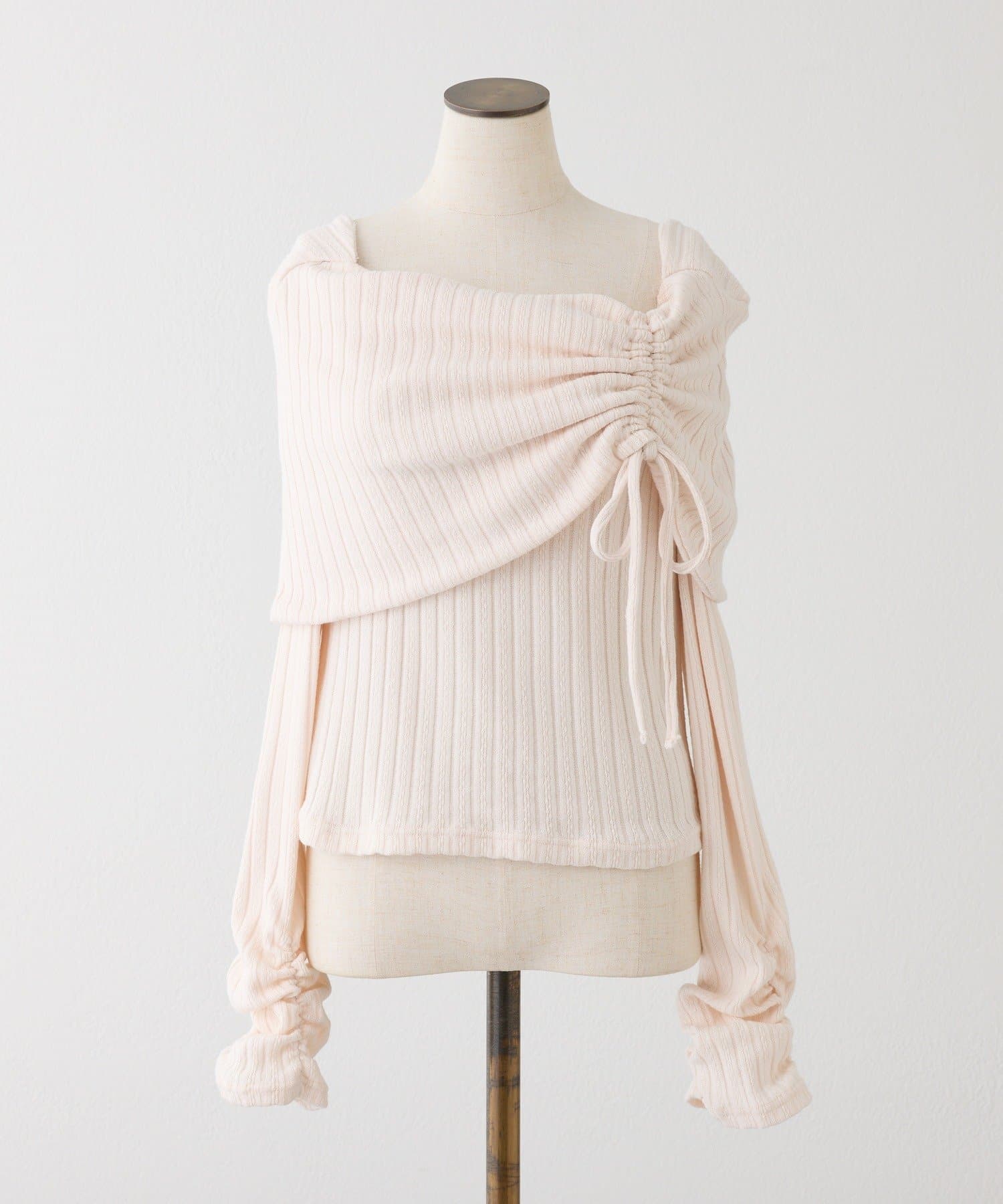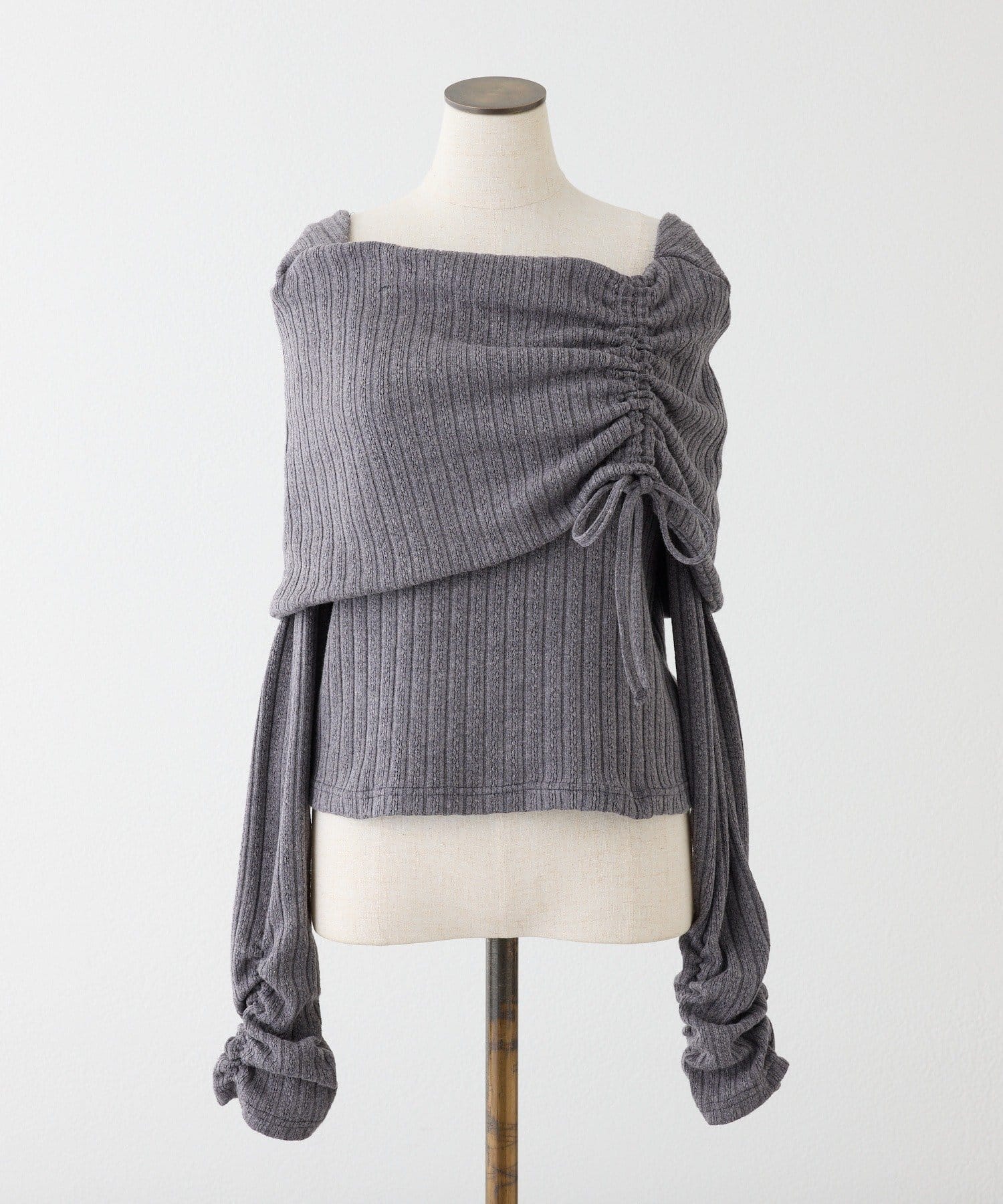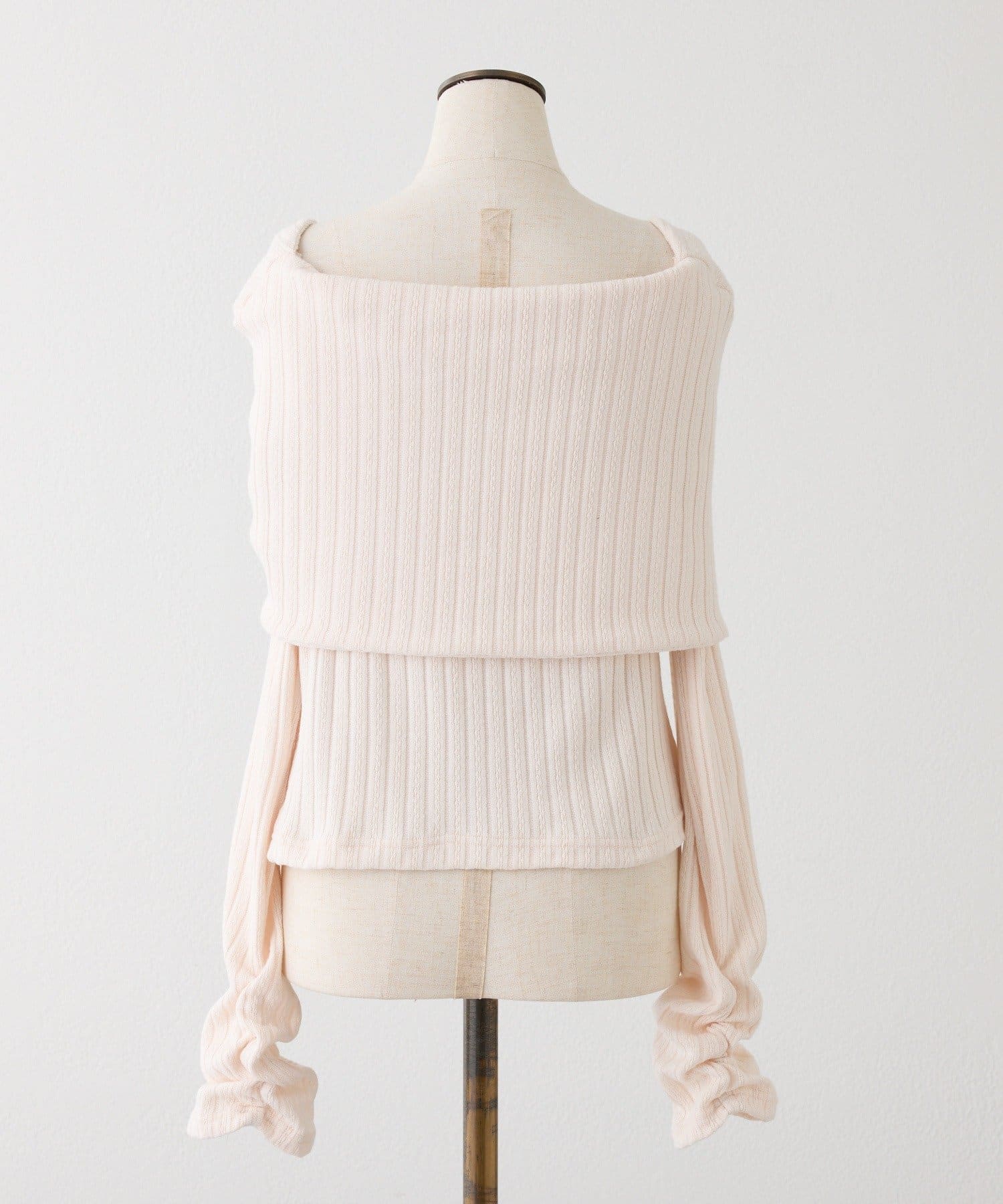 オフショル風のデザインなのでインナーにも困らず着用いただけます。