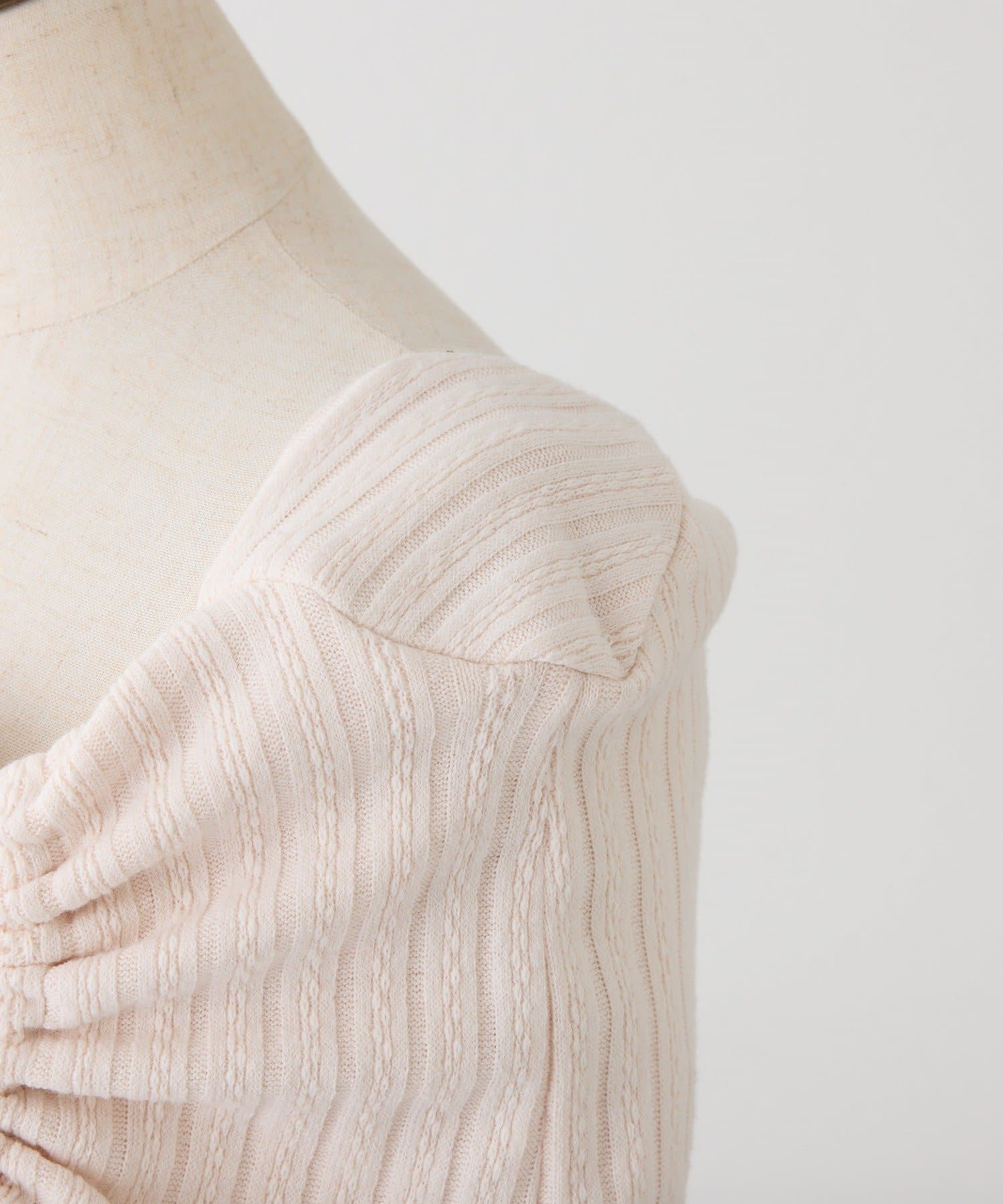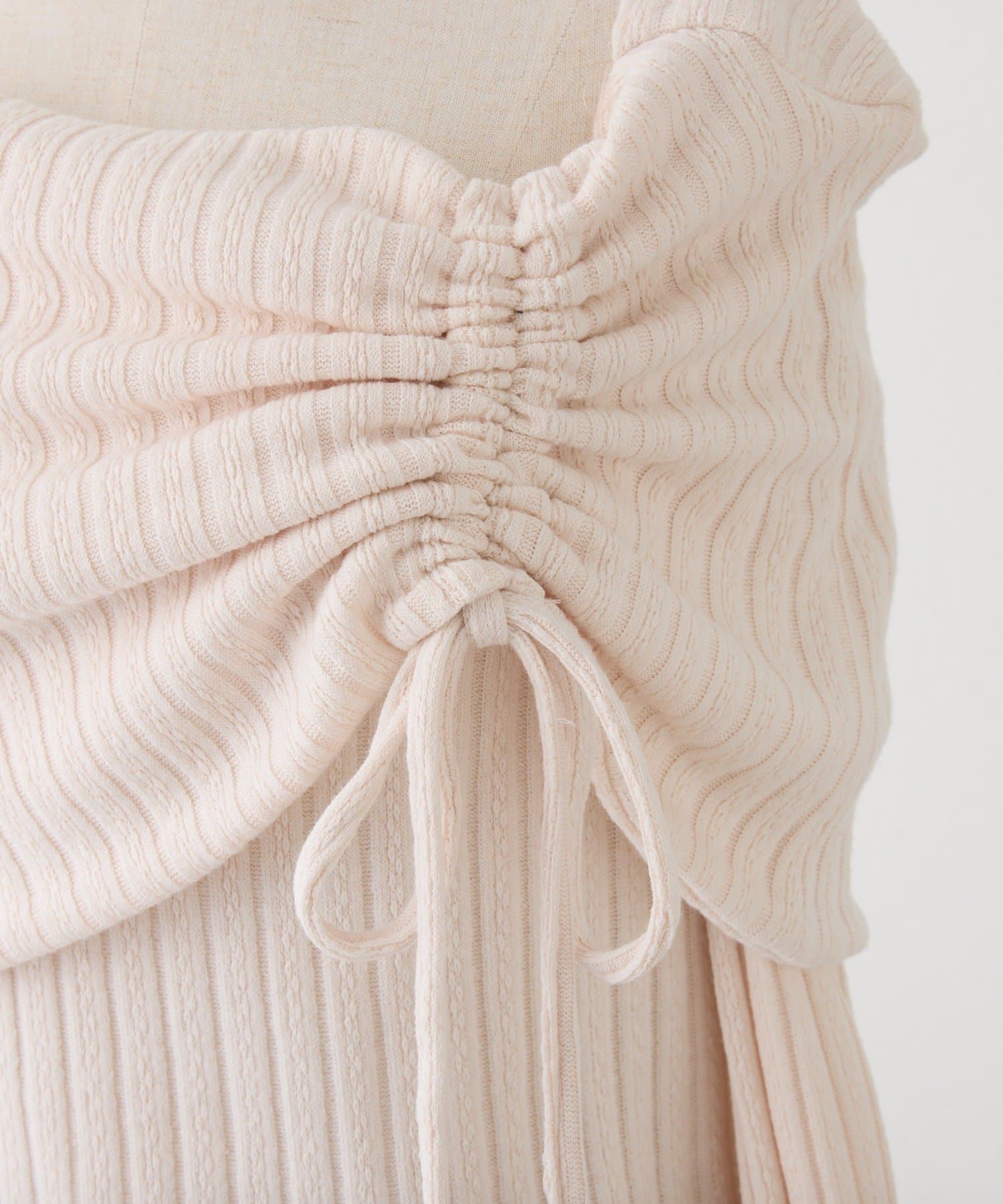 フロント部分はドロスト仕様で、胸元にリボンをあしらい上品なアクセントに。