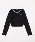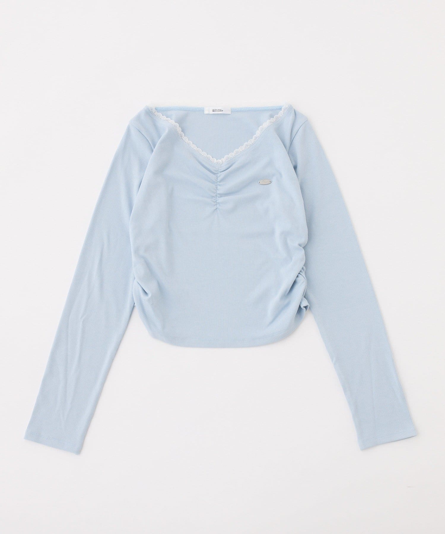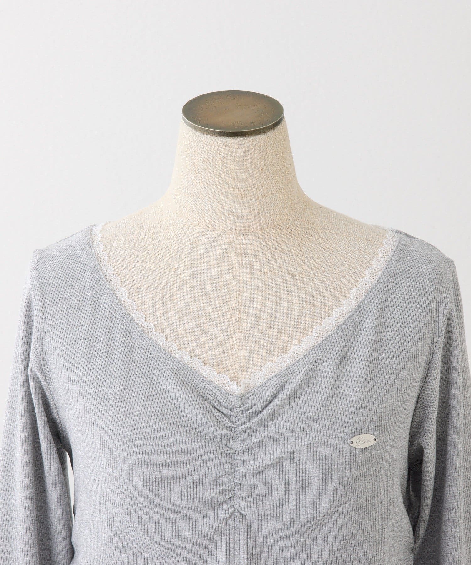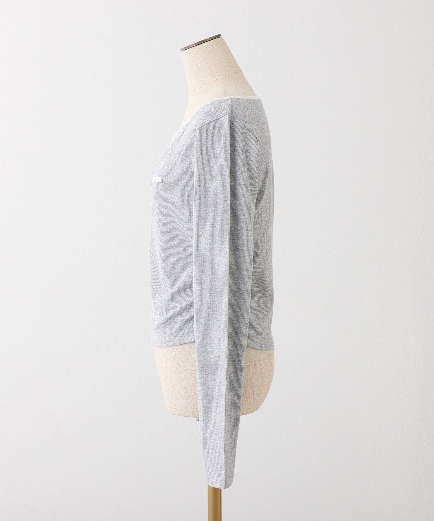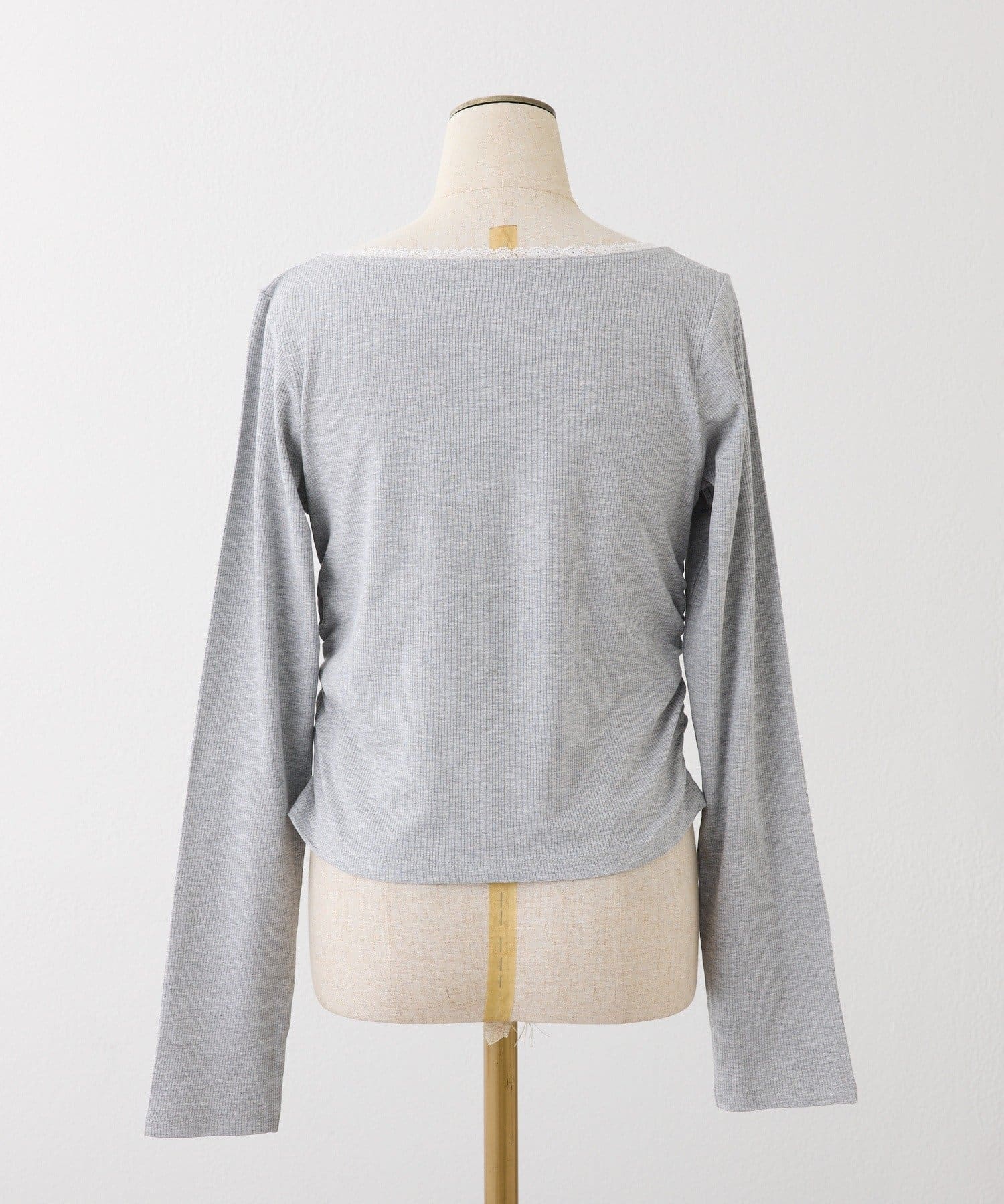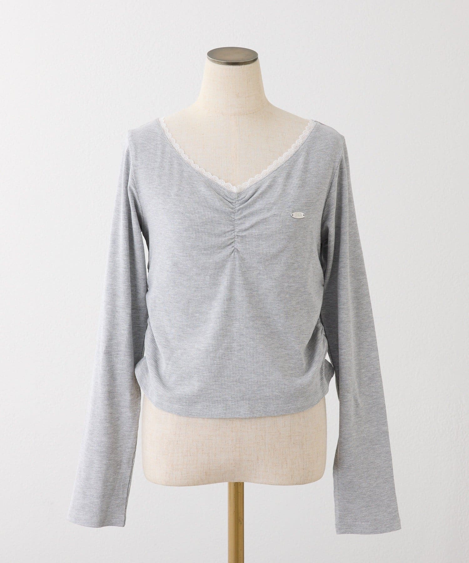 襟元にレースをあしらい、顔まわりを華やかに見せてくれる長袖カットソー。