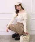 デコルテをきれいに見せてくれるオフショルデザインのリブトップス。
