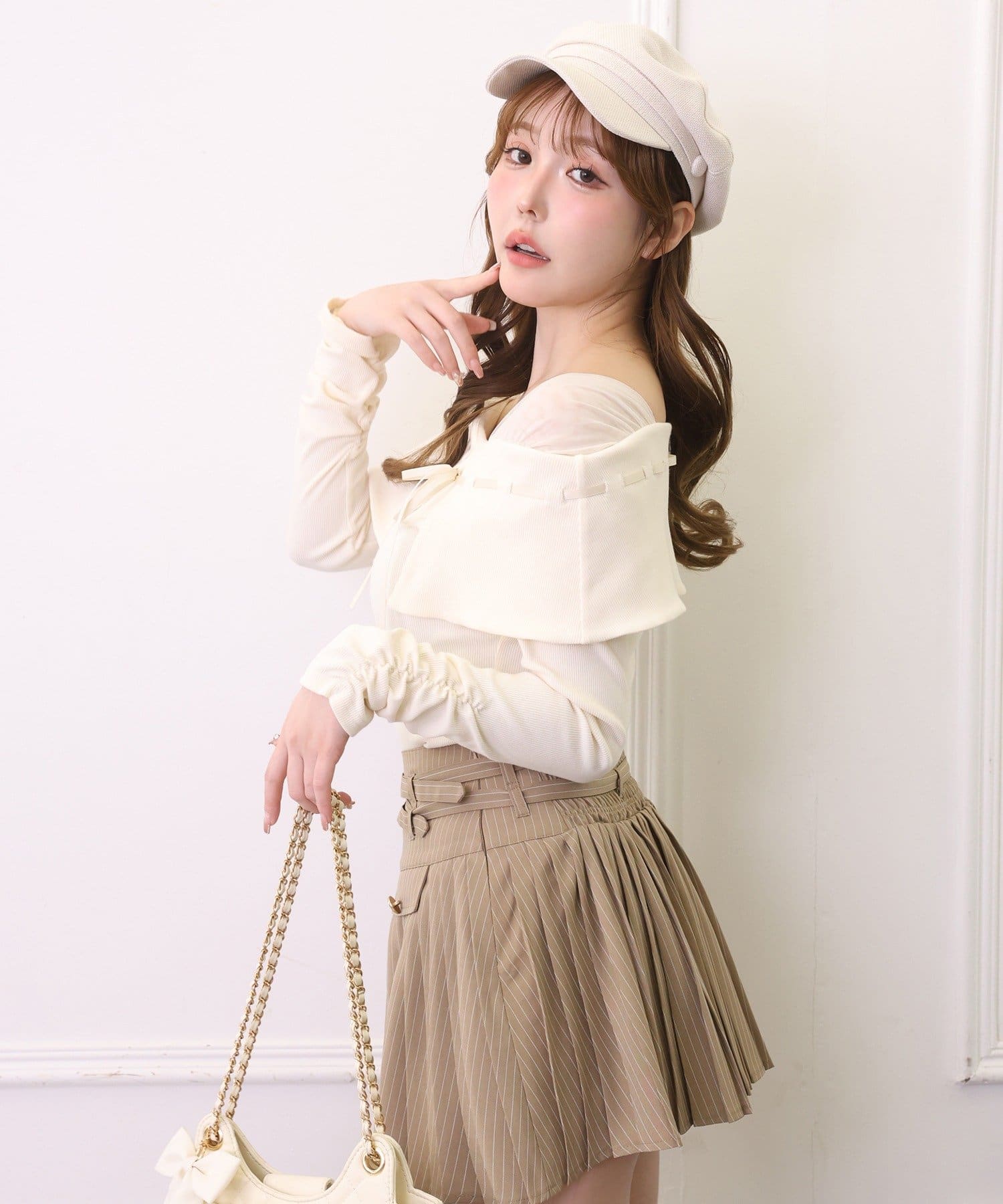 ミニスカートと合わせたガーリーコーデがイチオシ。