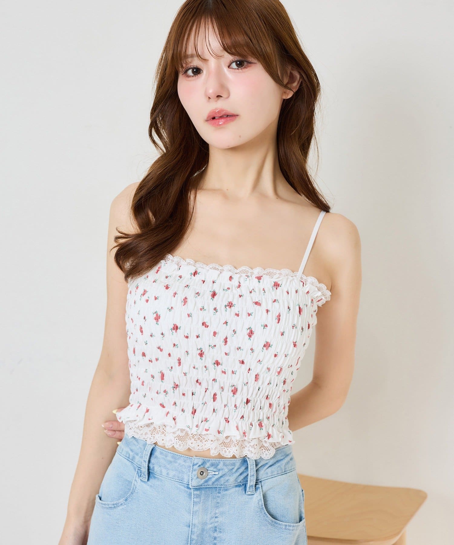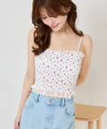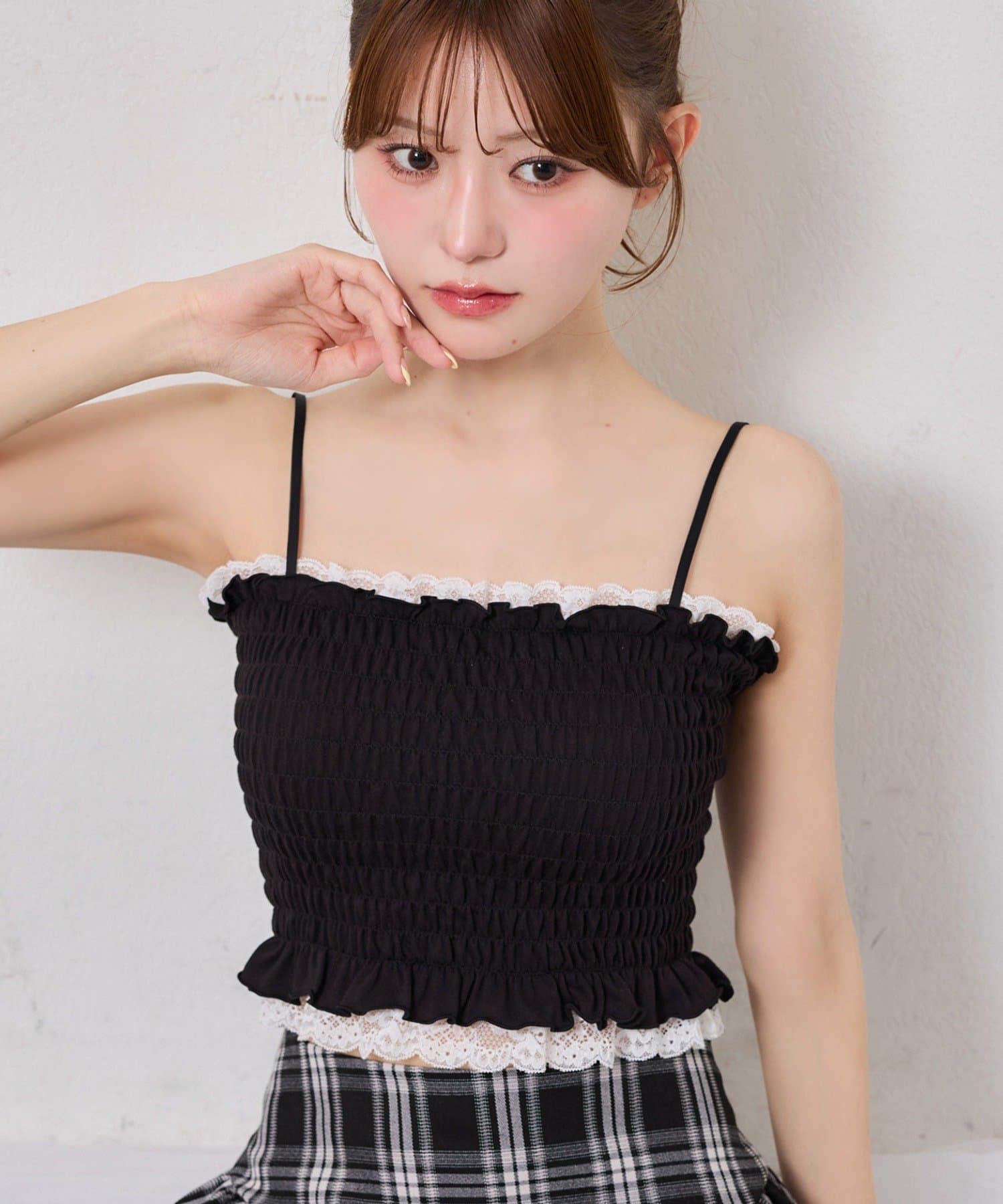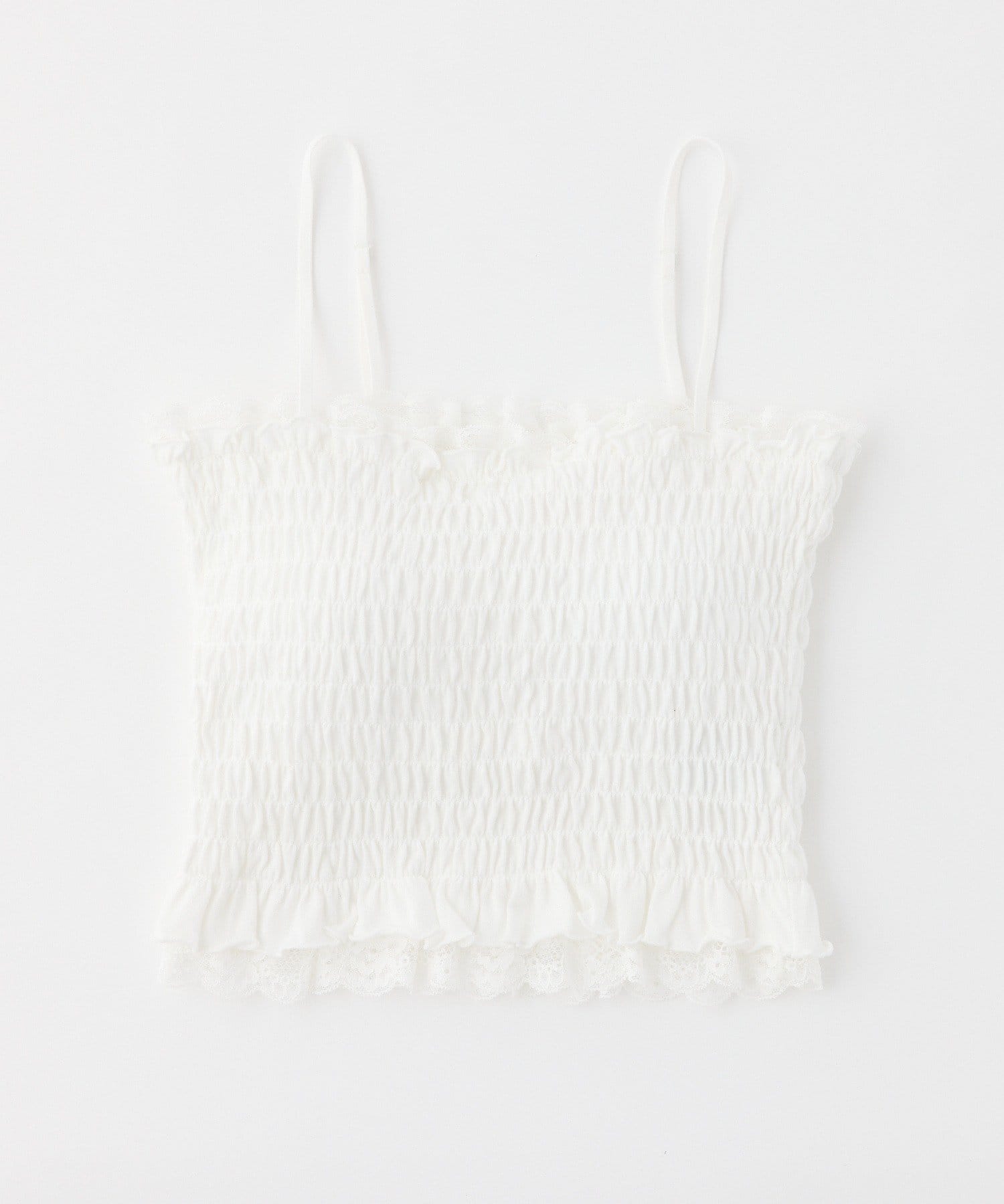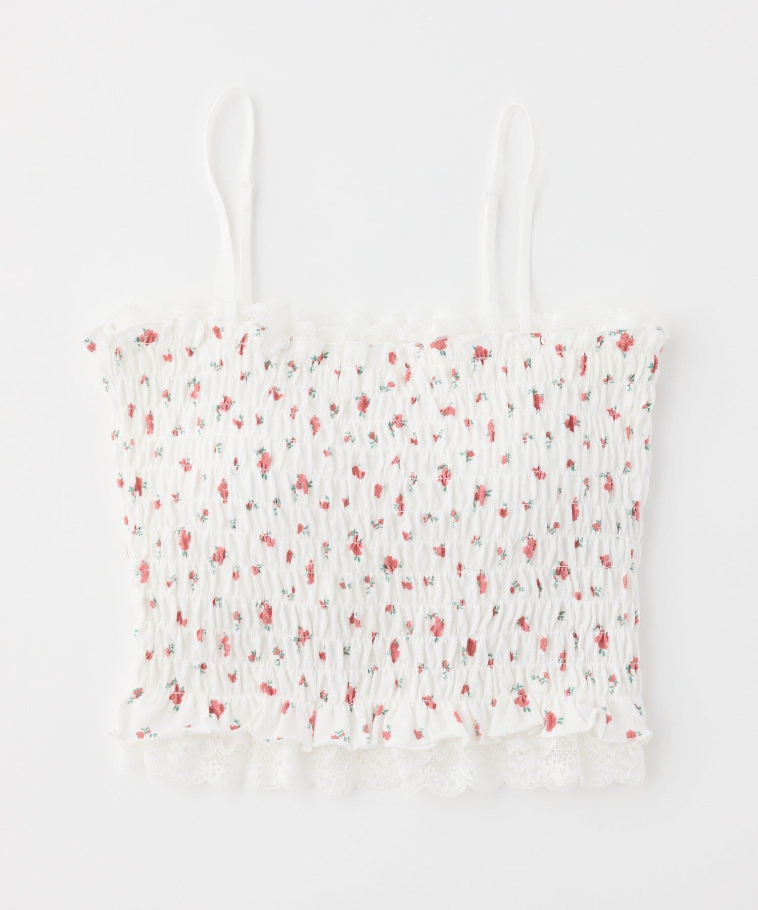 カップ付きレースシャーリングキャミソール