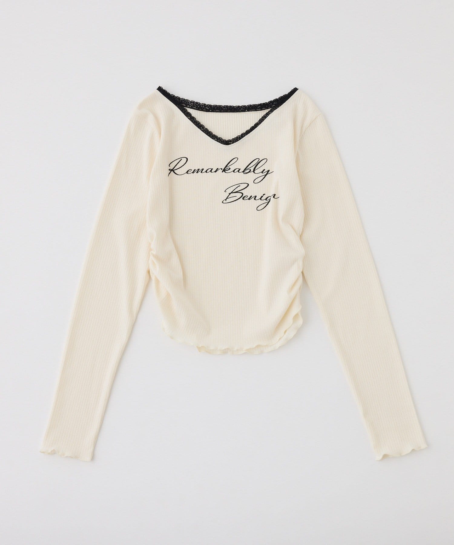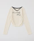 ロゴ刺繍とレース使いがフェミニンな印象のリブトップス。