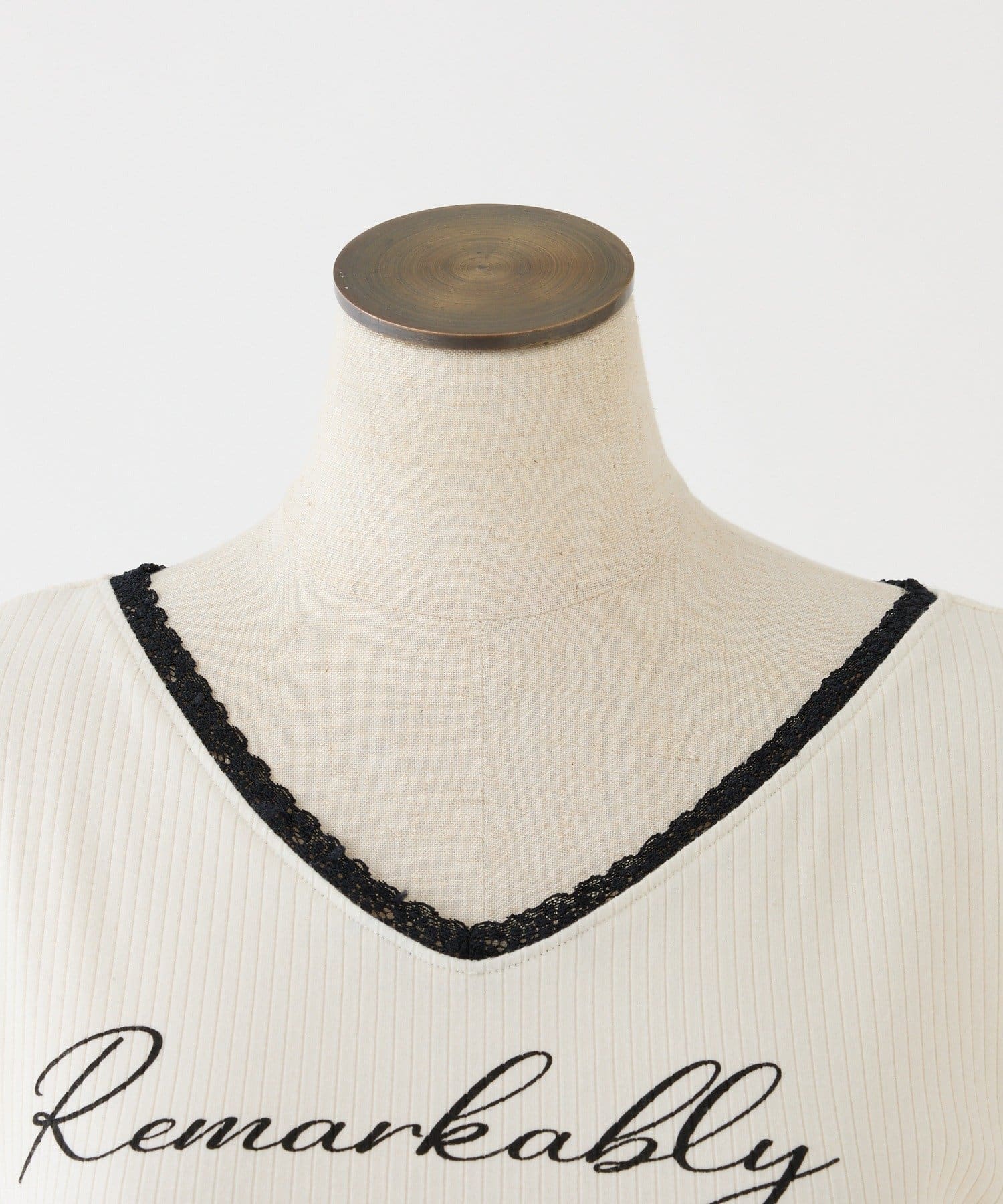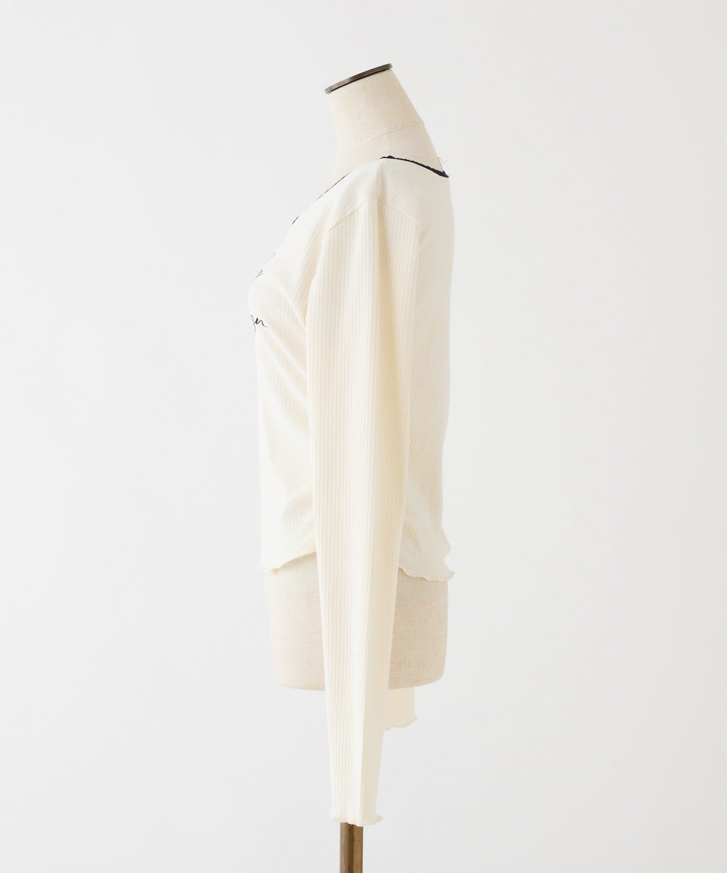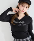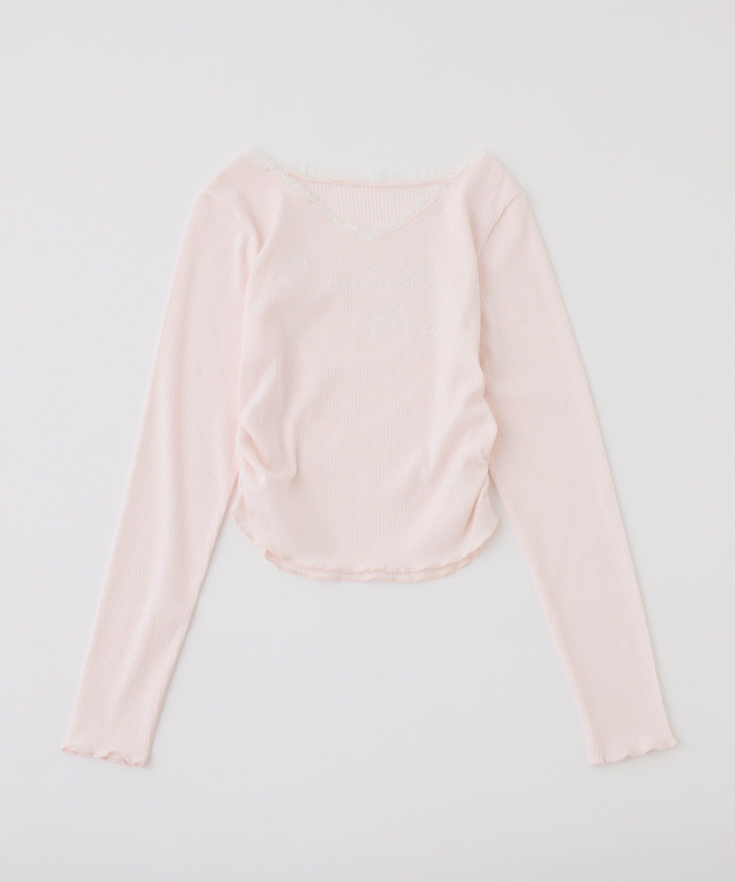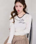 ロゴ刺繍とレース使いがフェミニンな印象のリブトップス。
