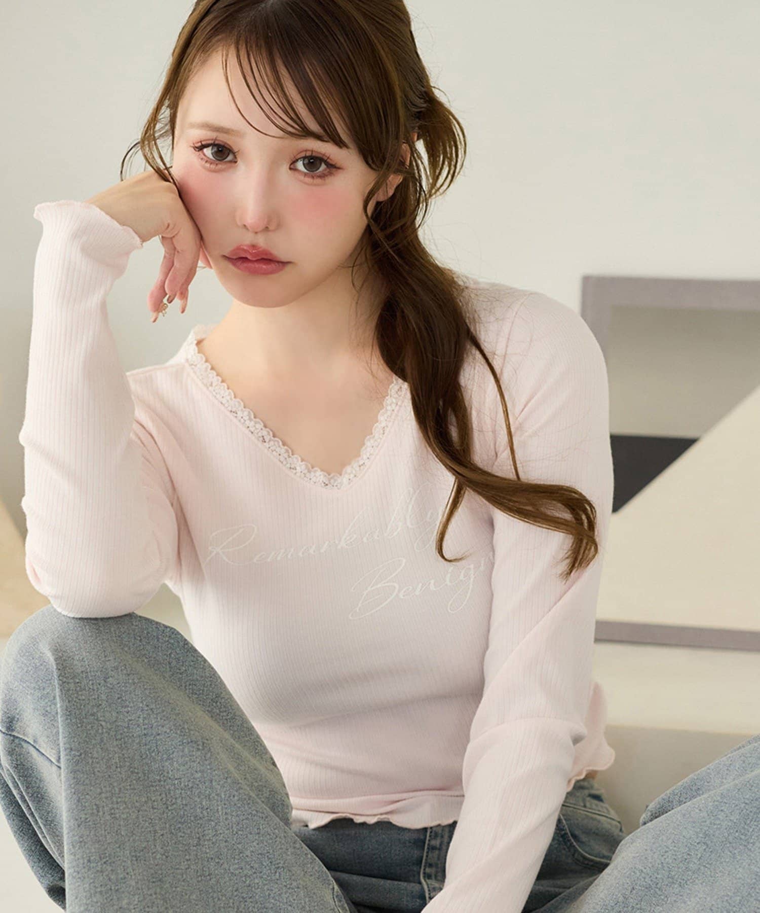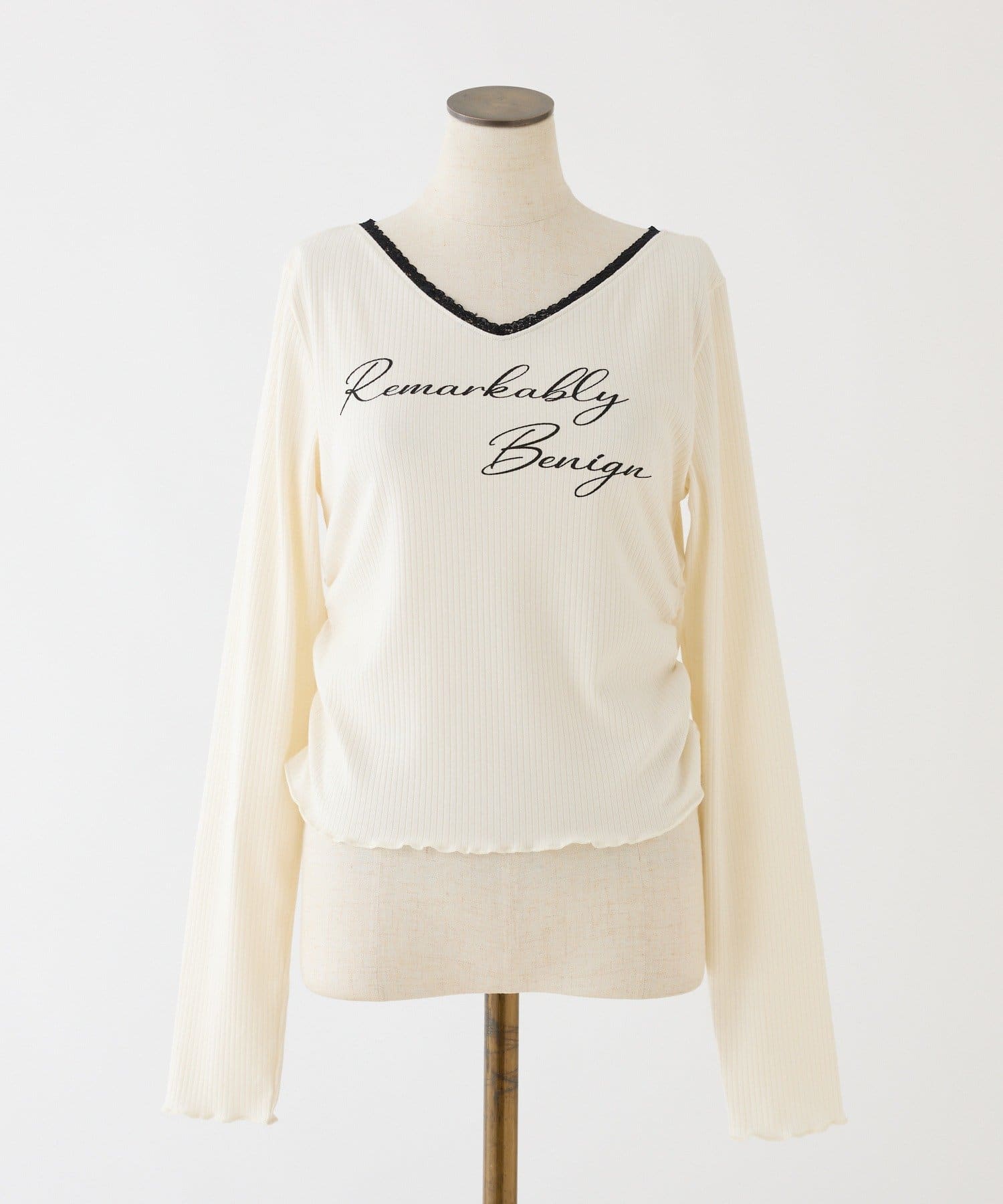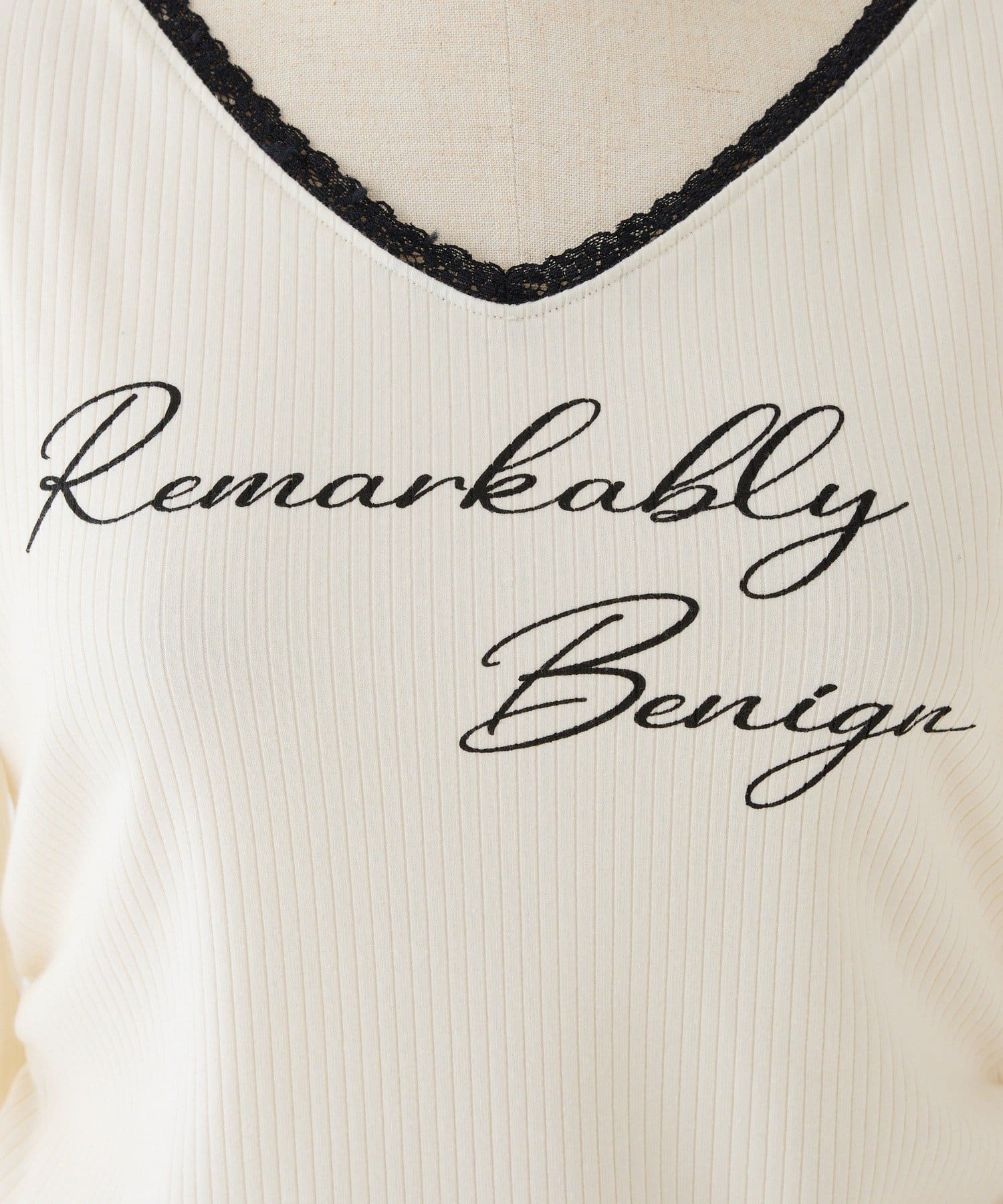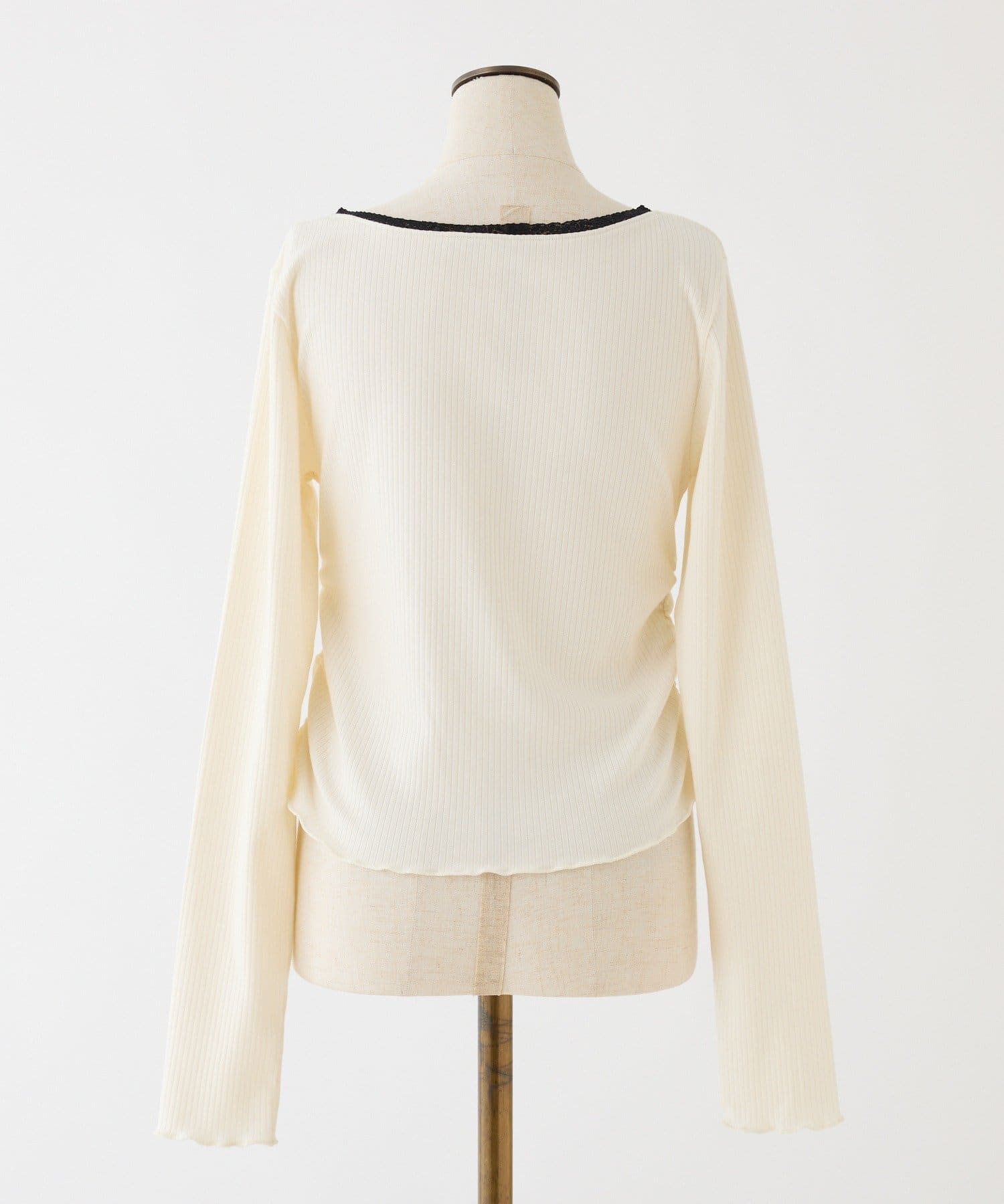 ロゴ刺繍とレース使いがフェミニンな印象のリブトップス。
