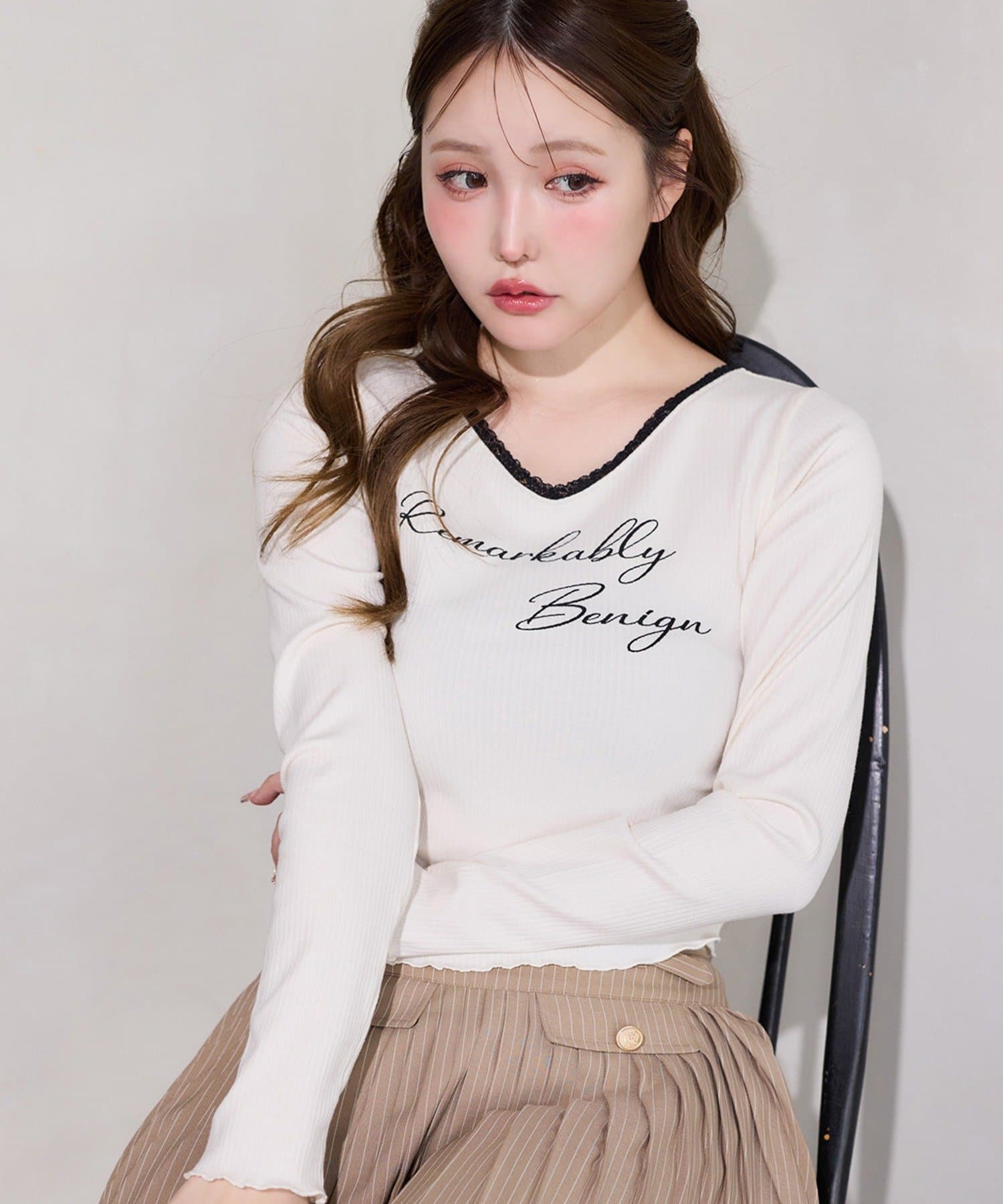 ミニスカートと合わせたガーリーコーデはナイスクラップらしい着こなしに。