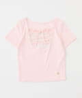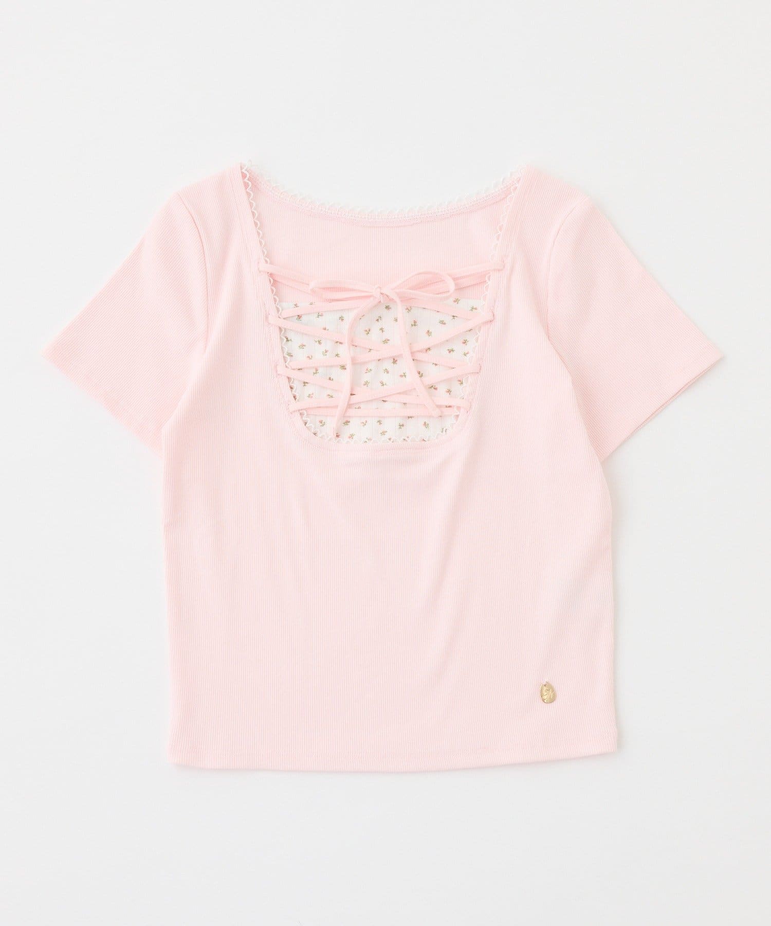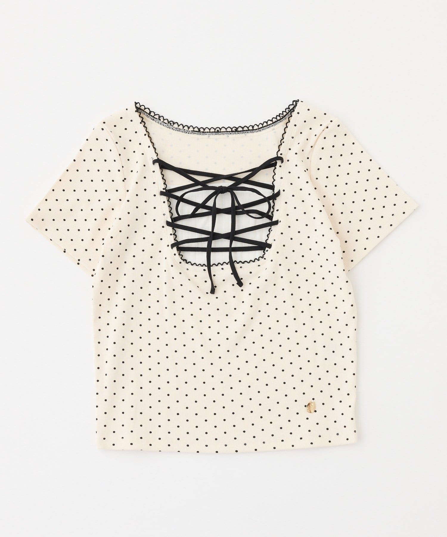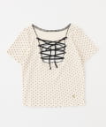 テレコ素材で着心地の良いトップスに、フロントのレースアップデザインをプラスした一枚。