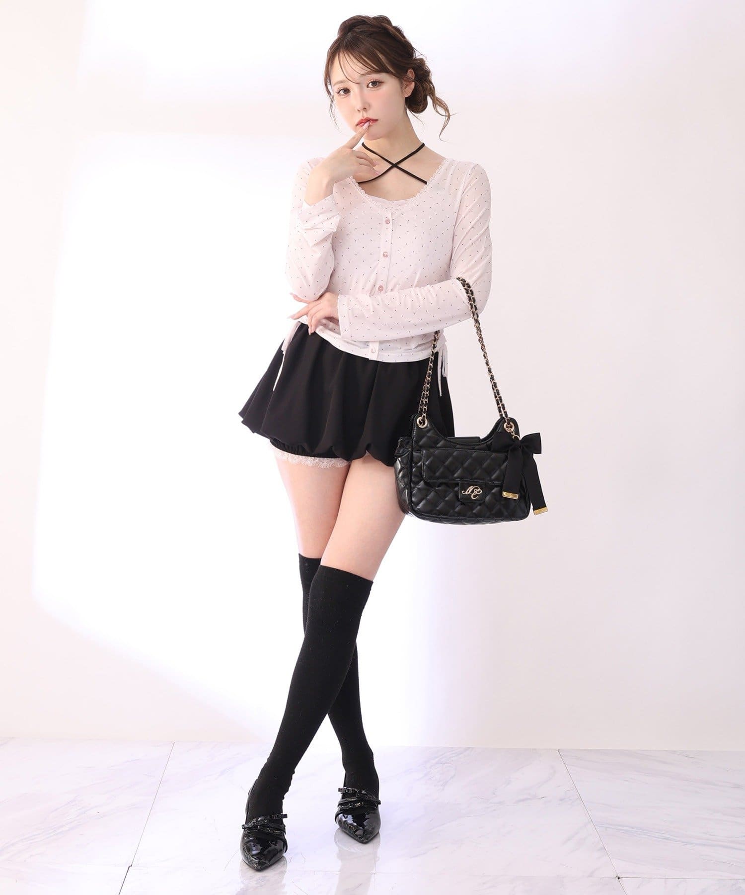 セットでミニスカートやショートパンツと合わせたガーリーコーデがおすすめ。