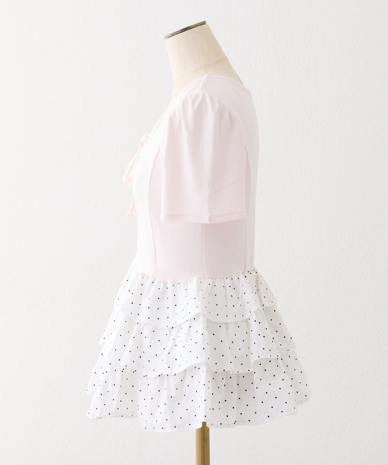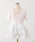 フロントの紐リボンがポイントになり、フェミニンな雰囲気をプラス。
