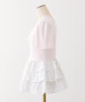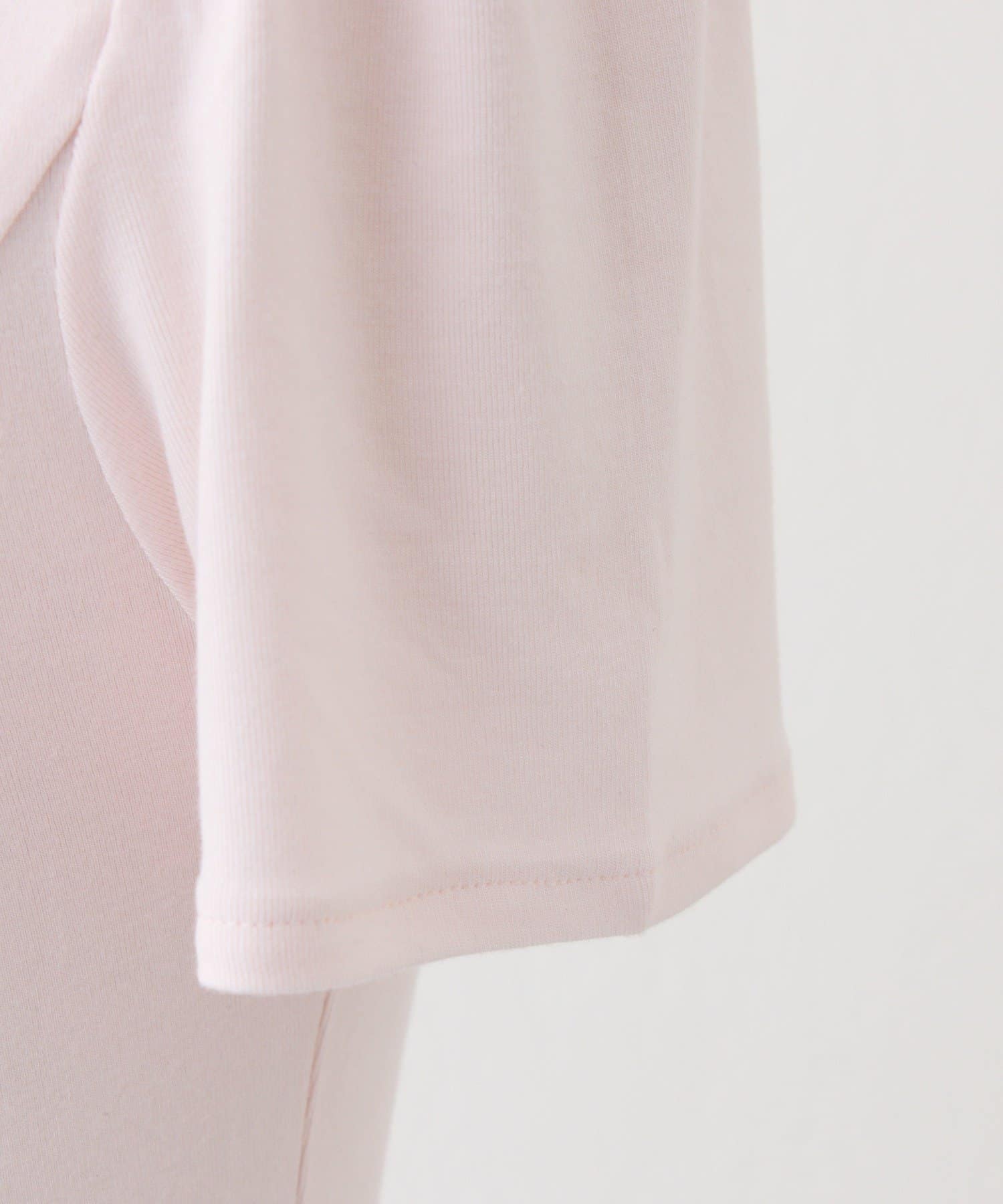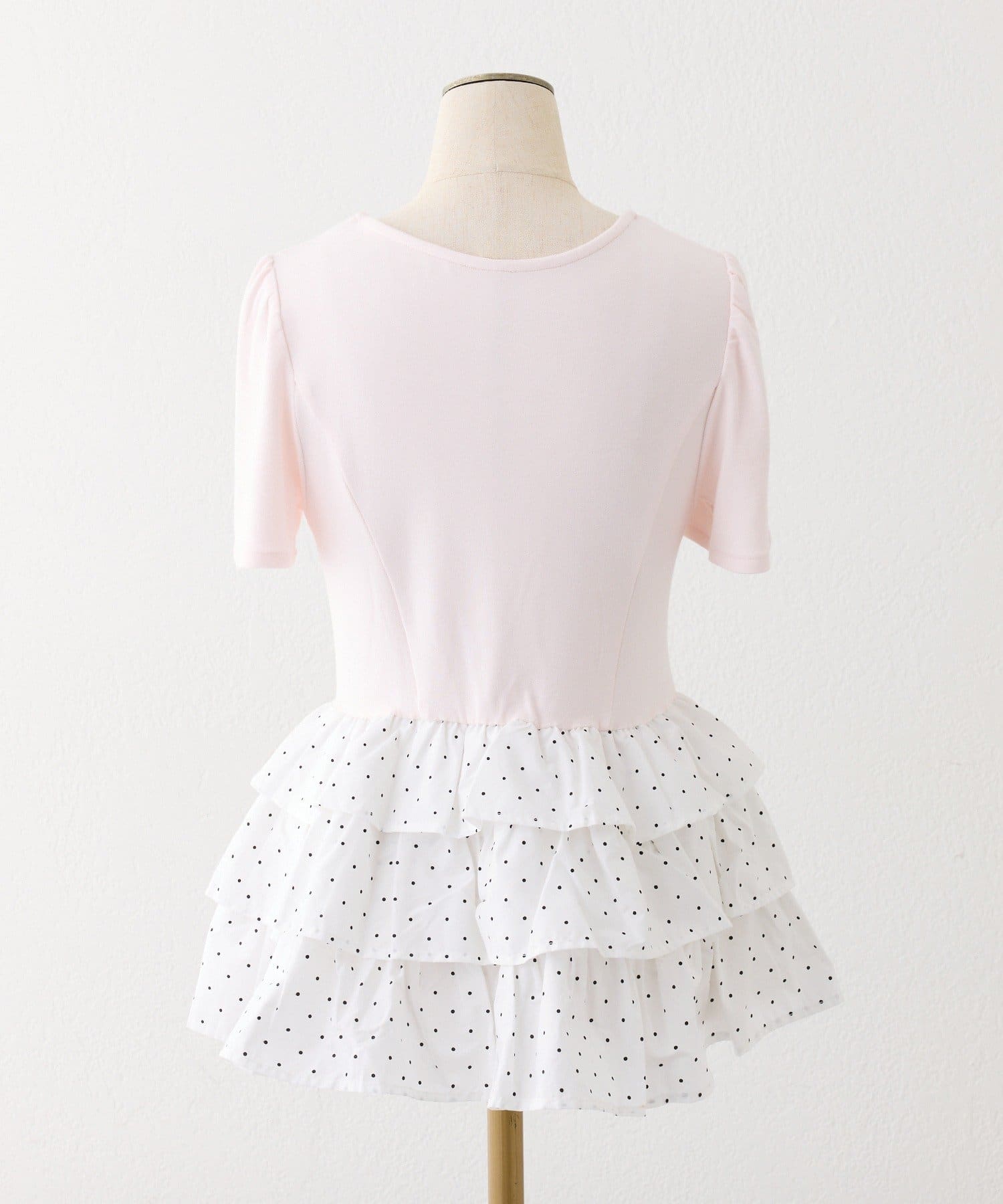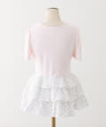 カット素材で着心地の良いTシャツにフリルデザインをプラスしたトップス。