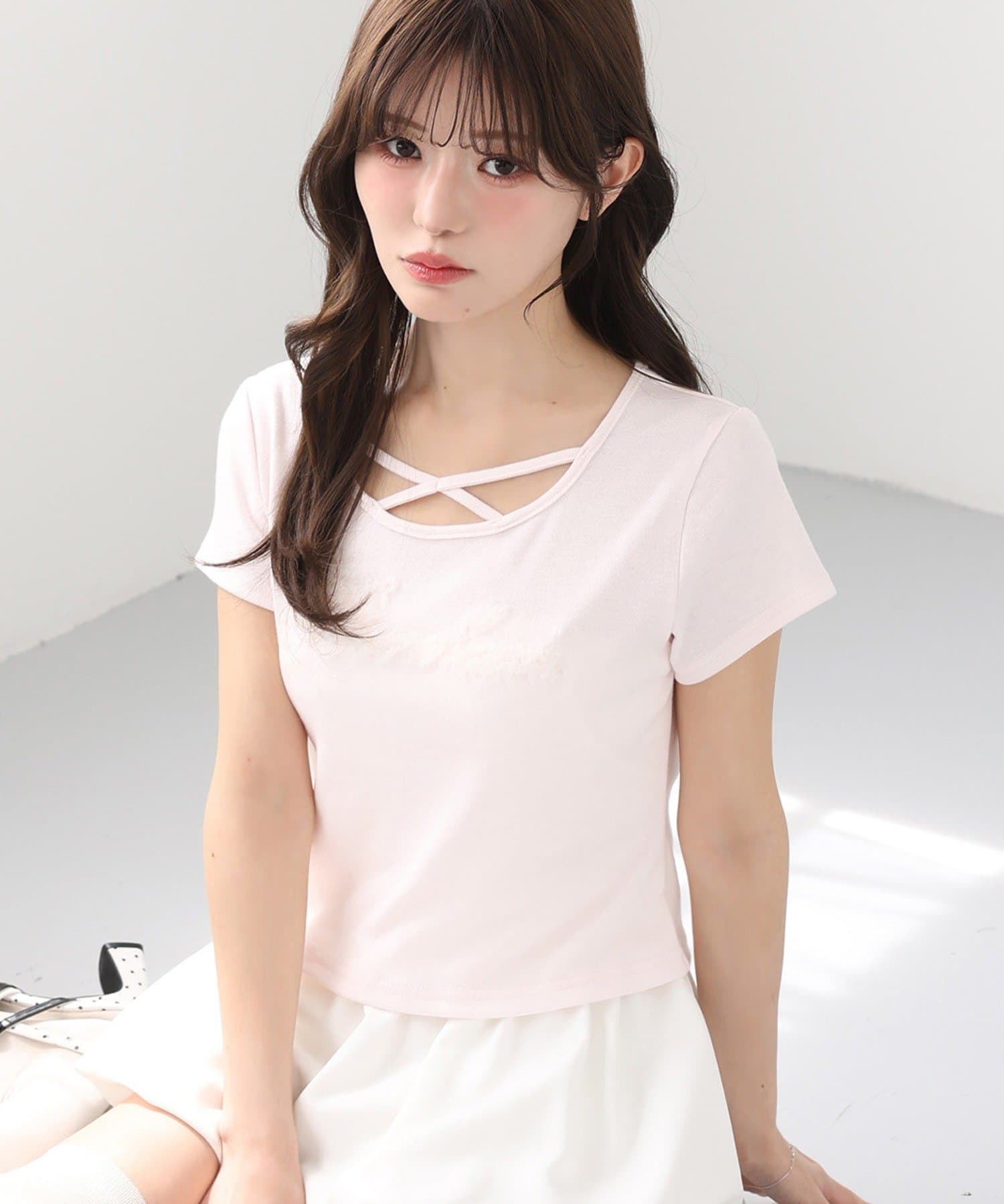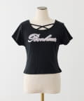クロスデザインのホルターネックがポイントのチュールロゴTシャツ。