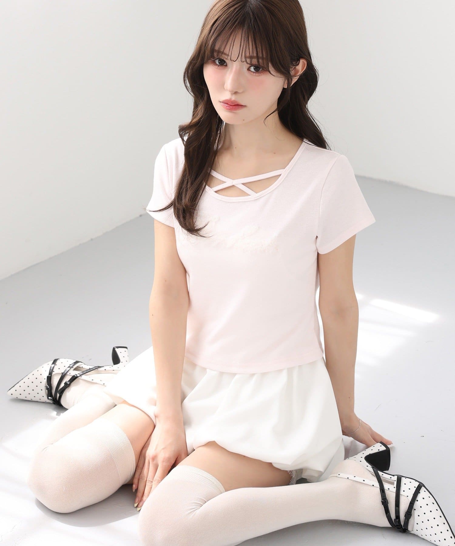 ミニスカートやプリーツスカートを合わせたガーリーコーデがおすすめ。