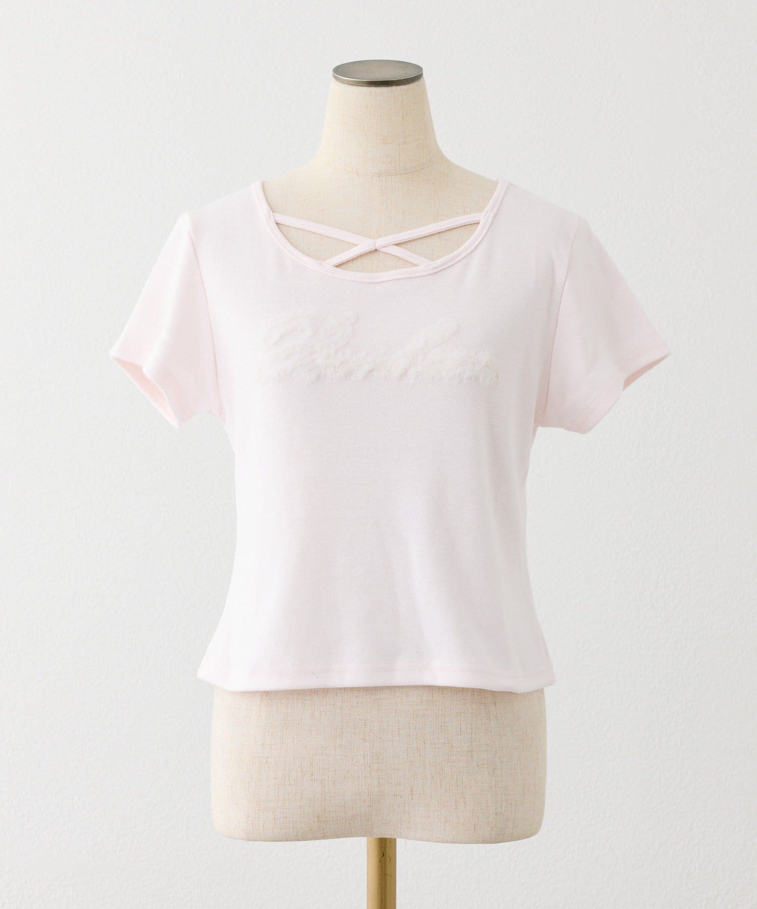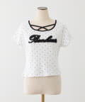 クロスデザインのホルターネックがポイントのチュールロゴTシャツ。