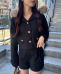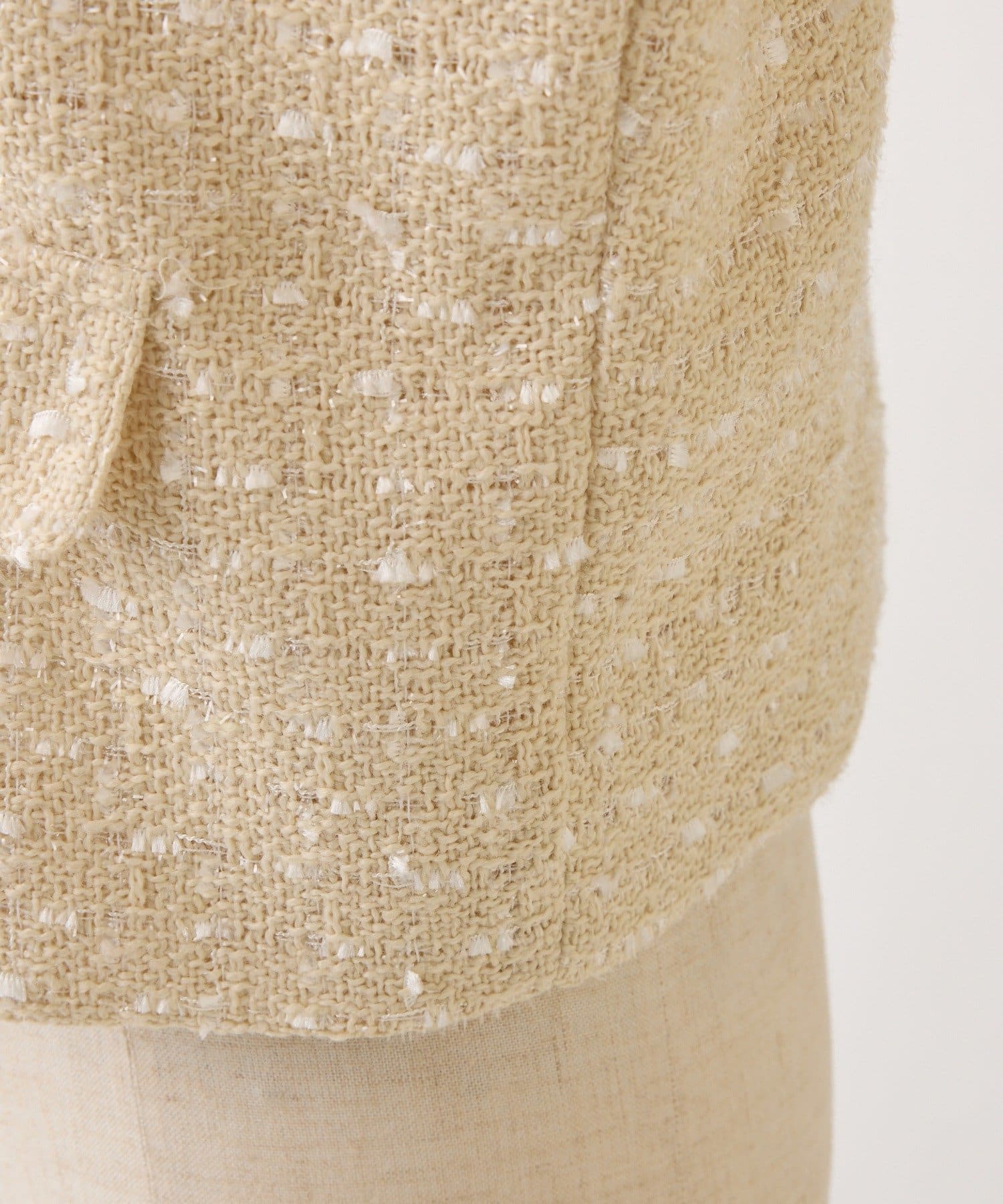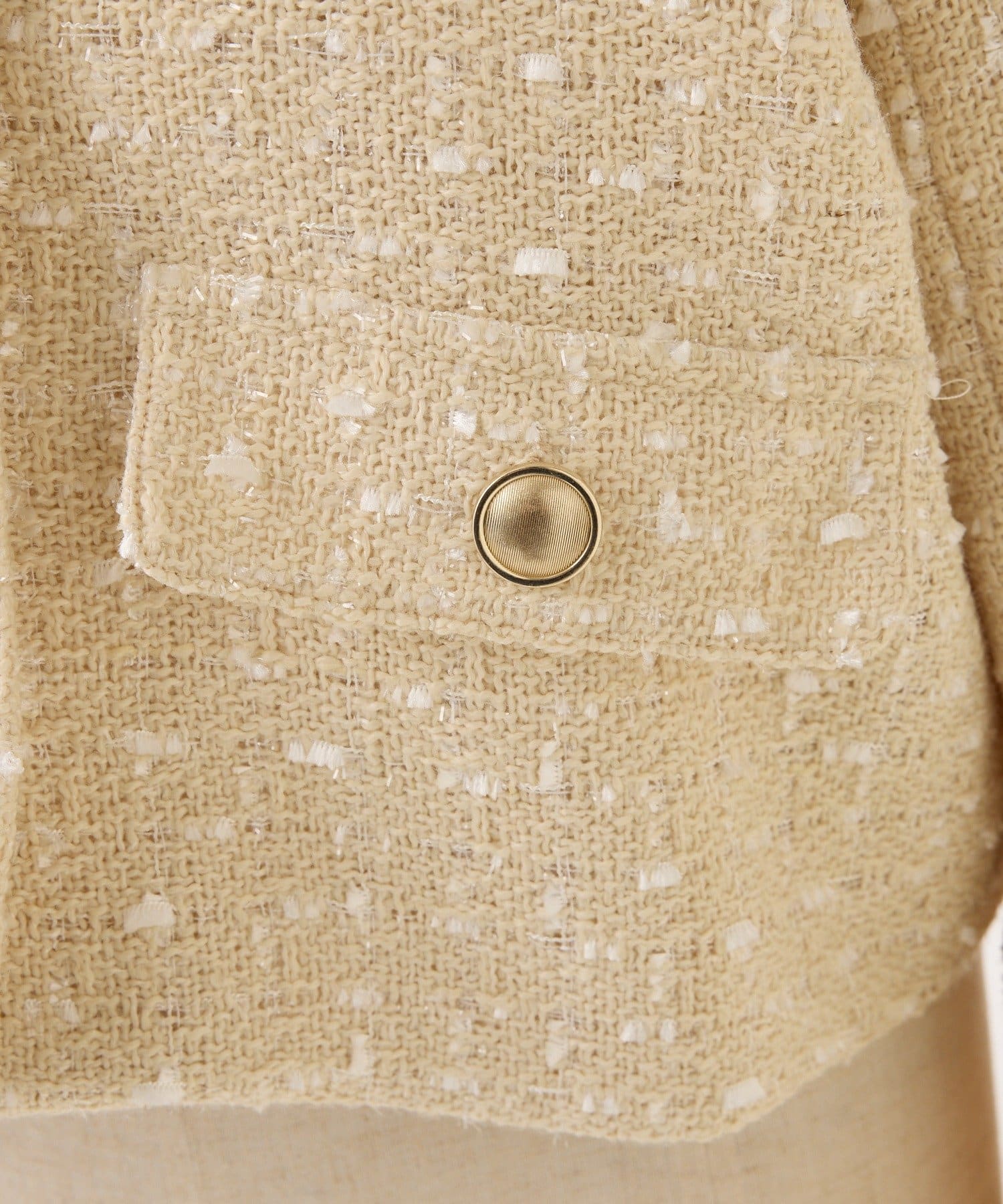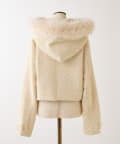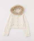 【セットアップ可能】フェイクファーフード付きツイードジャケット