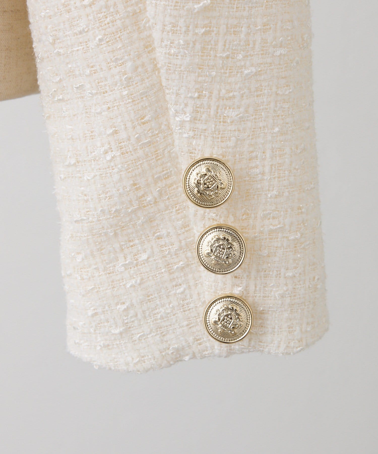 襟ぐりにあしらったチェーンがポイントのツイードジャケット♡