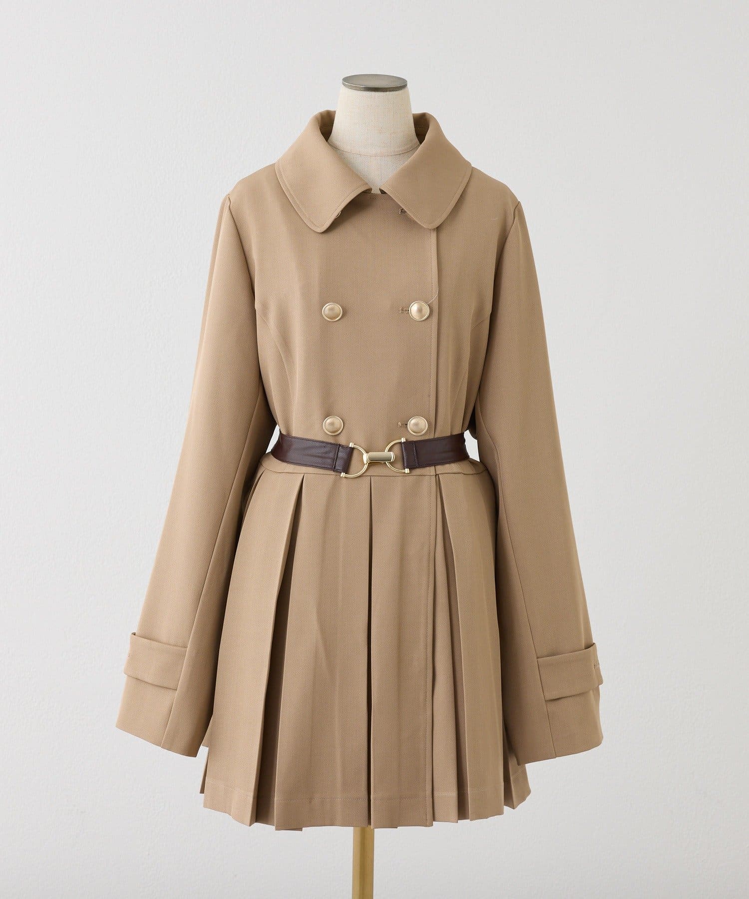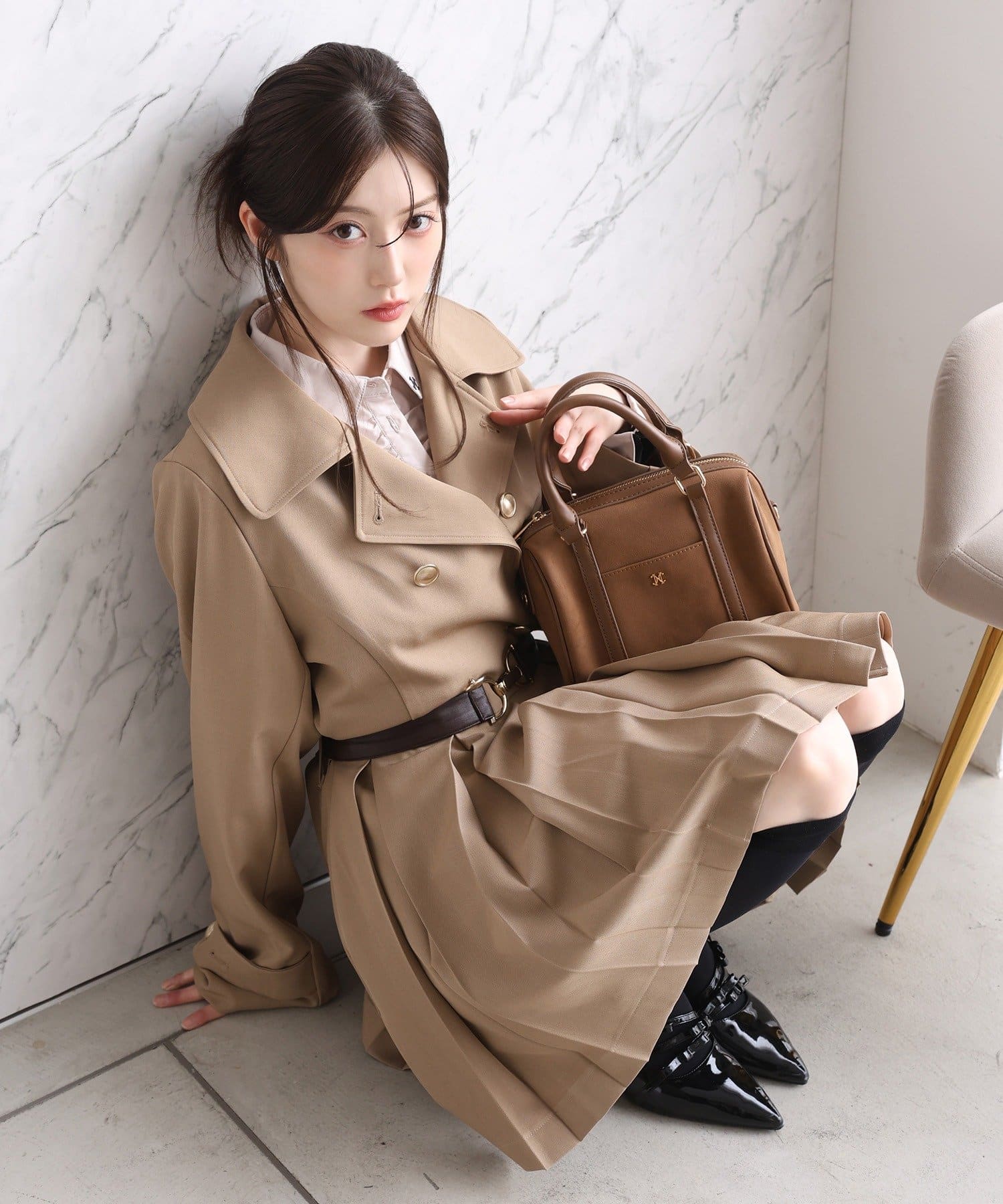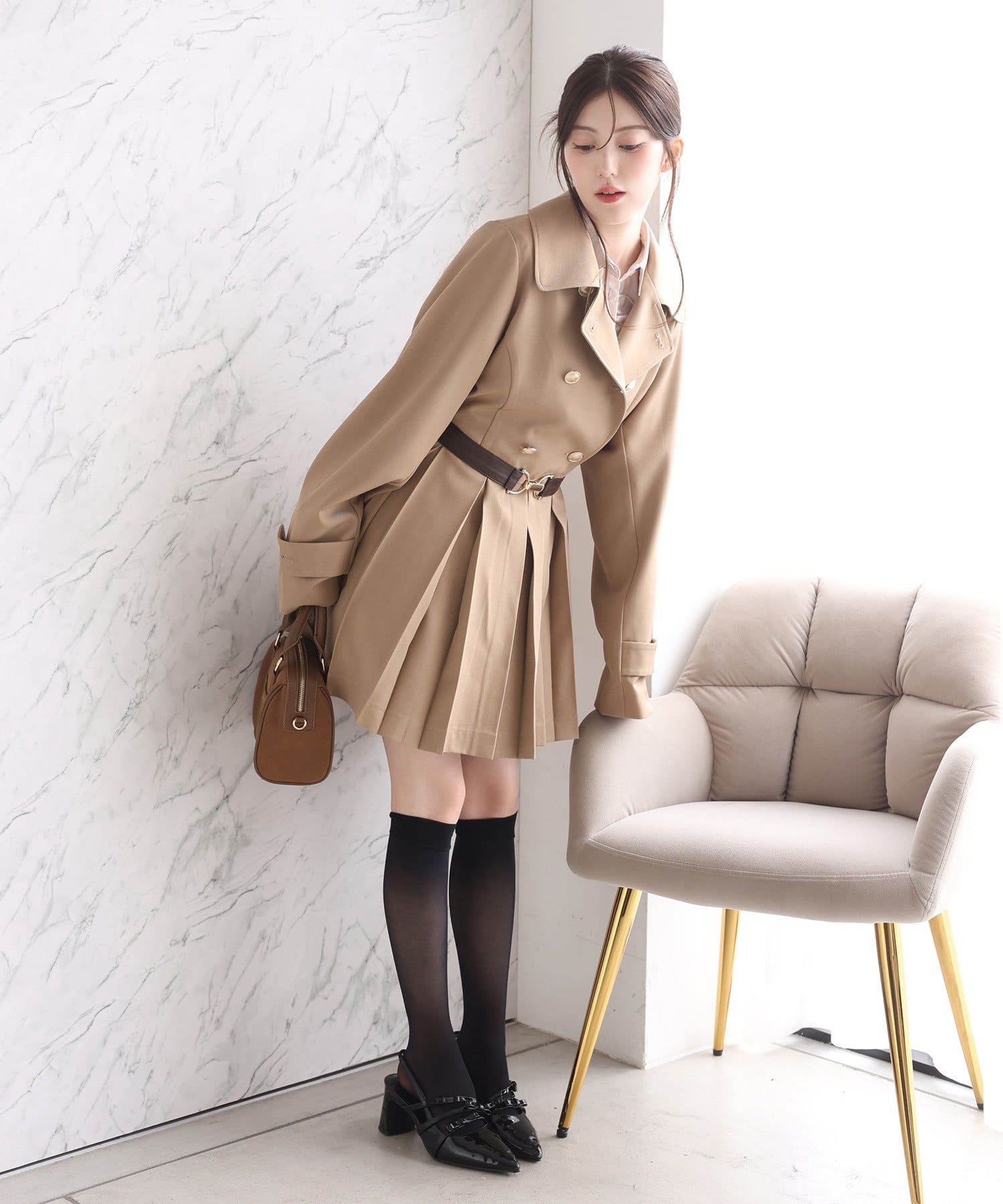ブラウス×ミニスカートで、コートのプリーツが映えるガーリーコーデ