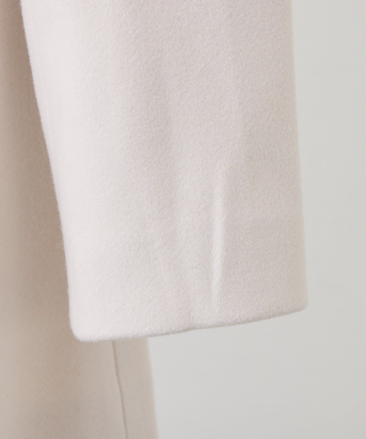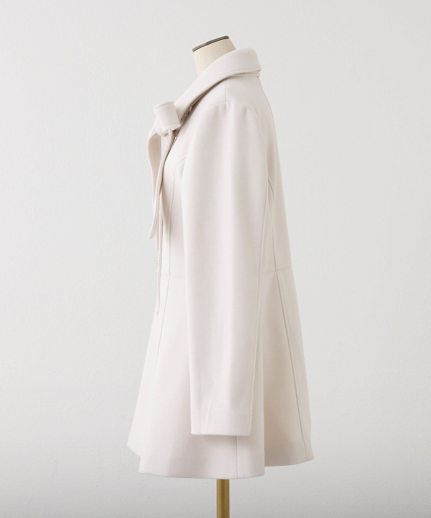 リボンが女性らしいシルエットを演出してくれるミドル丈コート。