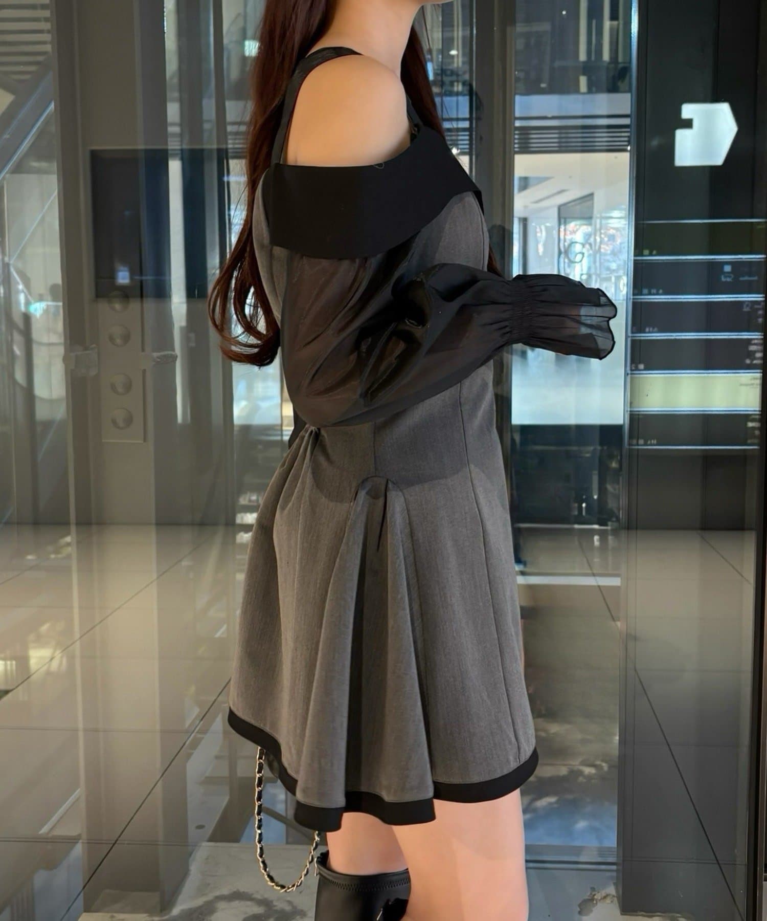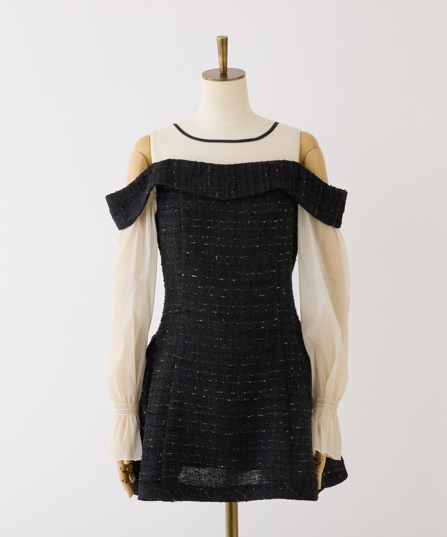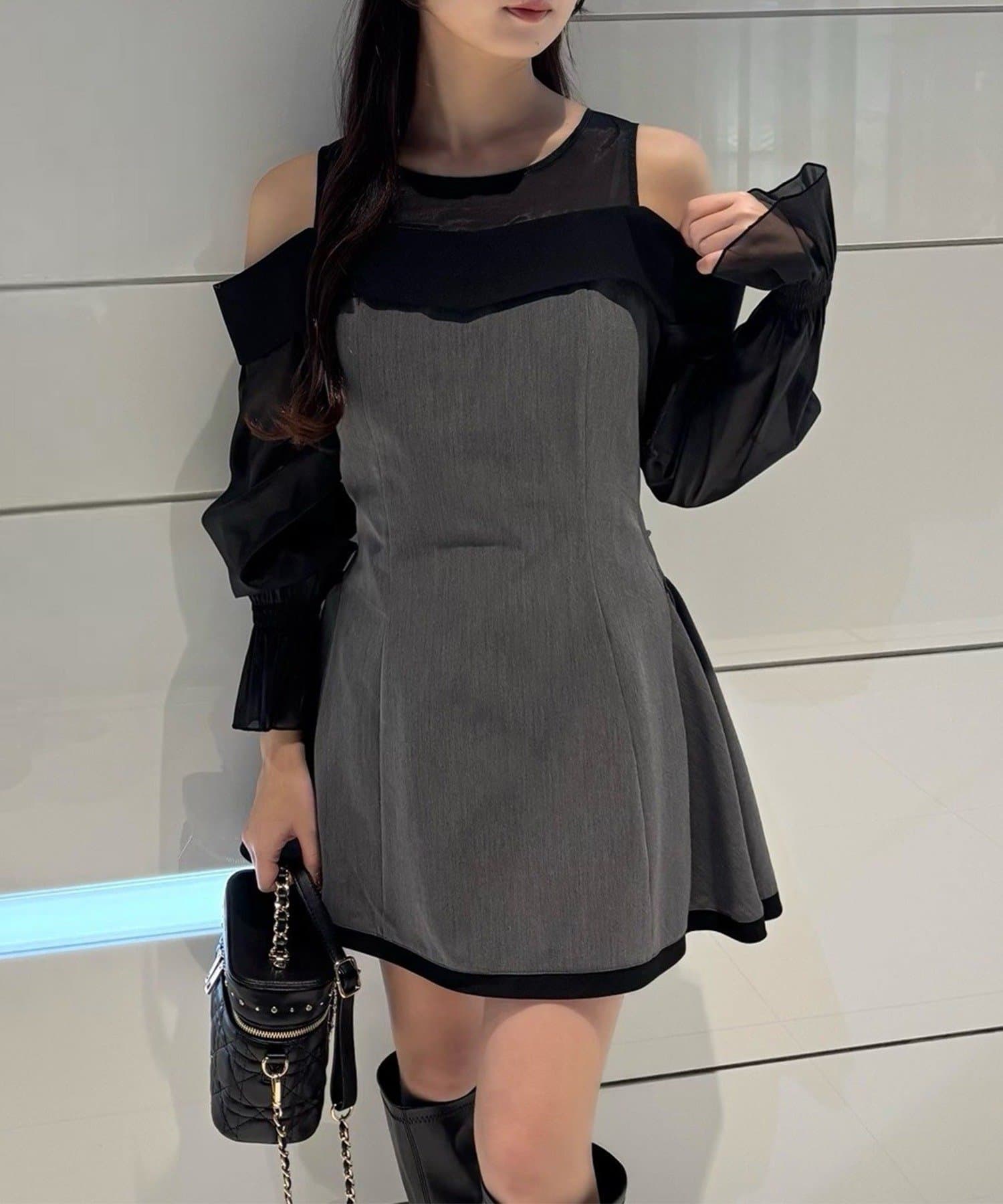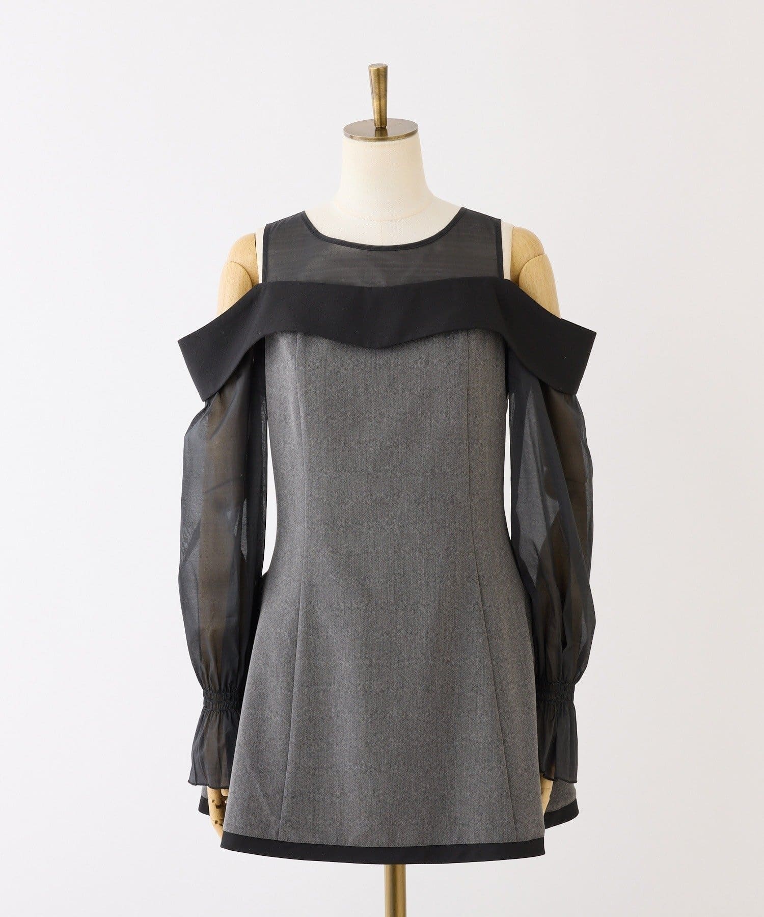 ほんのり肌見せが叶うシアー素材をデコルテと袖に使用したミニワンピース。