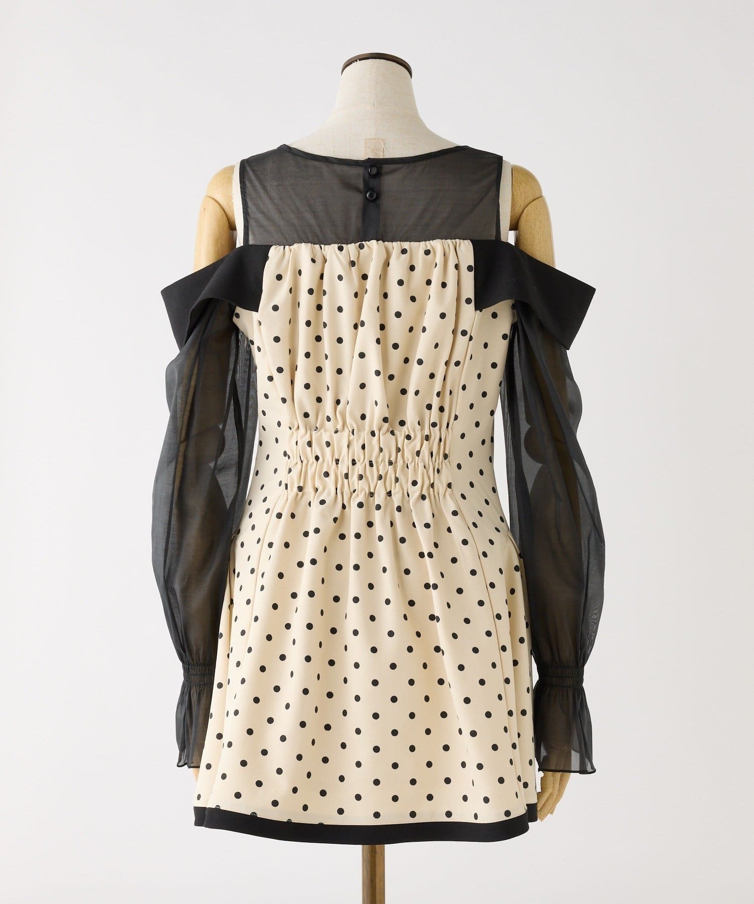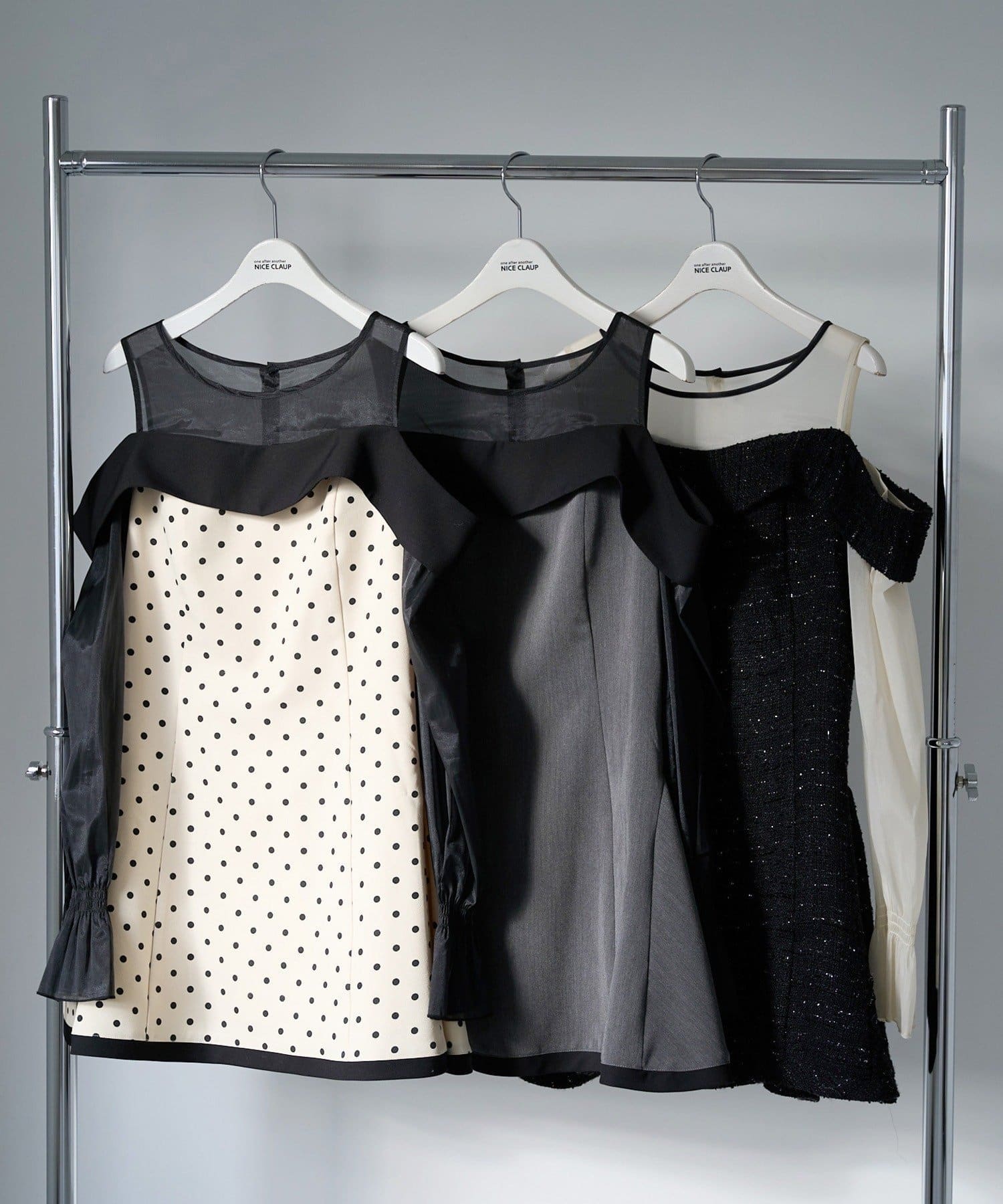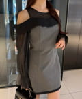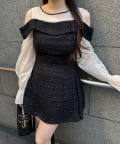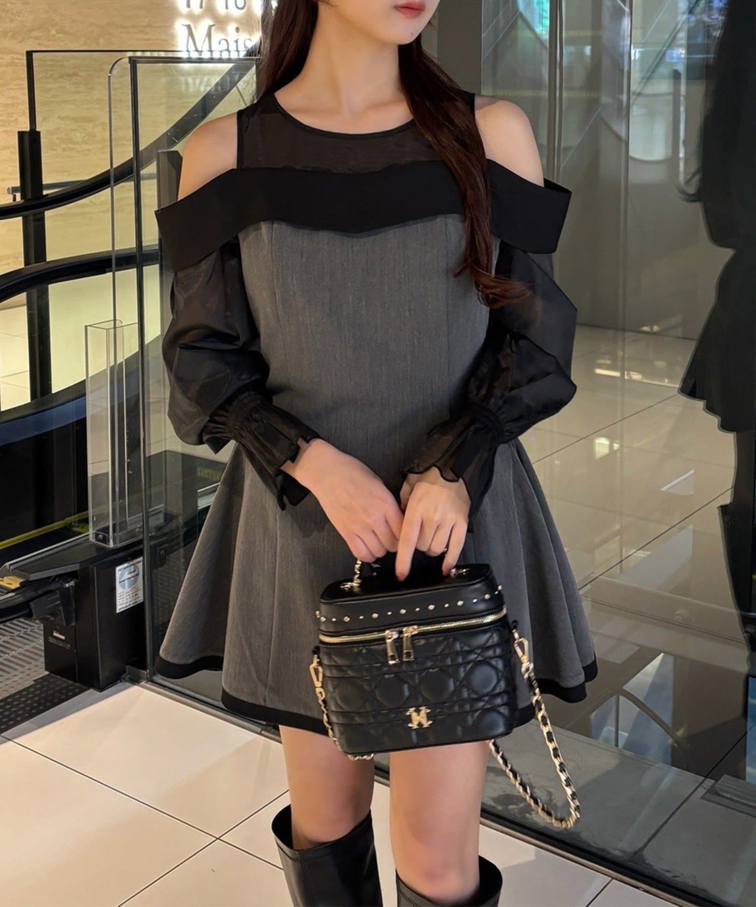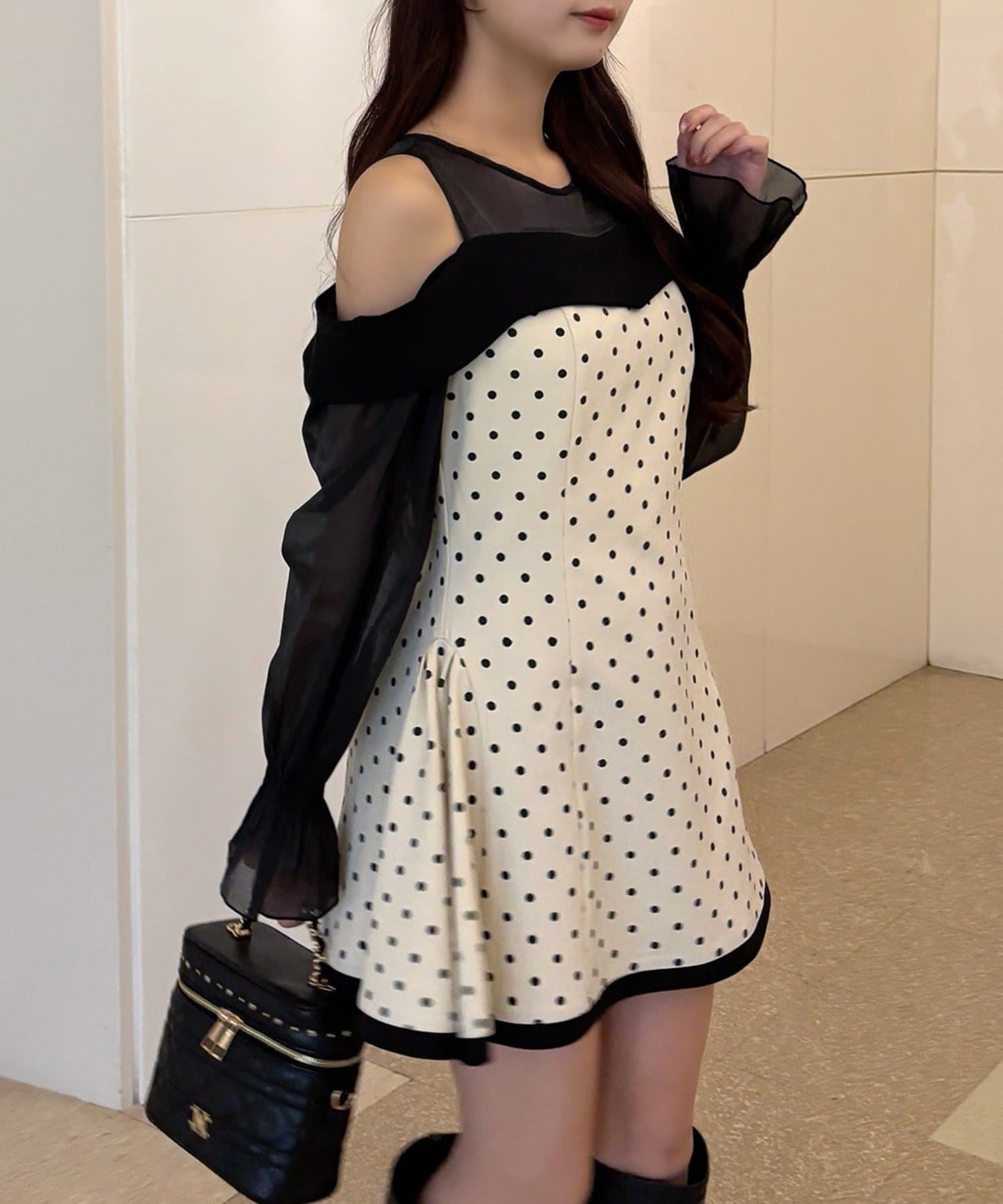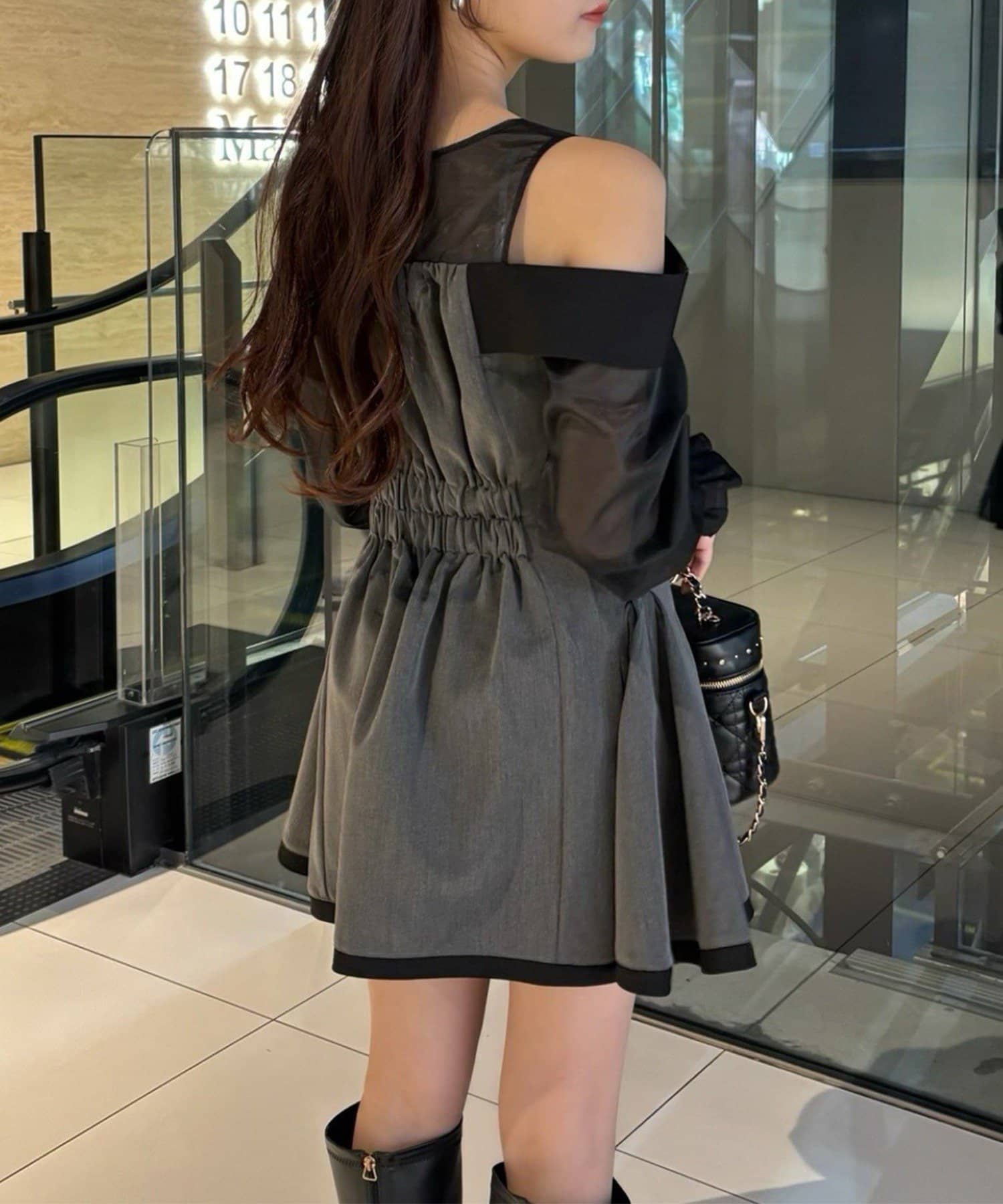 ほんのり肌見せが叶うシアー素材をデコルテと袖に使用したミニワンピース。