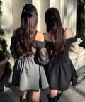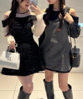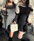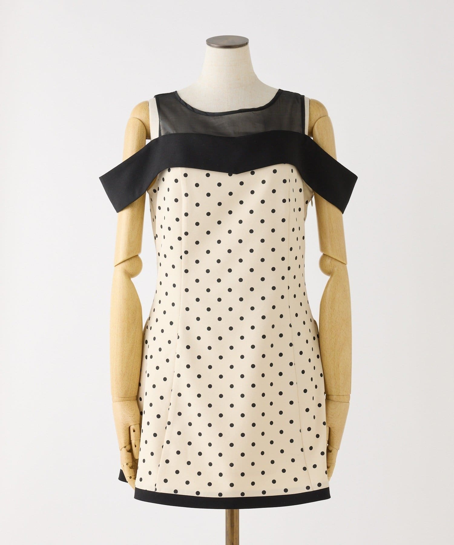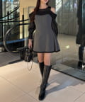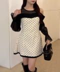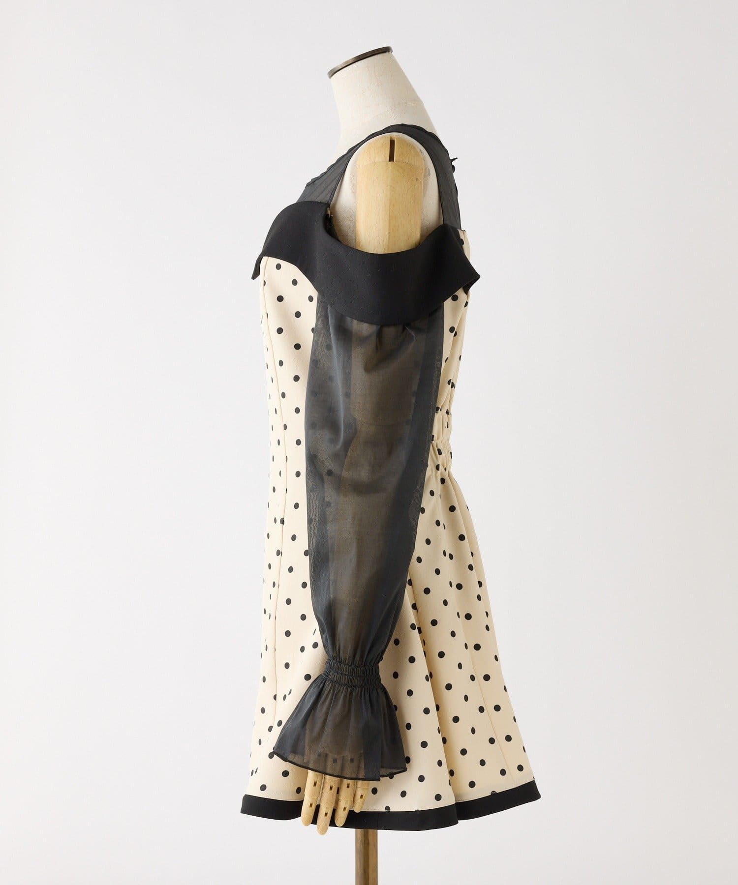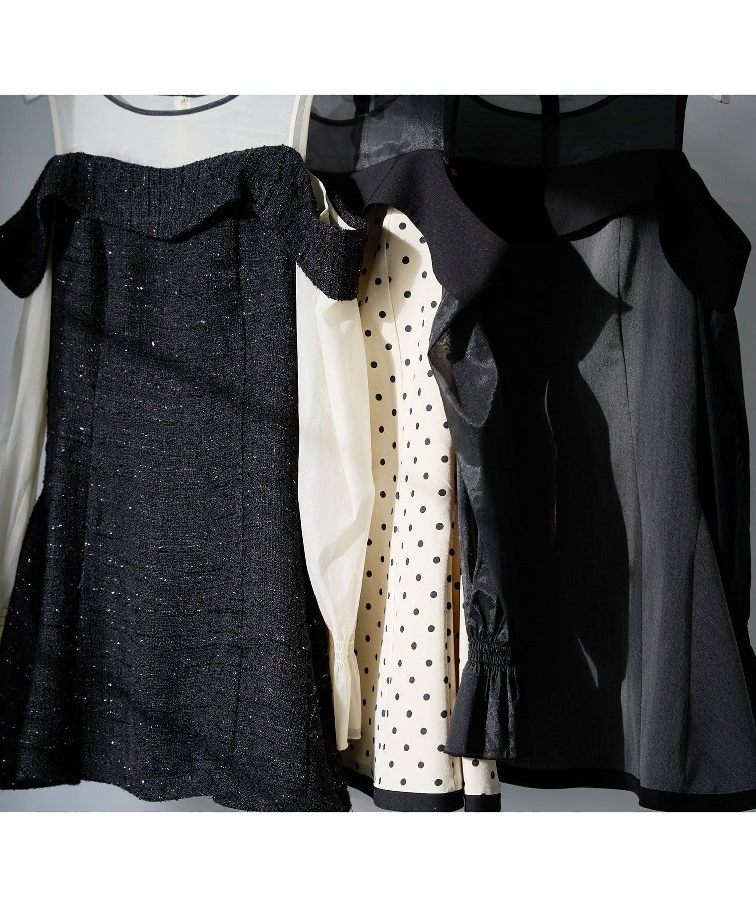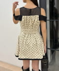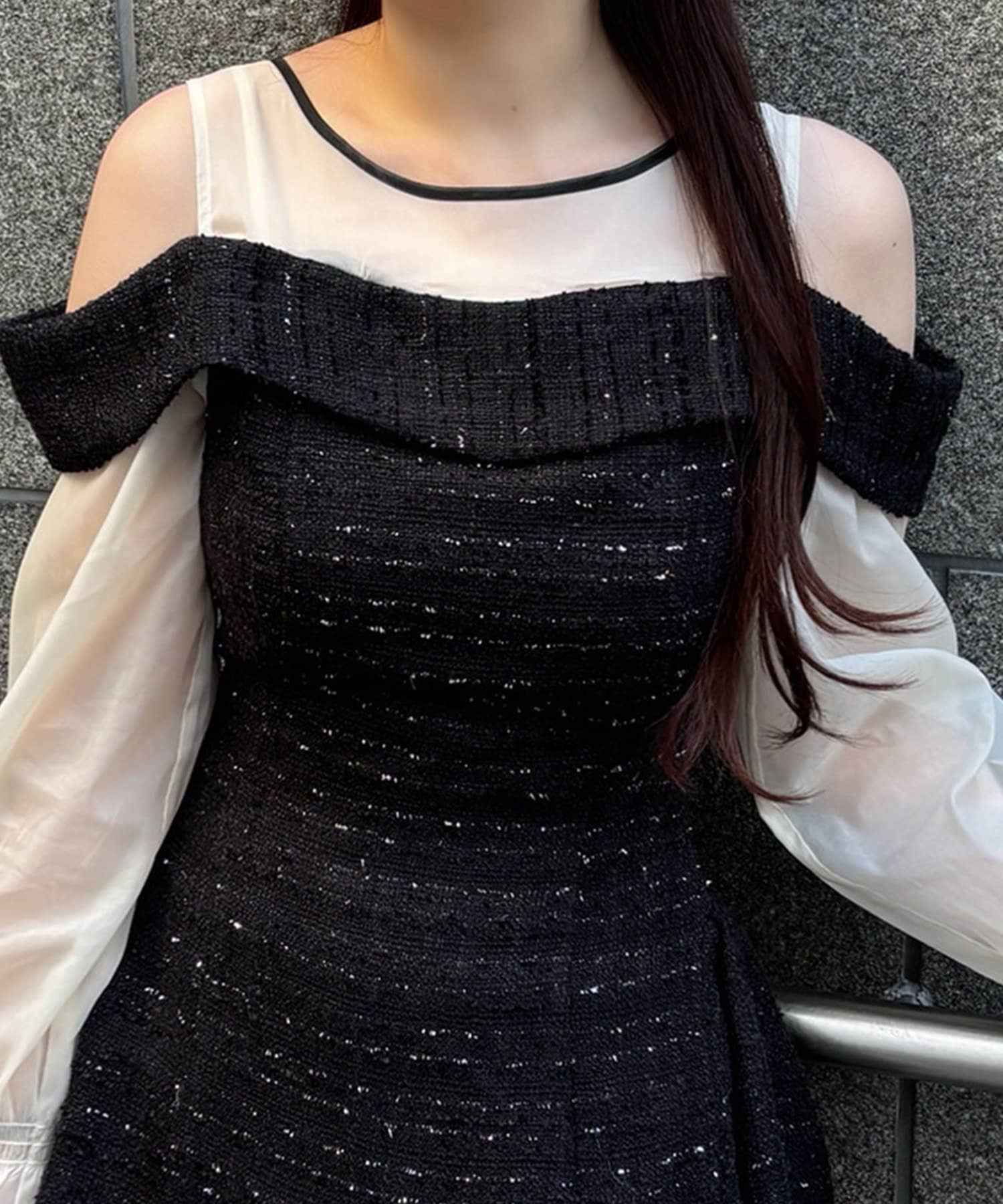 ほんのり肌見せが叶うシアー素材をデコルテと袖に使用したミニワンピース。