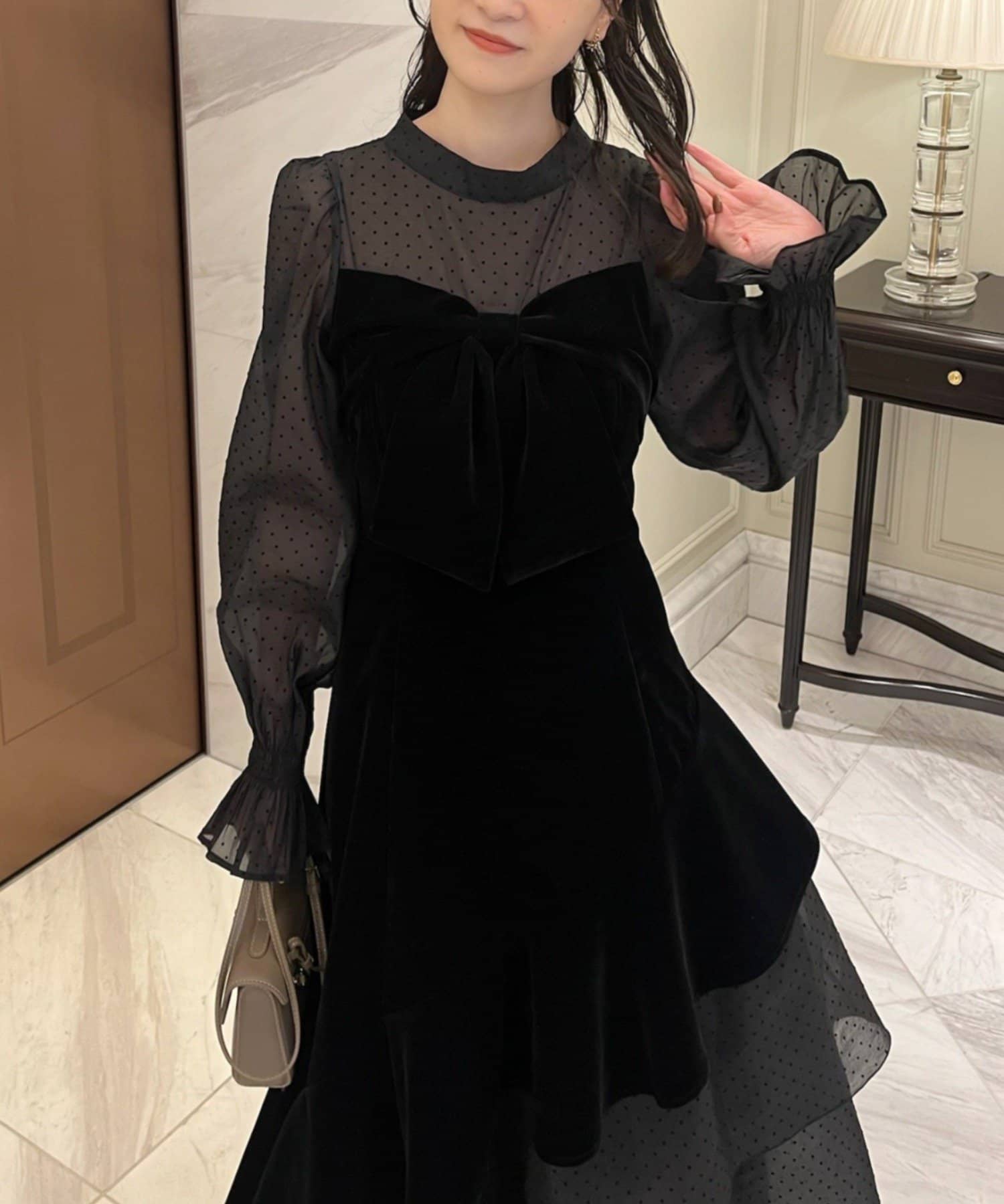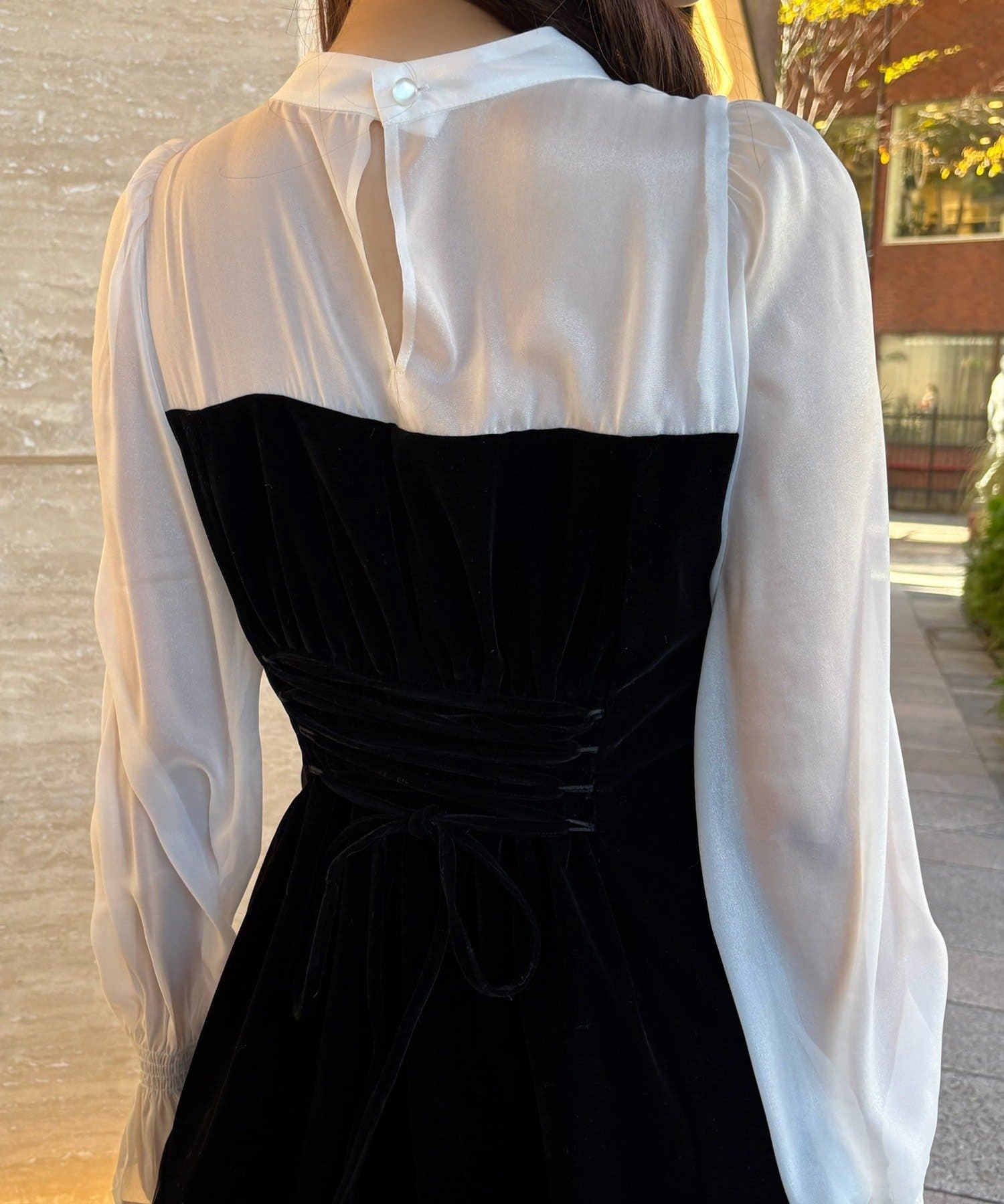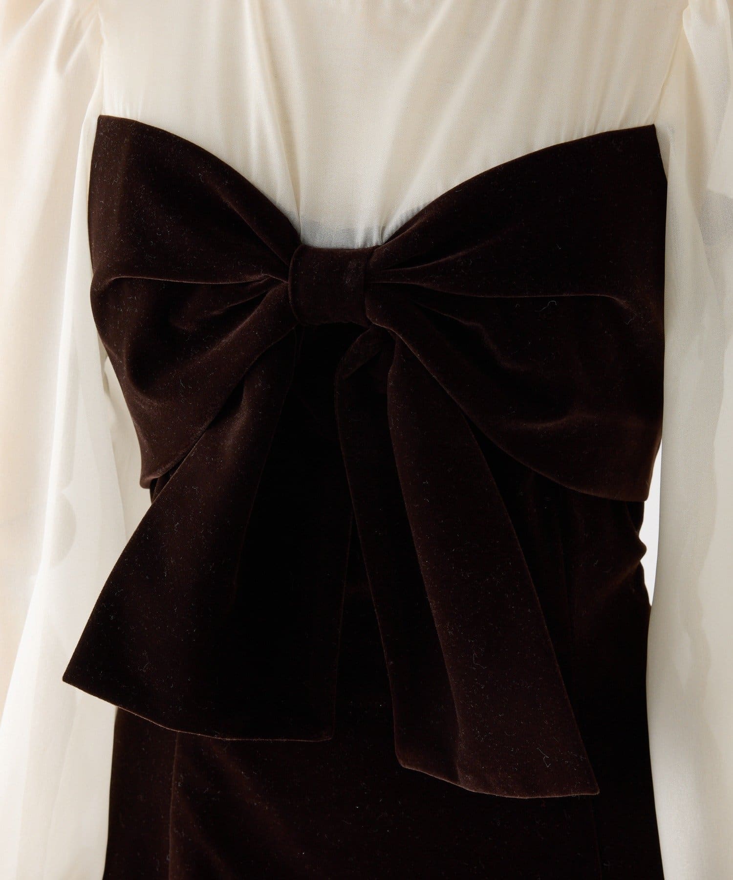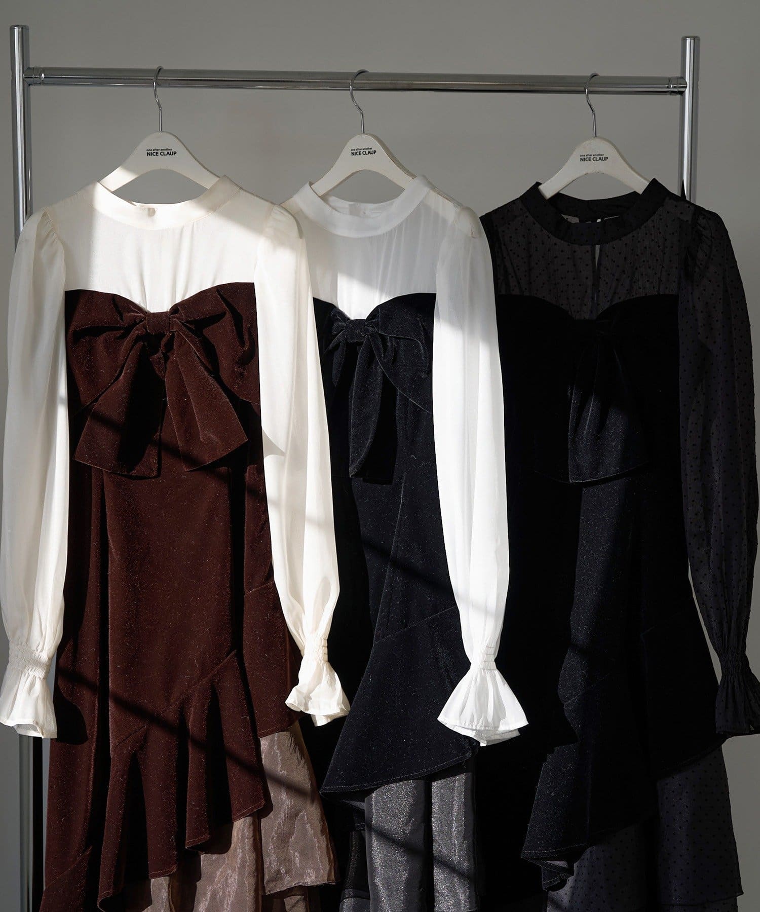 【Occasion Collection】ベロアリボン異素材ワンピース