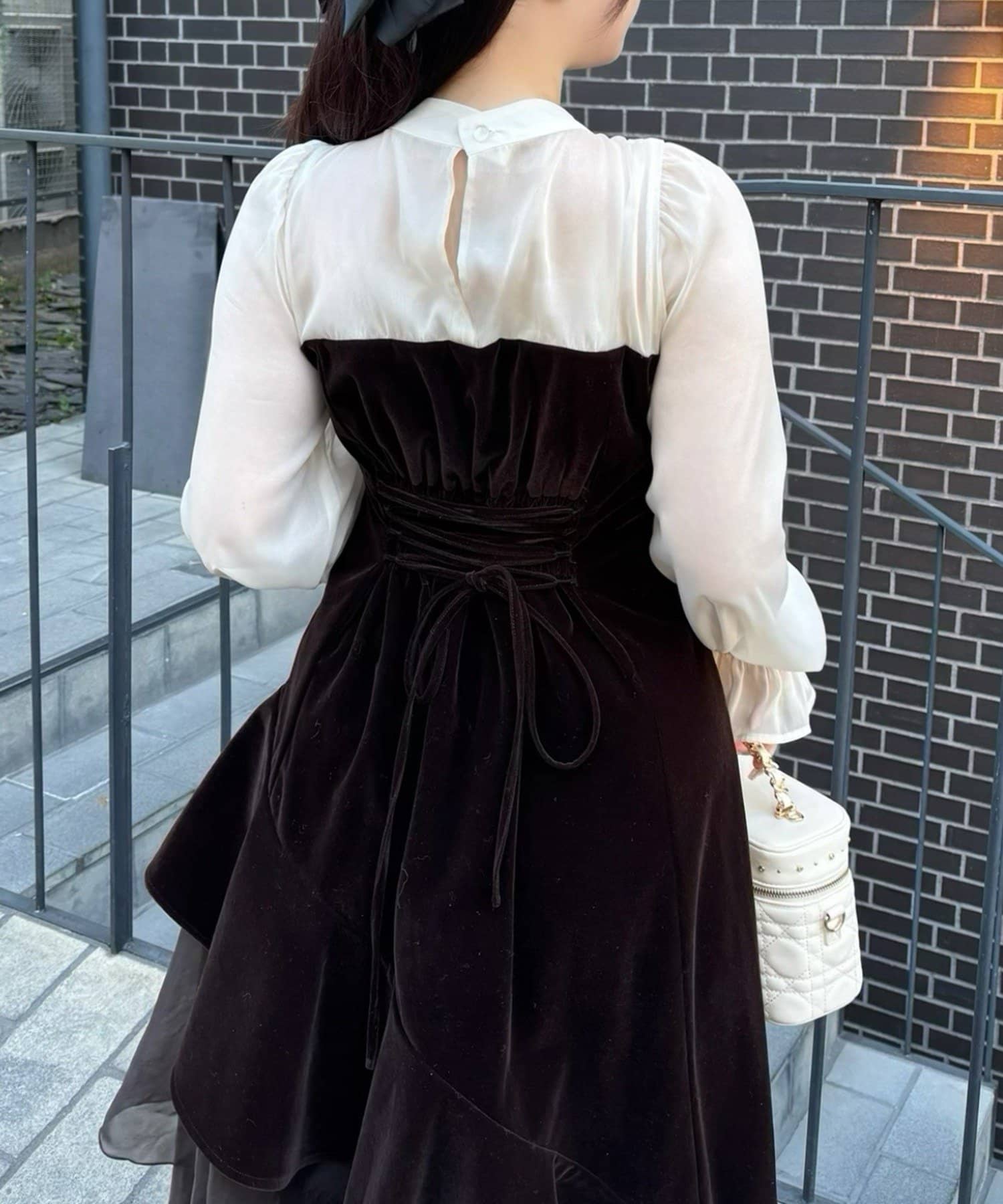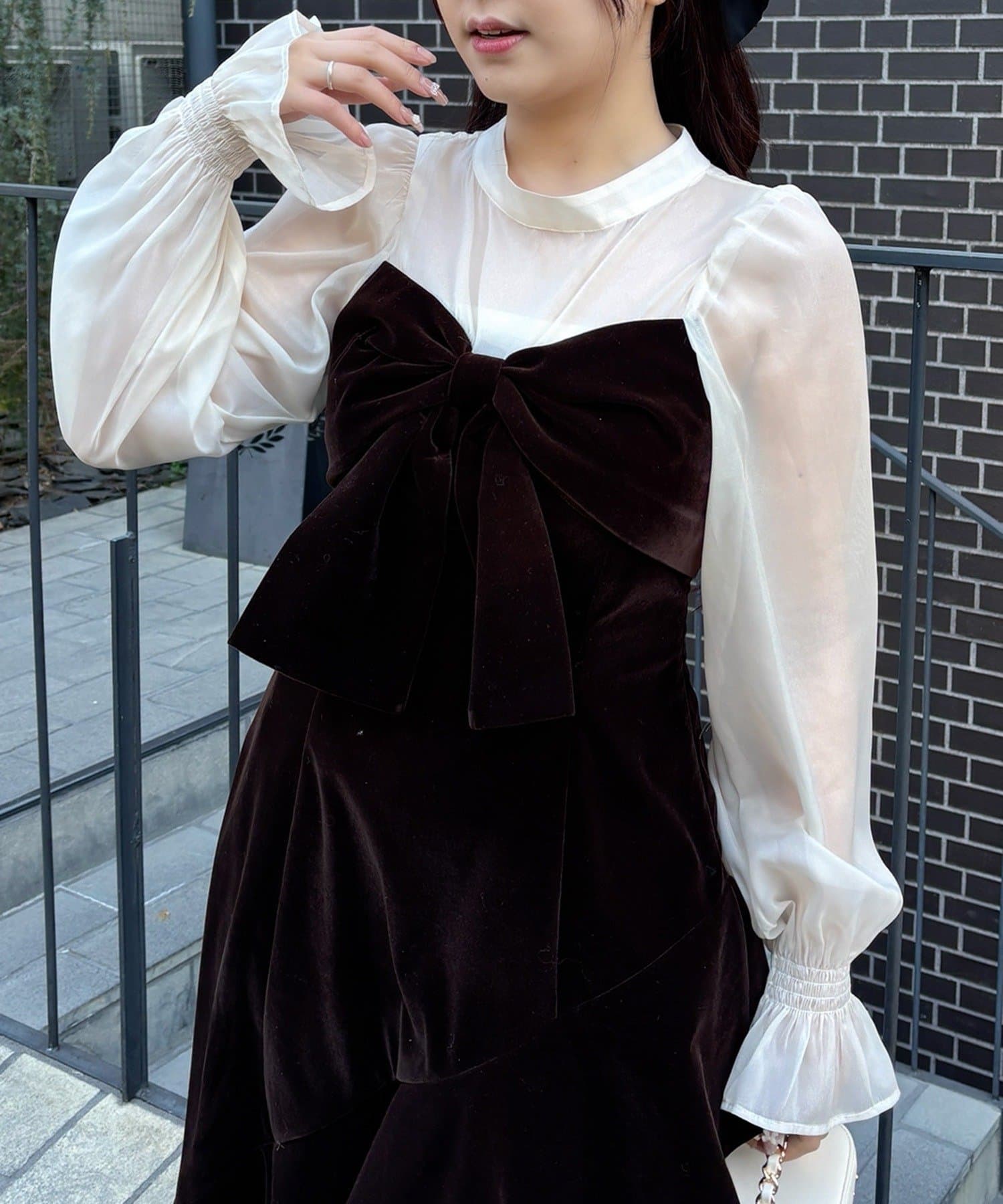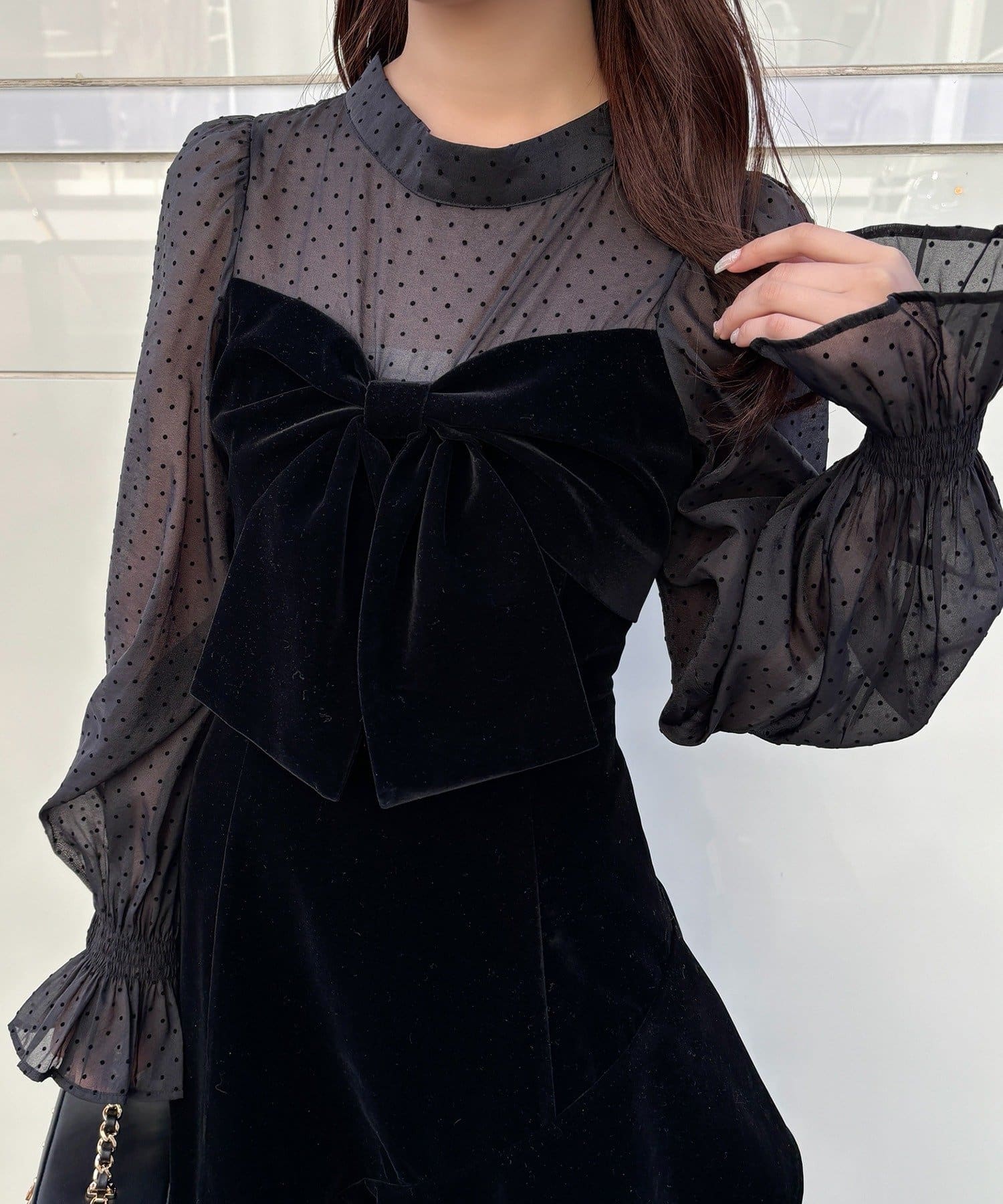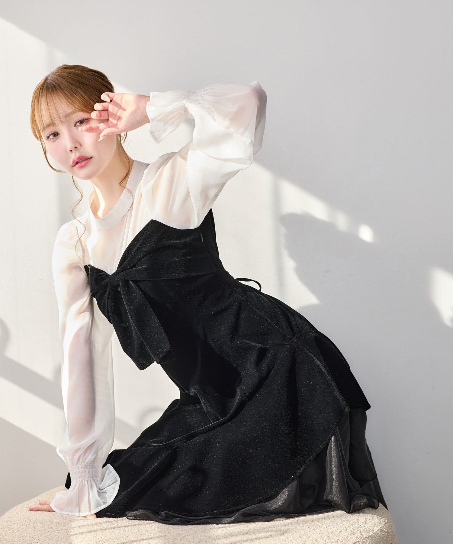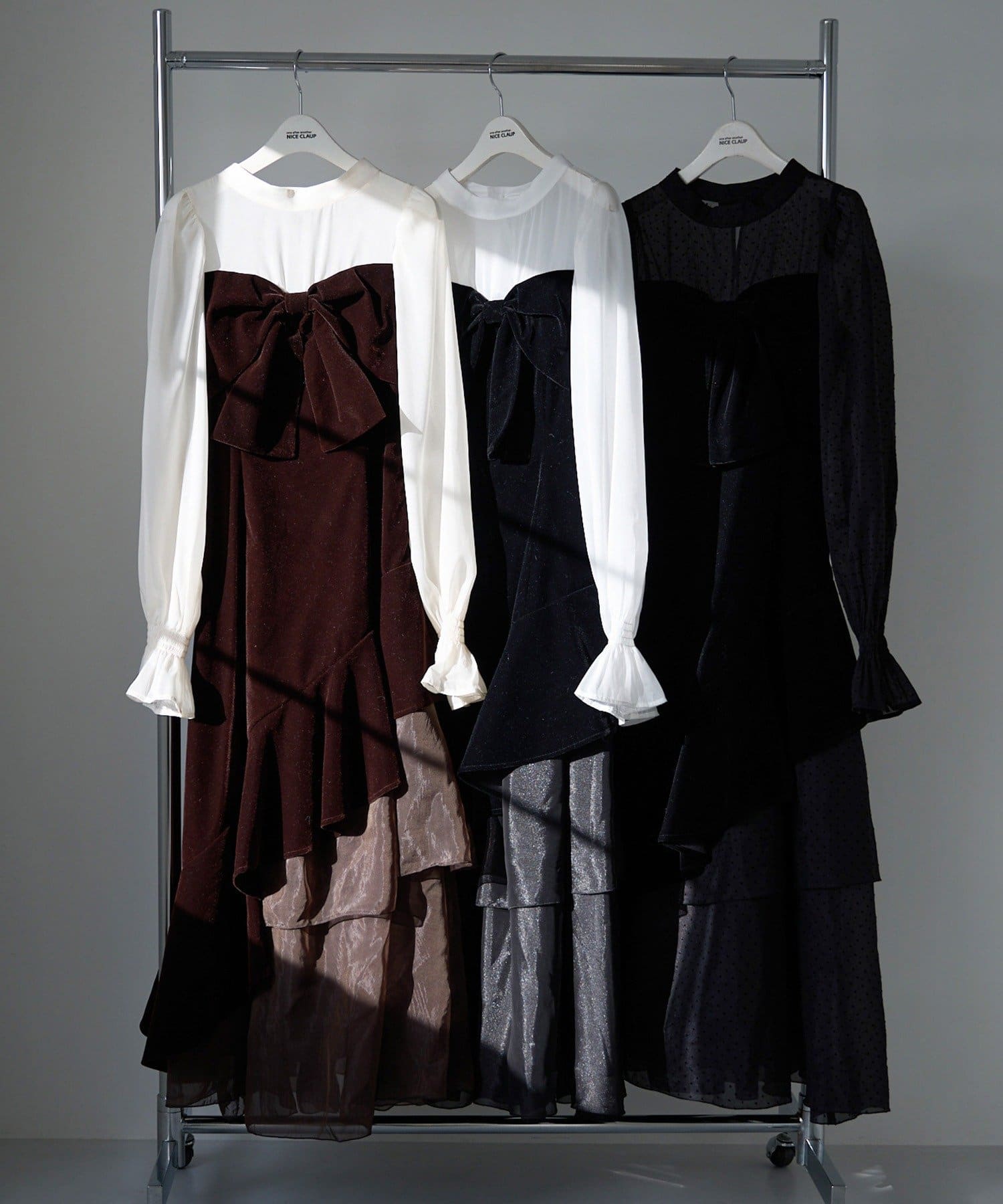 【Occasion Collection】ベロアリボン異素材ワンピース
