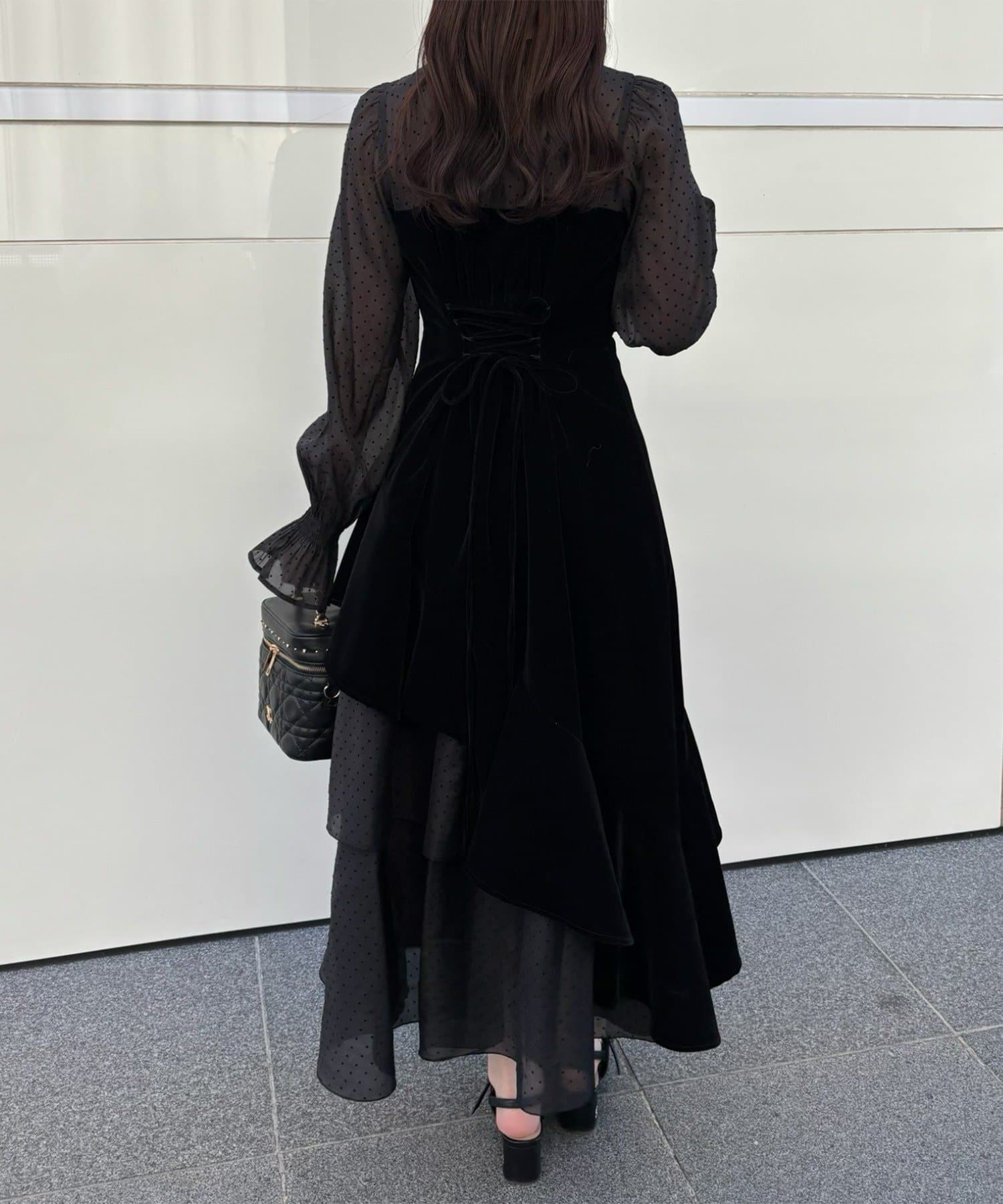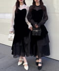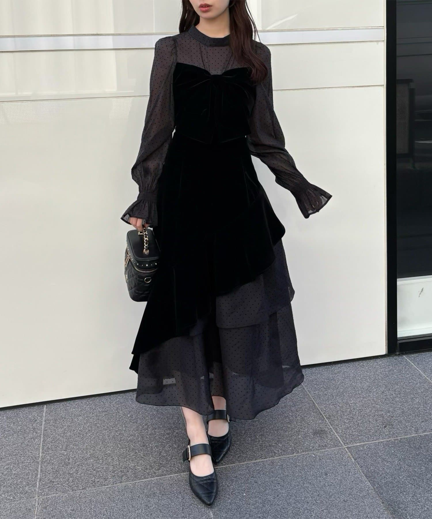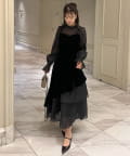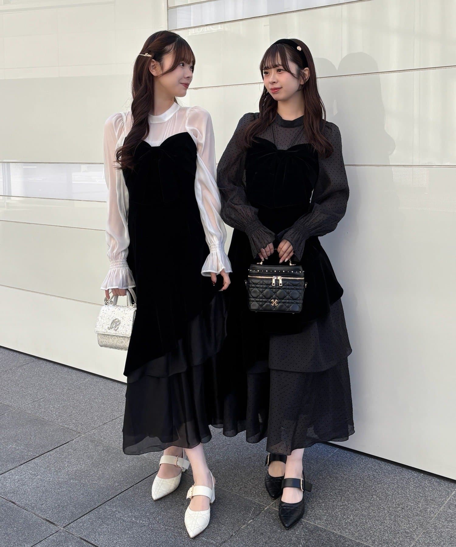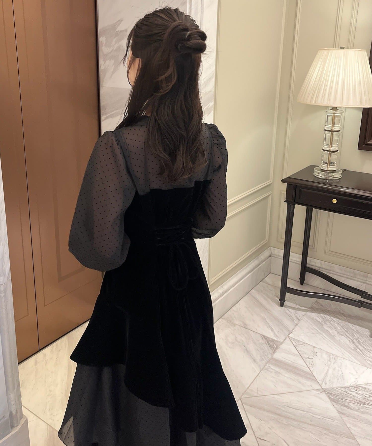 【Occasion Collection】ベロアリボン異素材ワンピース