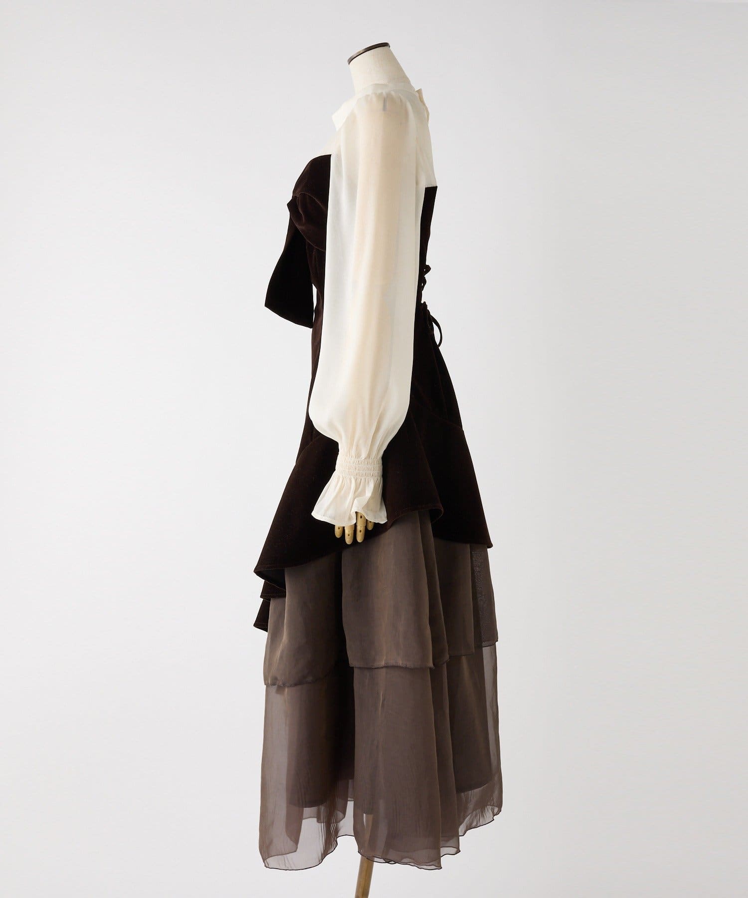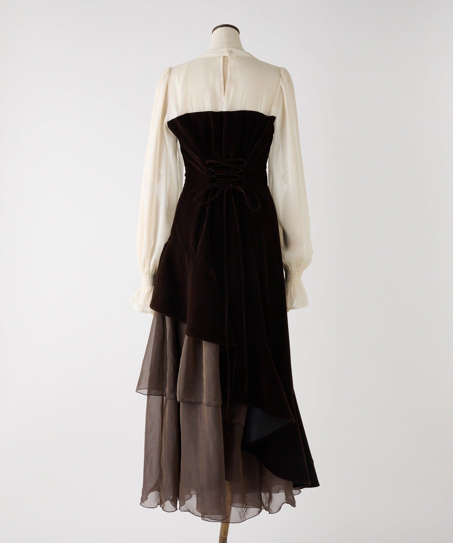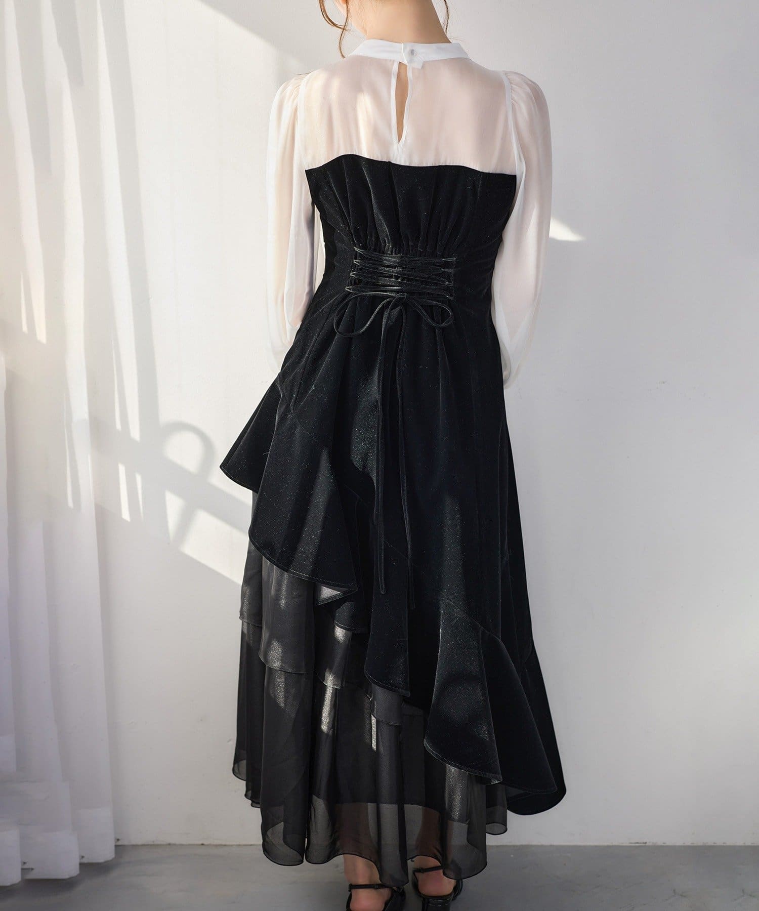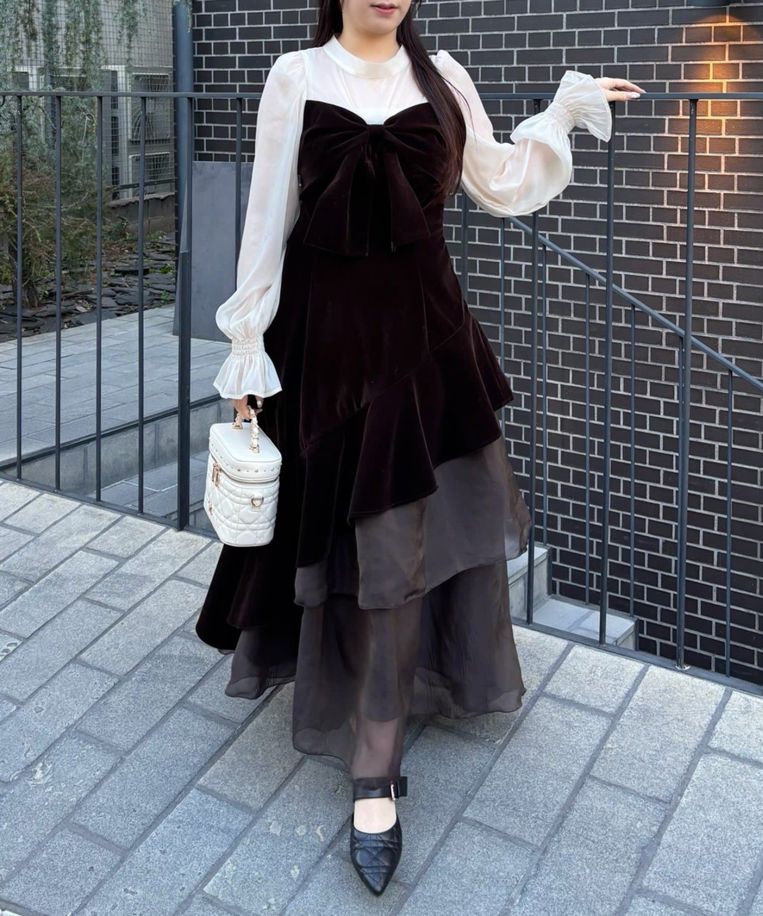 【Occasion Collection】ベロアリボン異素材ワンピース