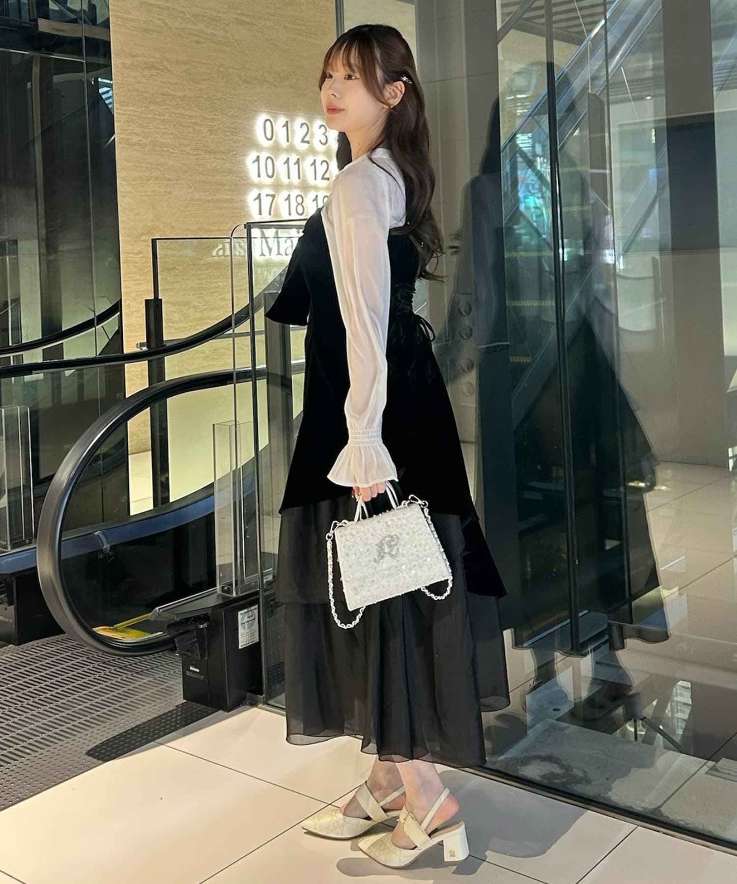 ビジューカチューシャ + コンパクトバッグ でお呼ばれシーンにも◎