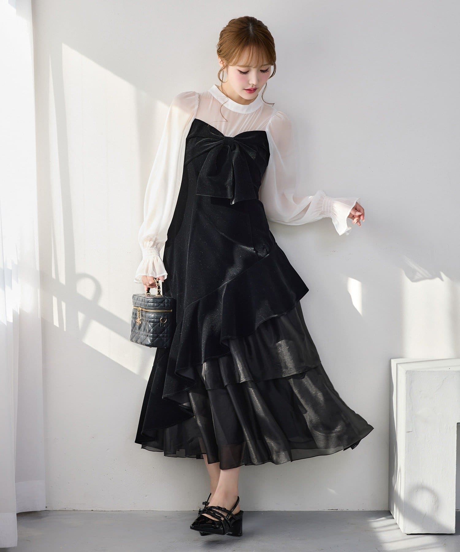 フロントの大きめリボンが視線を集め、裾はイレヘムデザインで軽やかな揺れを楽しめます。