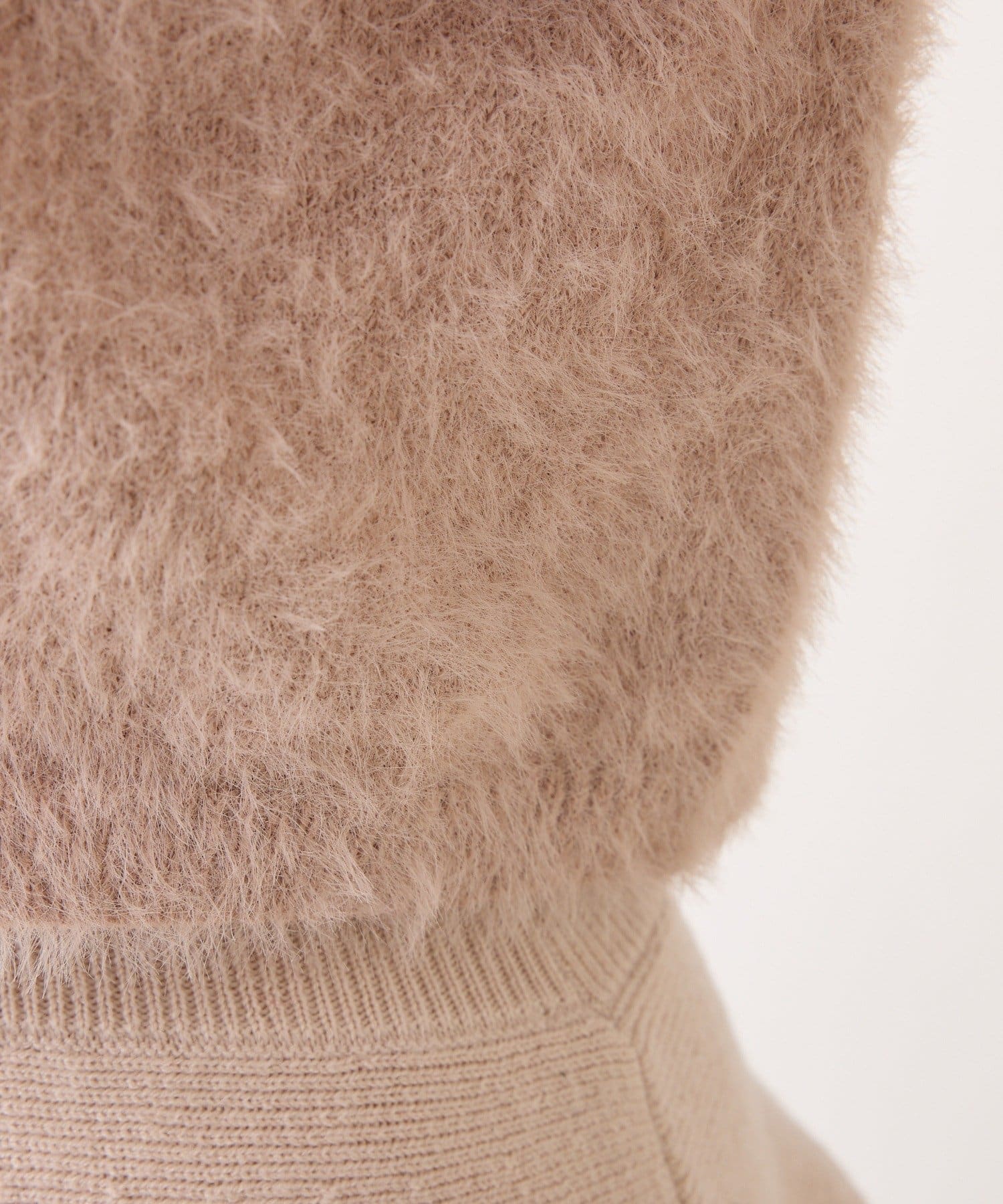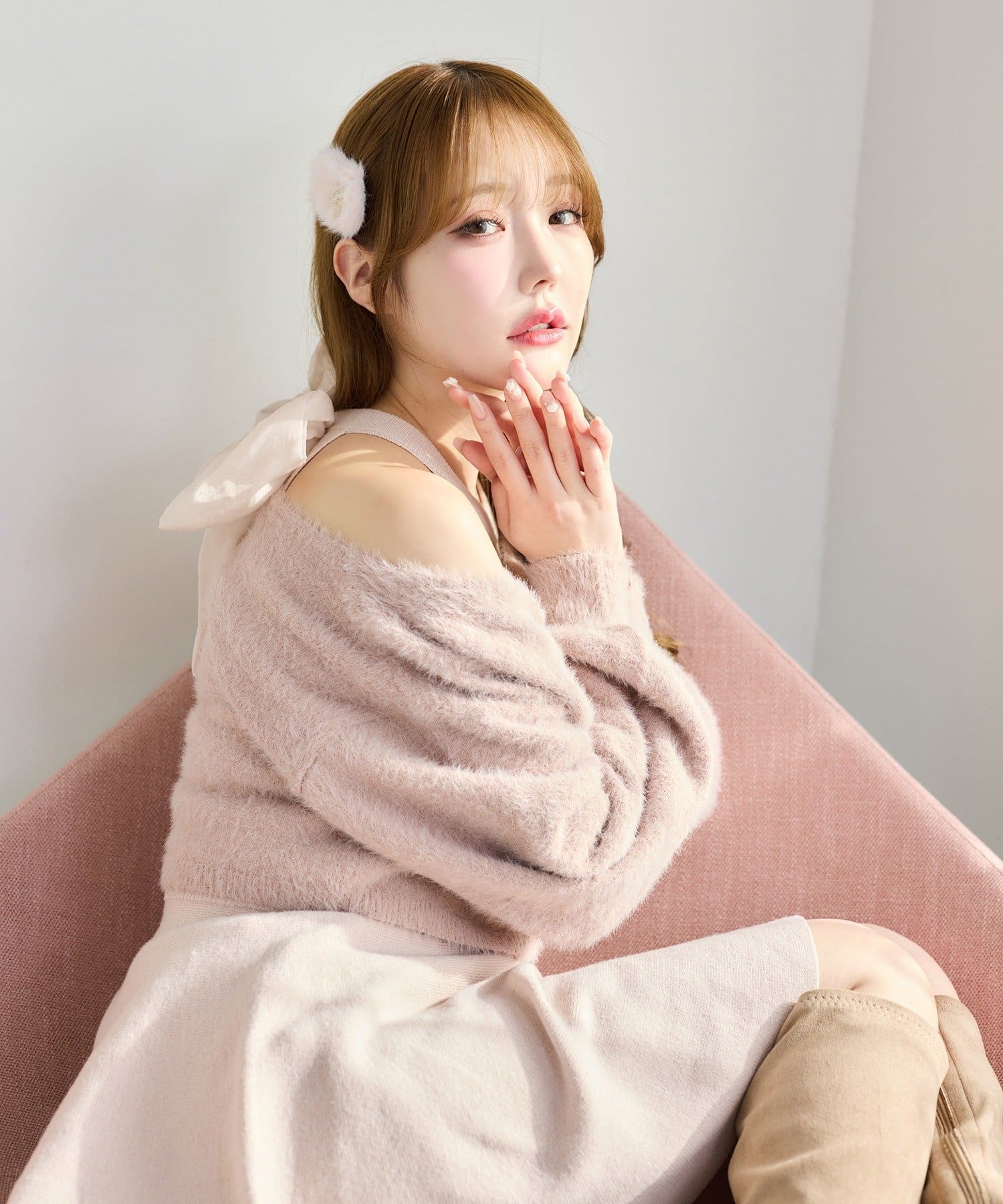 ふわふわのフェザーカーデがセットになった、着るだけで可愛いコーデが完成する