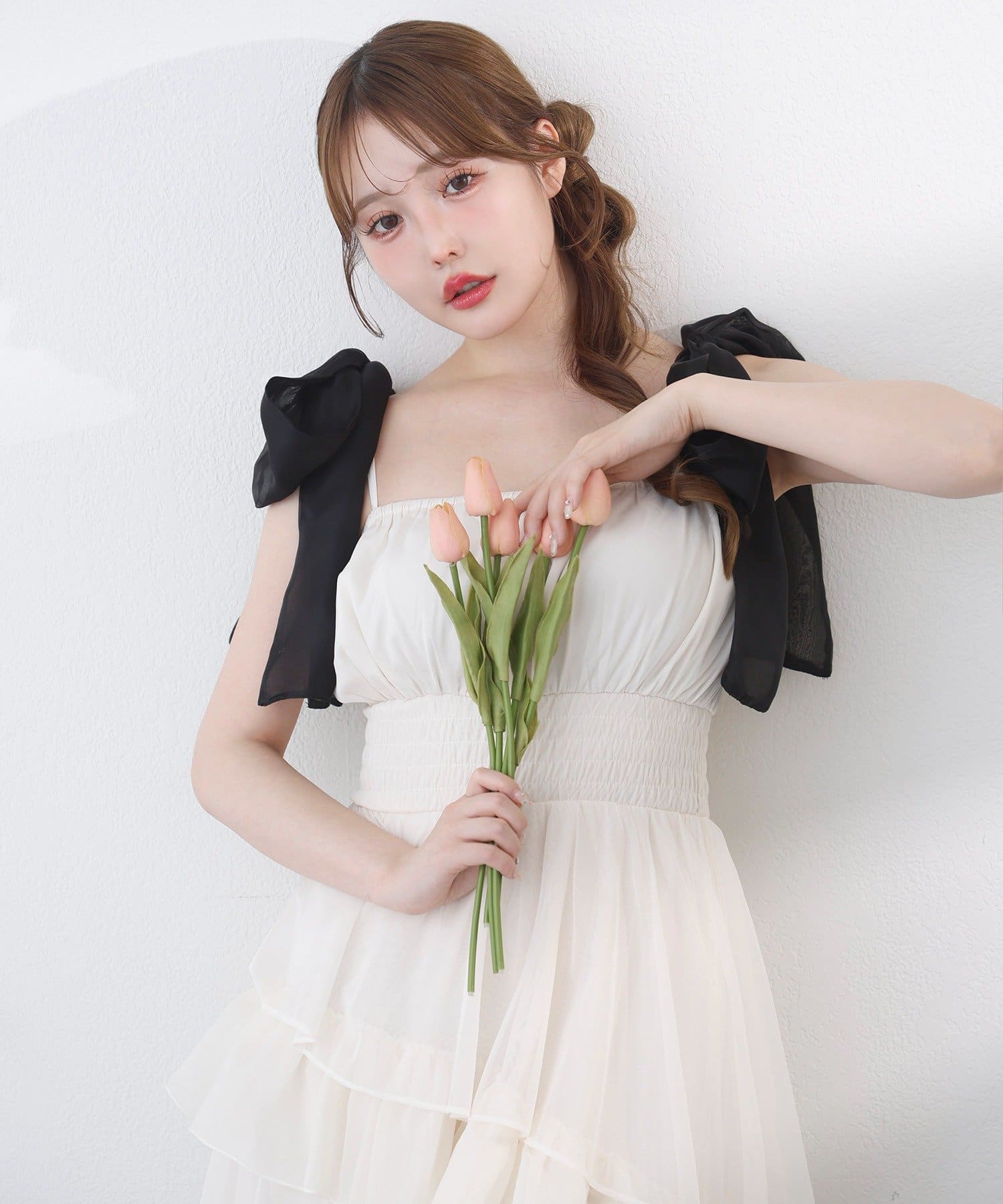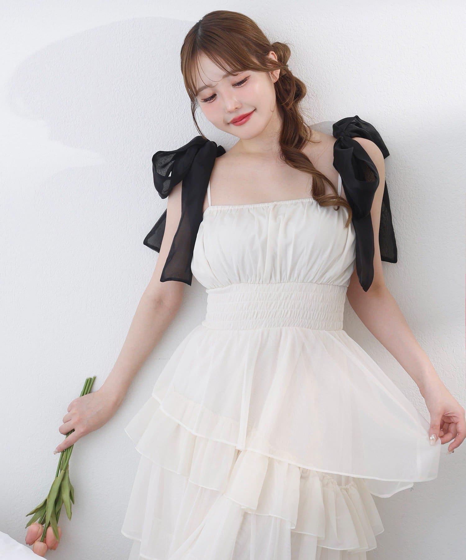 チュールのフリルを贅沢にあしらったティアードワンピース