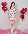 ハートモチーフを取り入れたアーガイルチェックが目を惹く、主役級ミニニットワンピース。