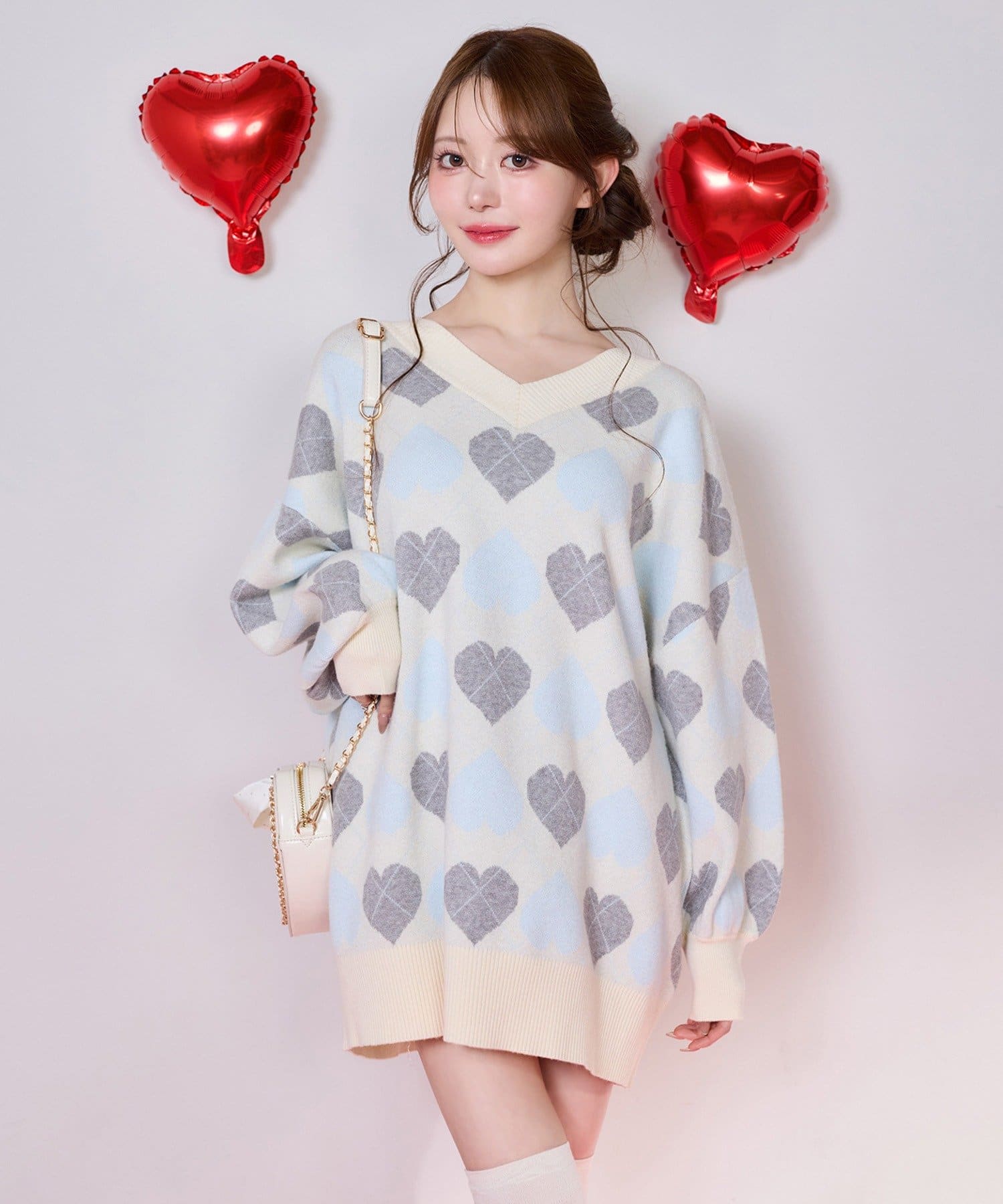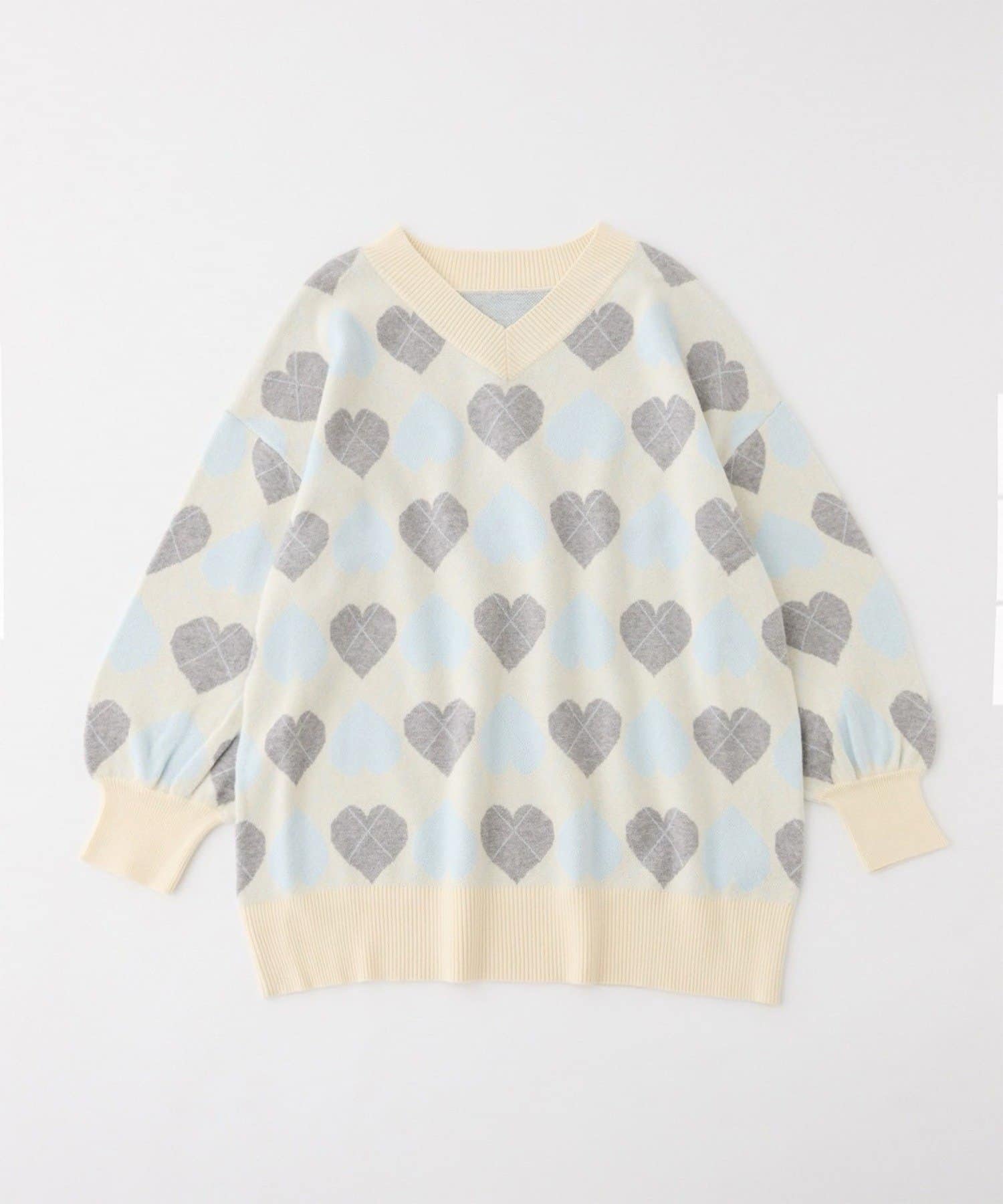 甘さのあるハート柄と、落ち着いたアーガイルデザインの組み合わせで、可愛くなりすぎず大人っぽさもプラス。