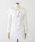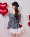 オフショルデザインの折り返しブラウスに、