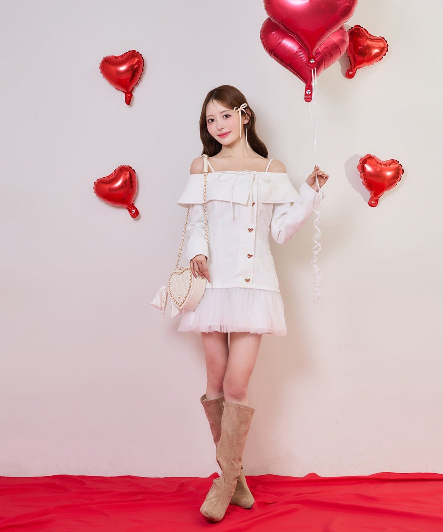 ロングブーツを合わせて王道ガーリーコーデに
