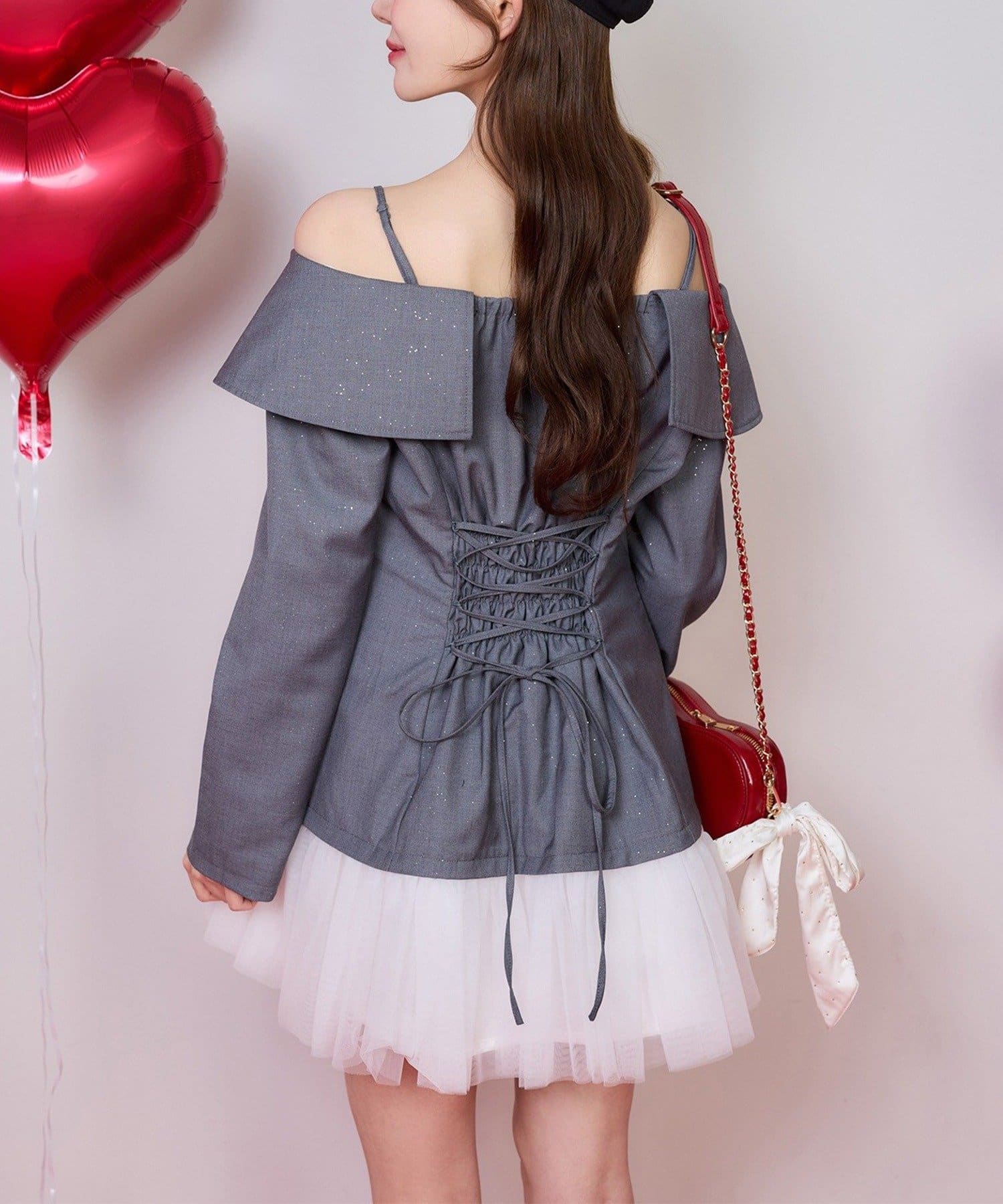 裾がバルーンシルエットのスカートをドッキングした主役級ミニワンピース。