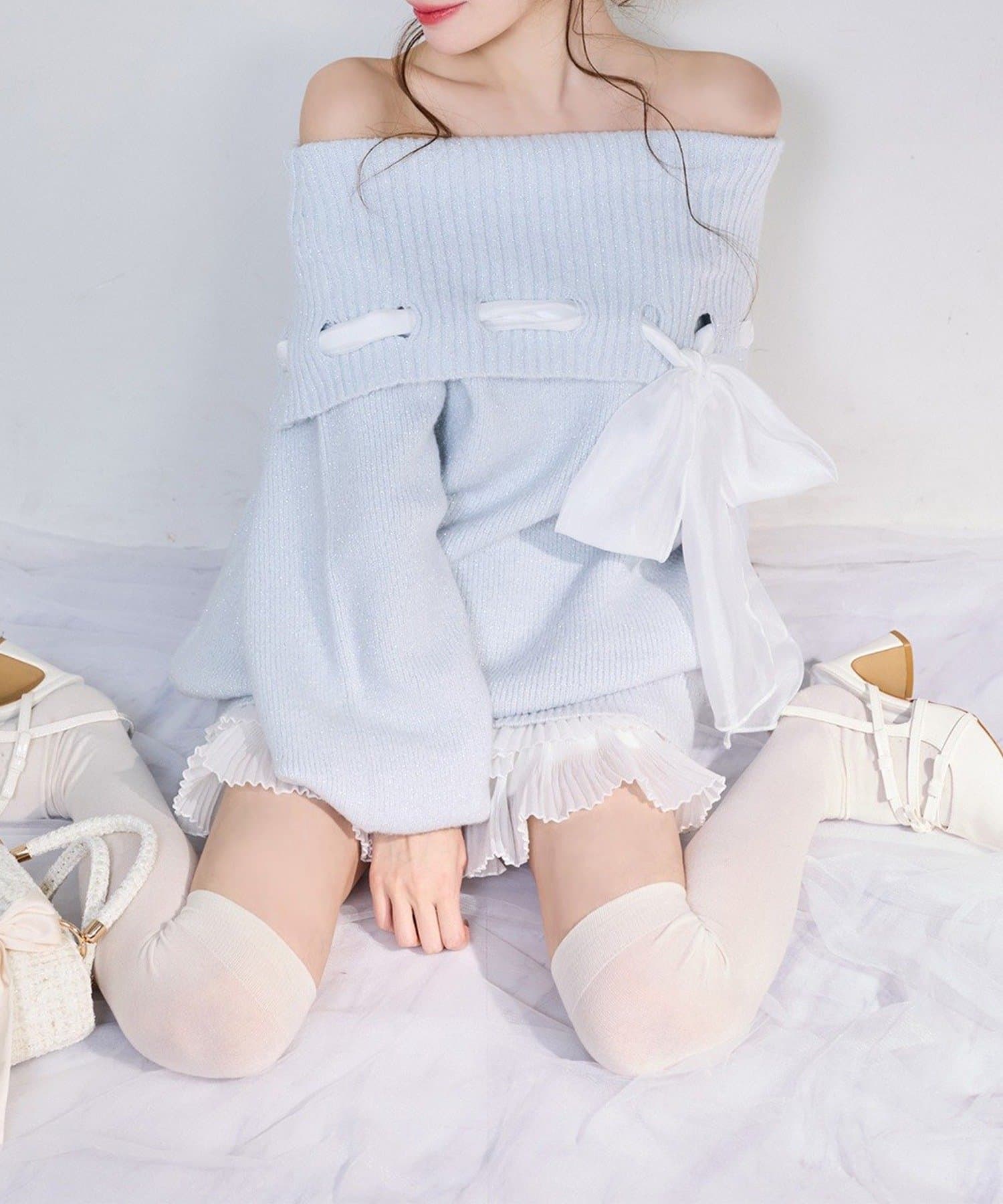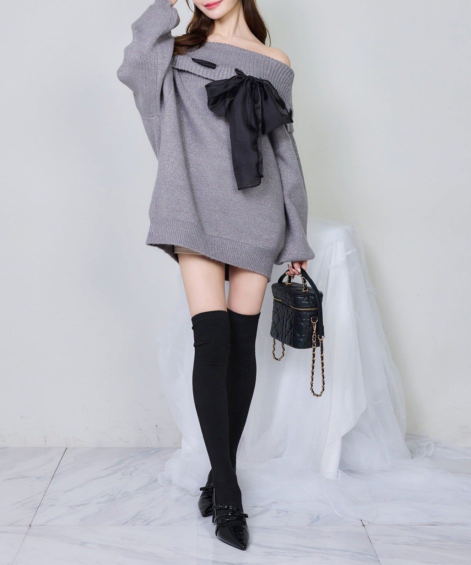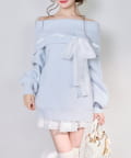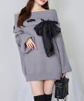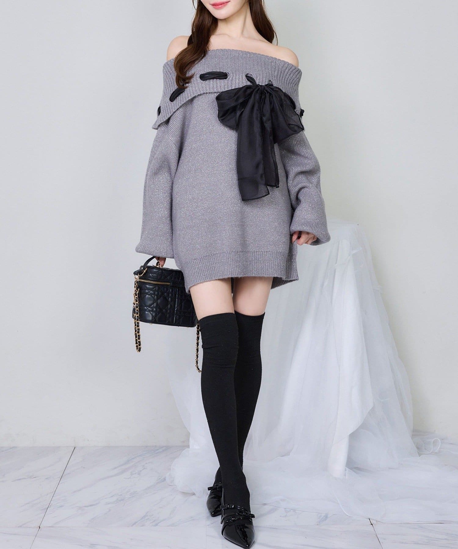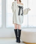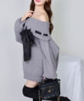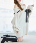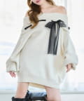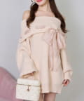 【one after another】リボン付きオフショルニットワンピ