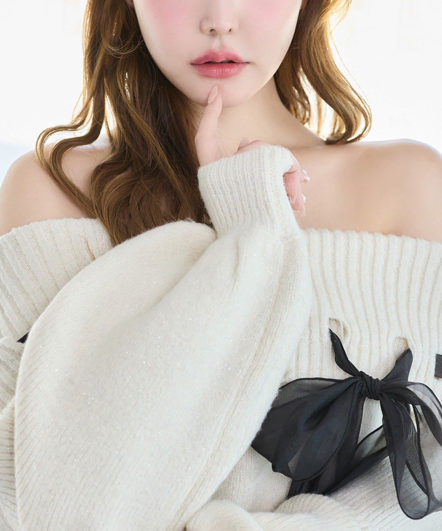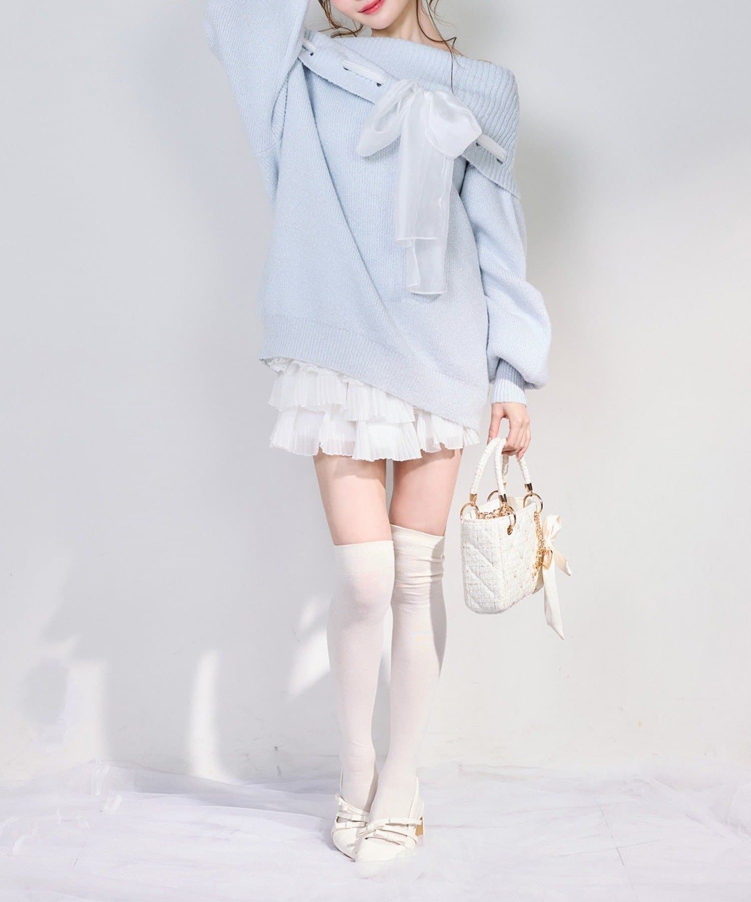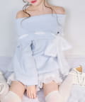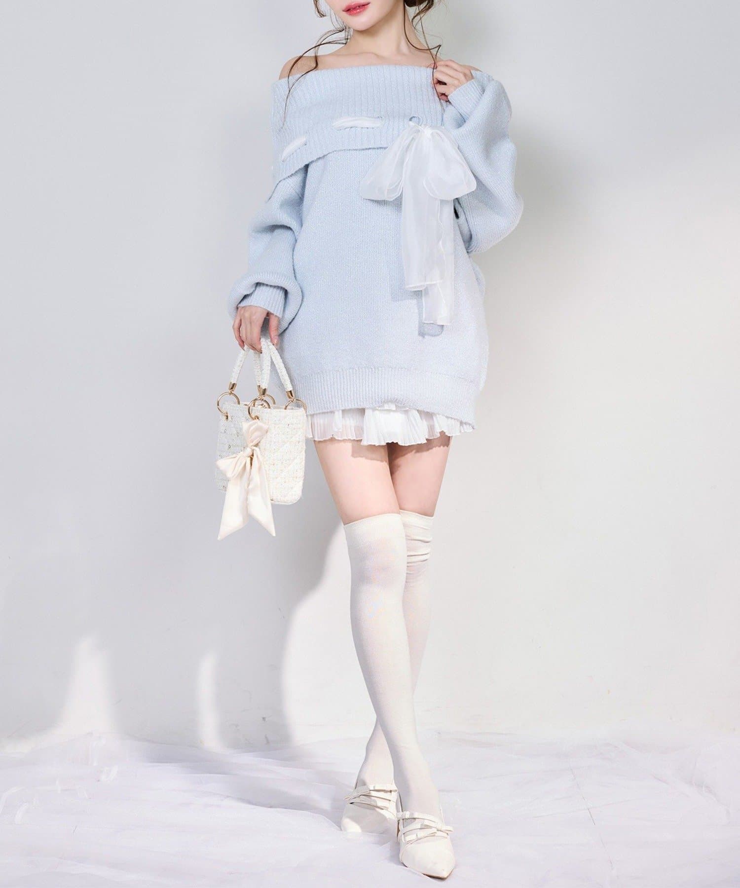 【one after another】リボン付きオフショルニットワンピ