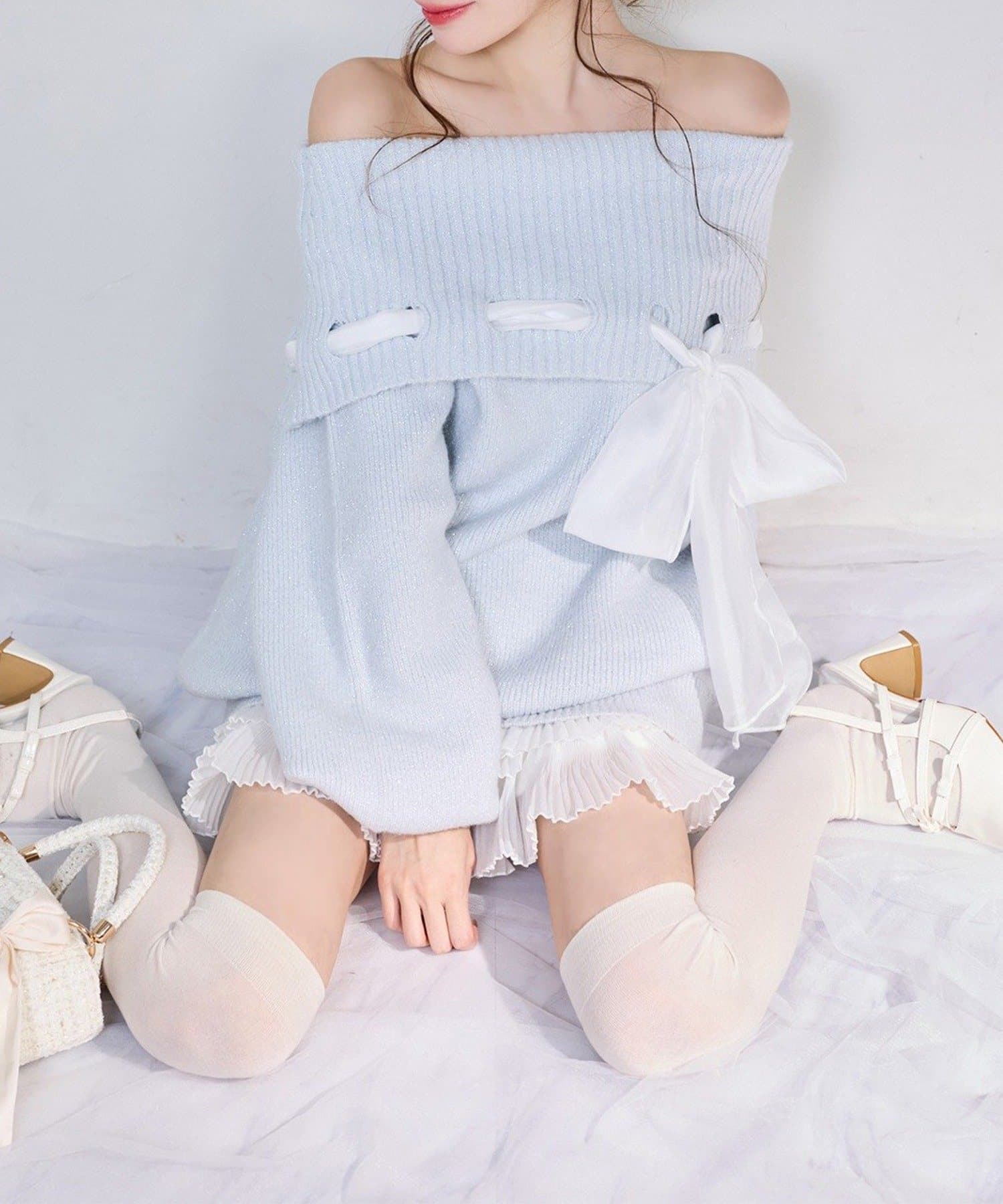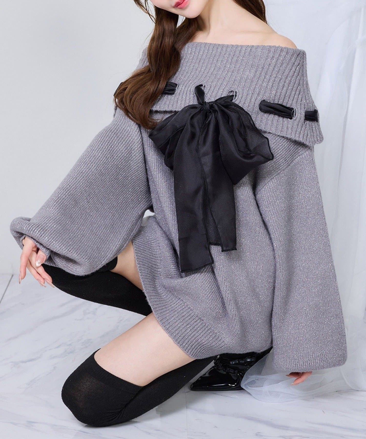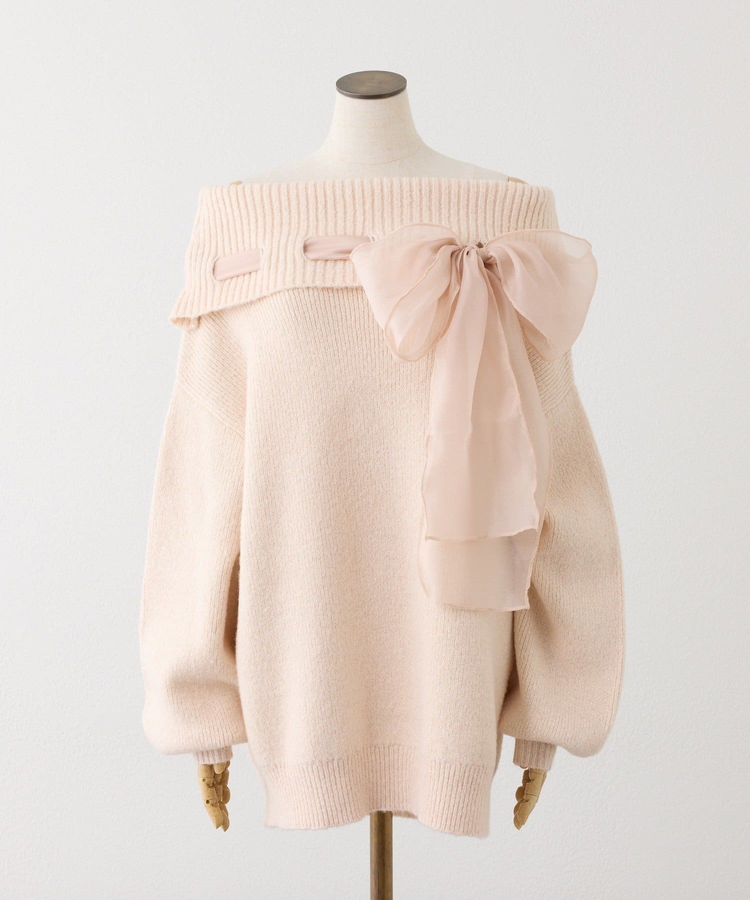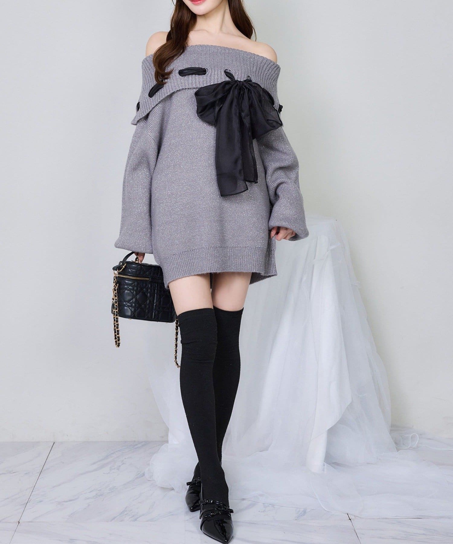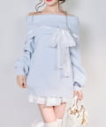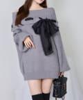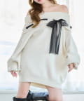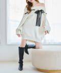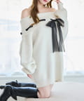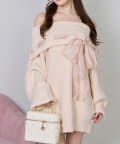 【one after another】リボン付きオフショルニットワンピ