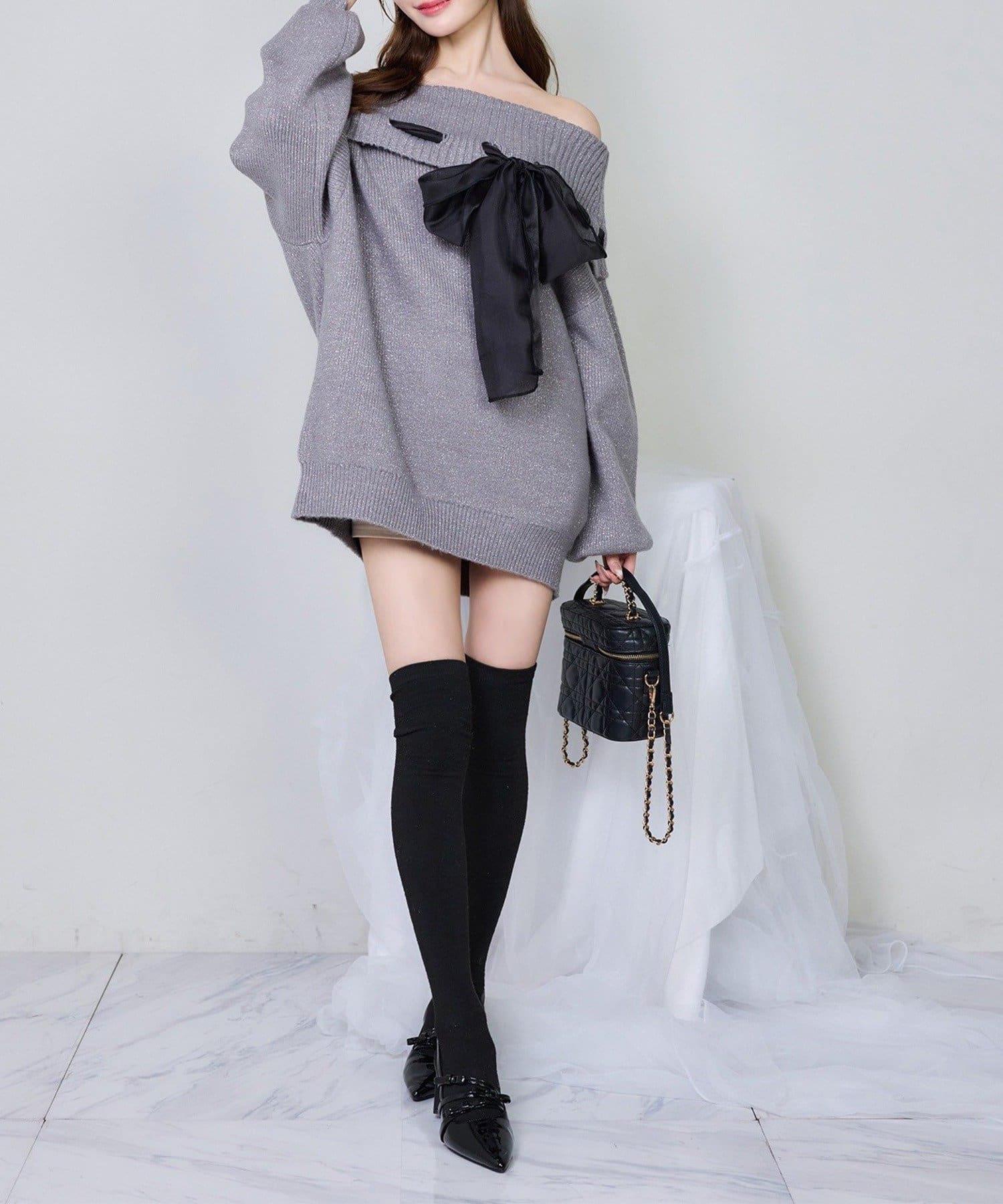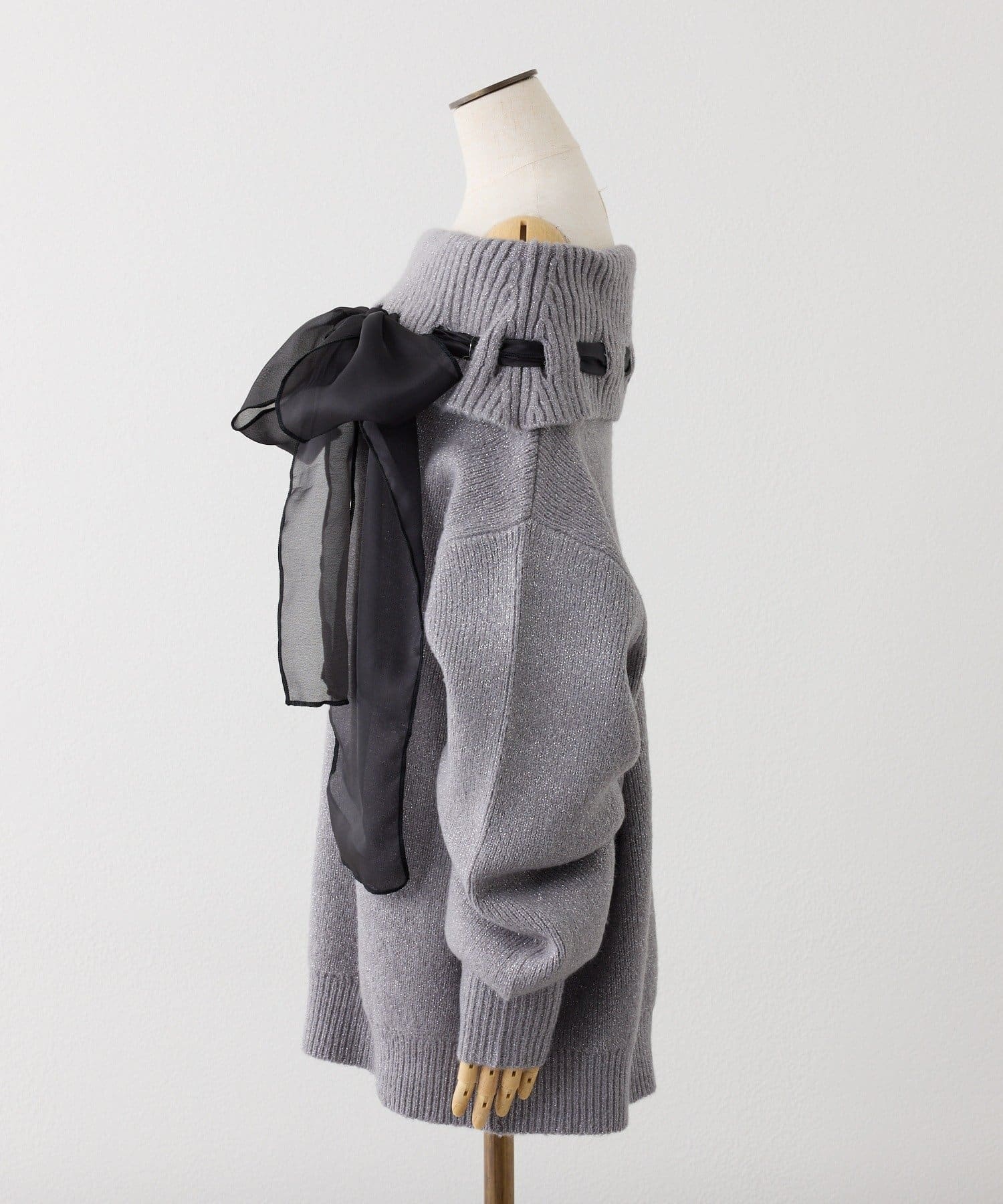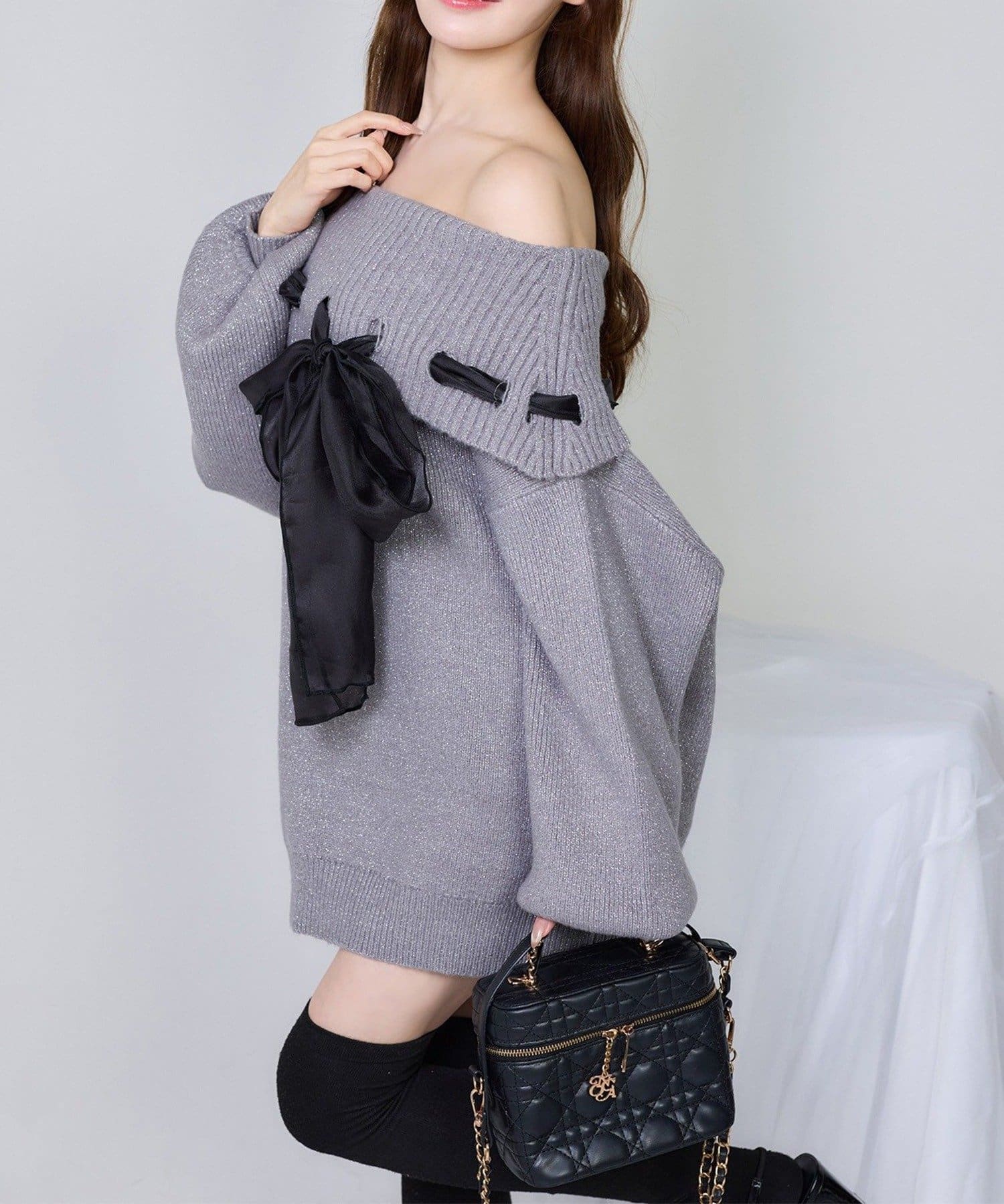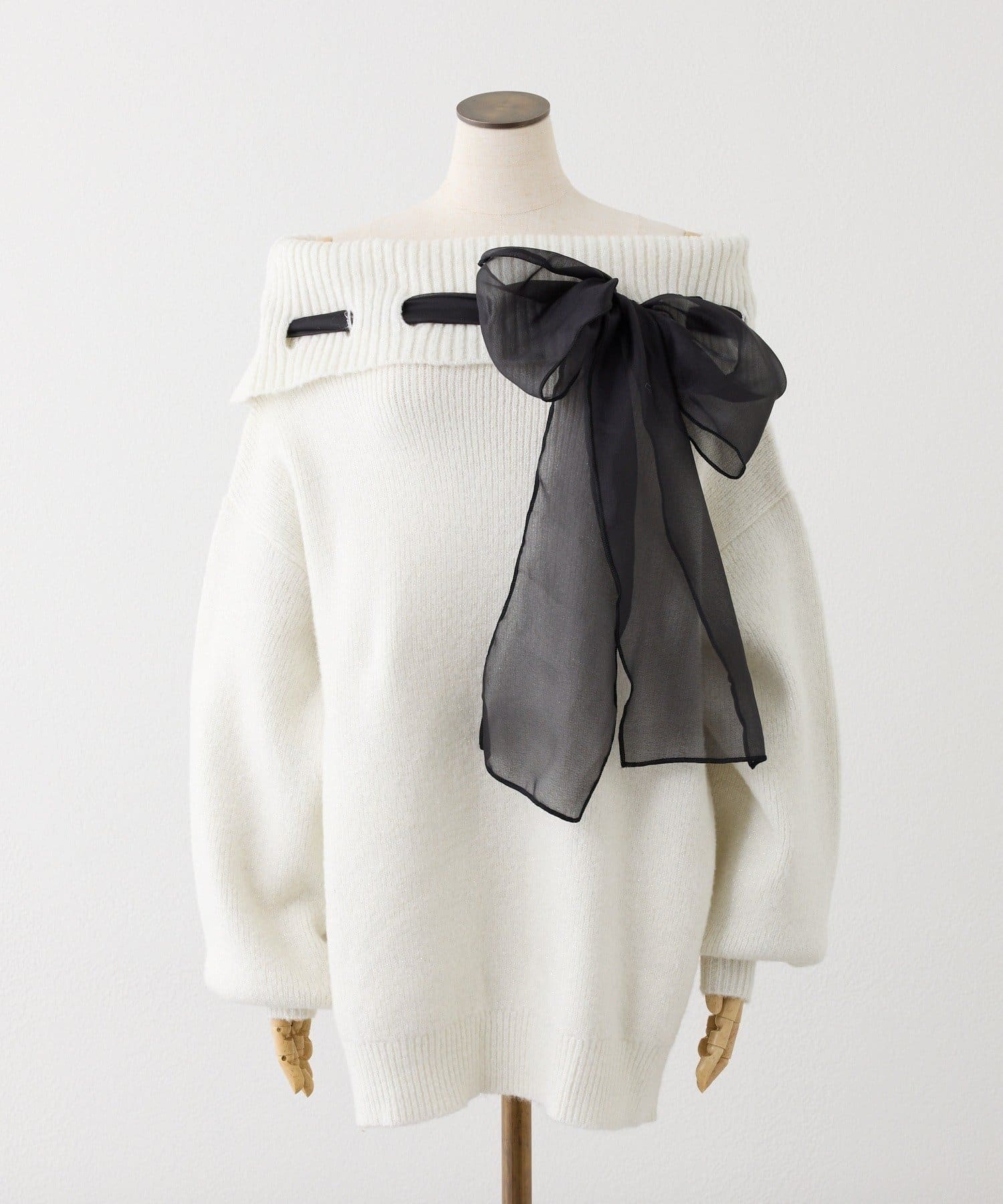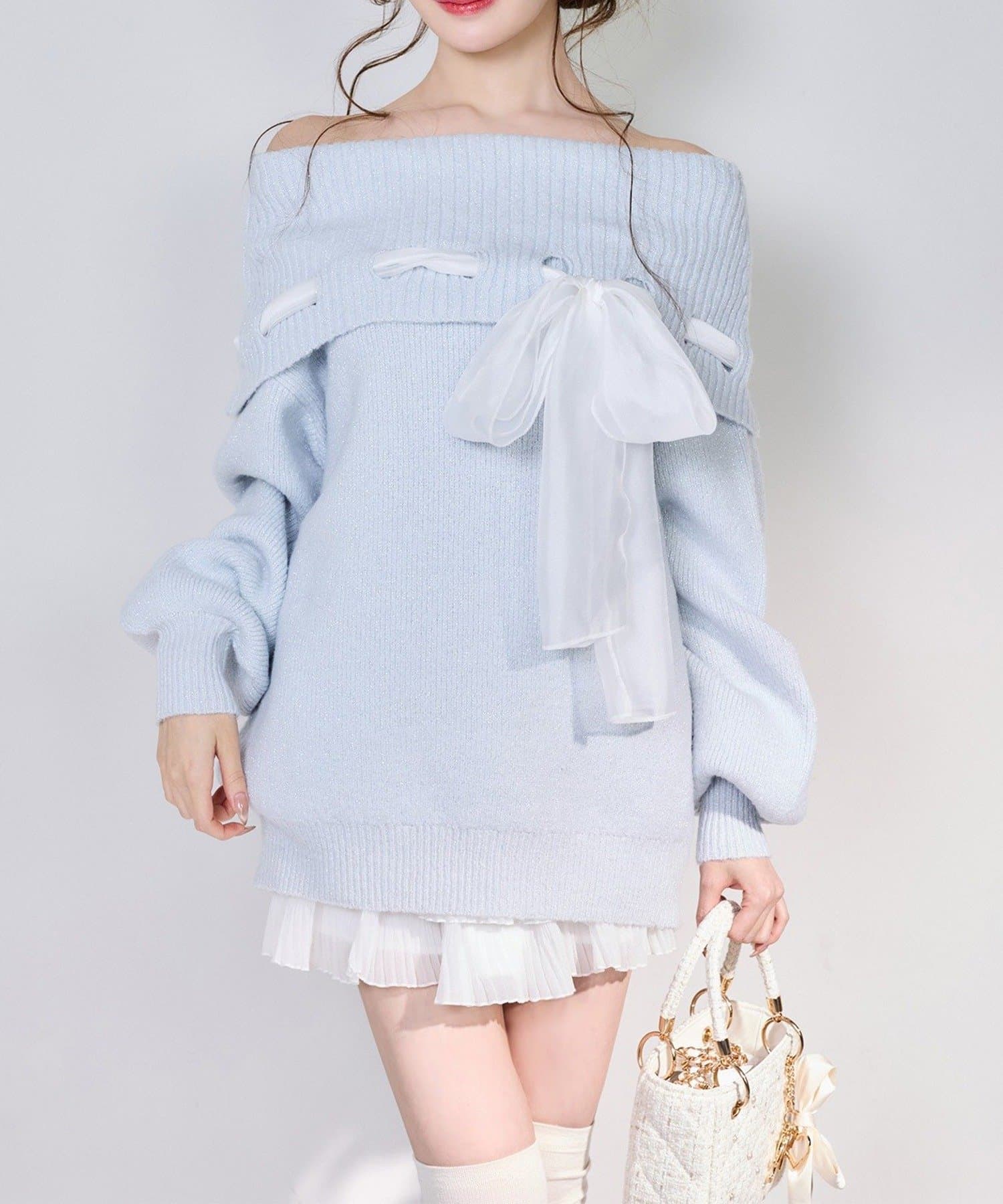 【one after another】リボン付きオフショルニットワンピ