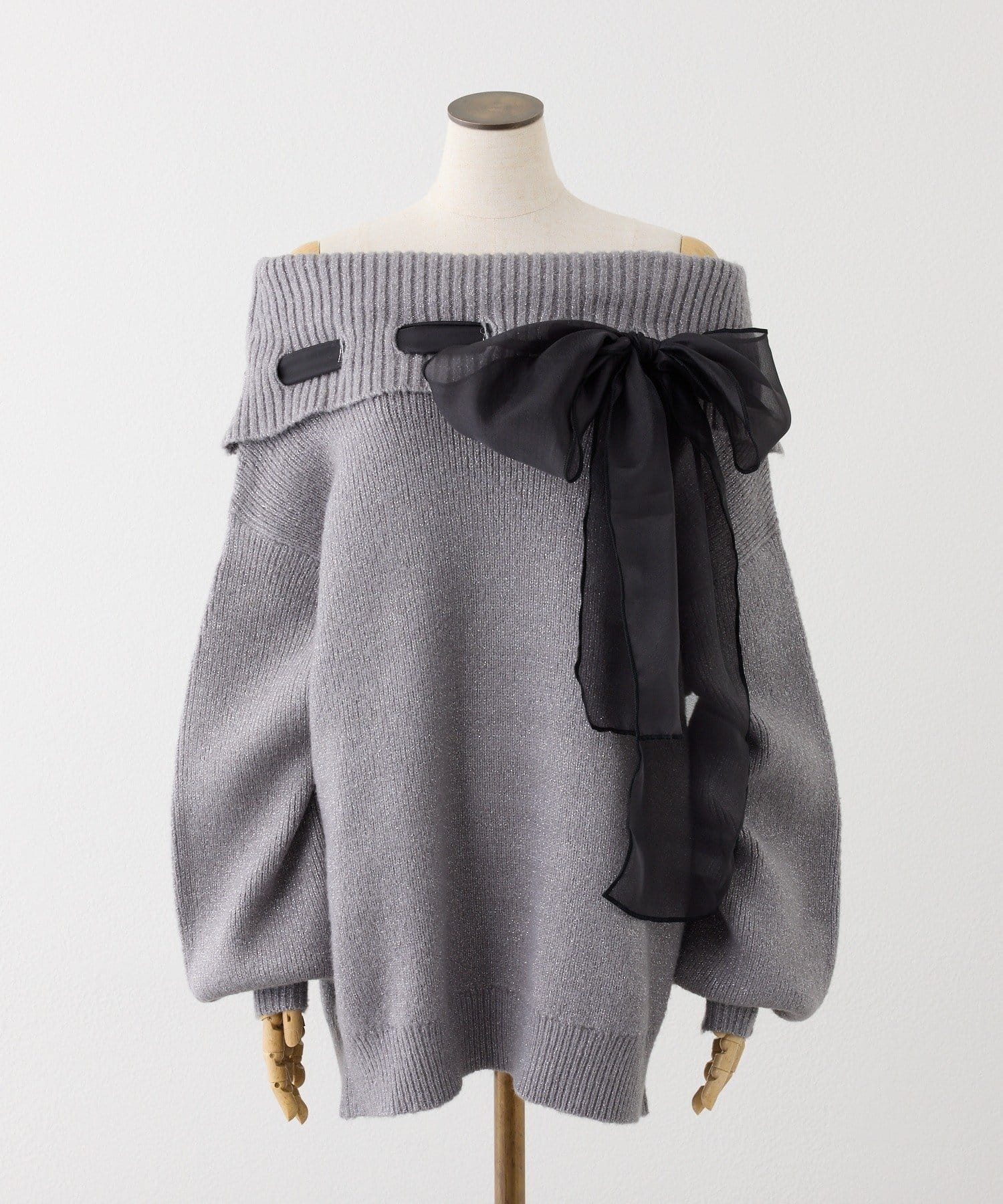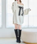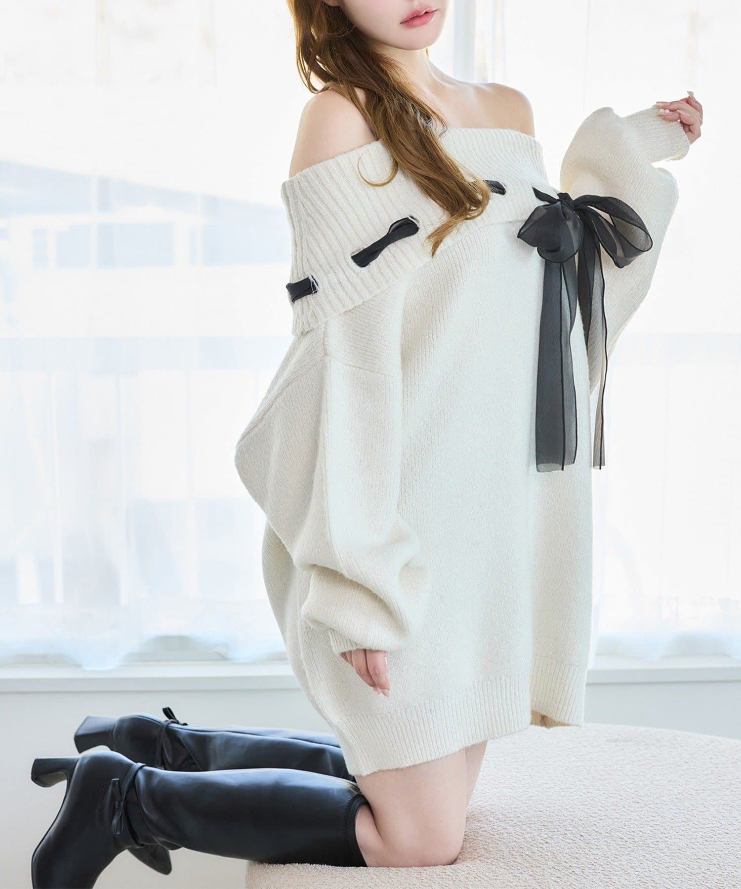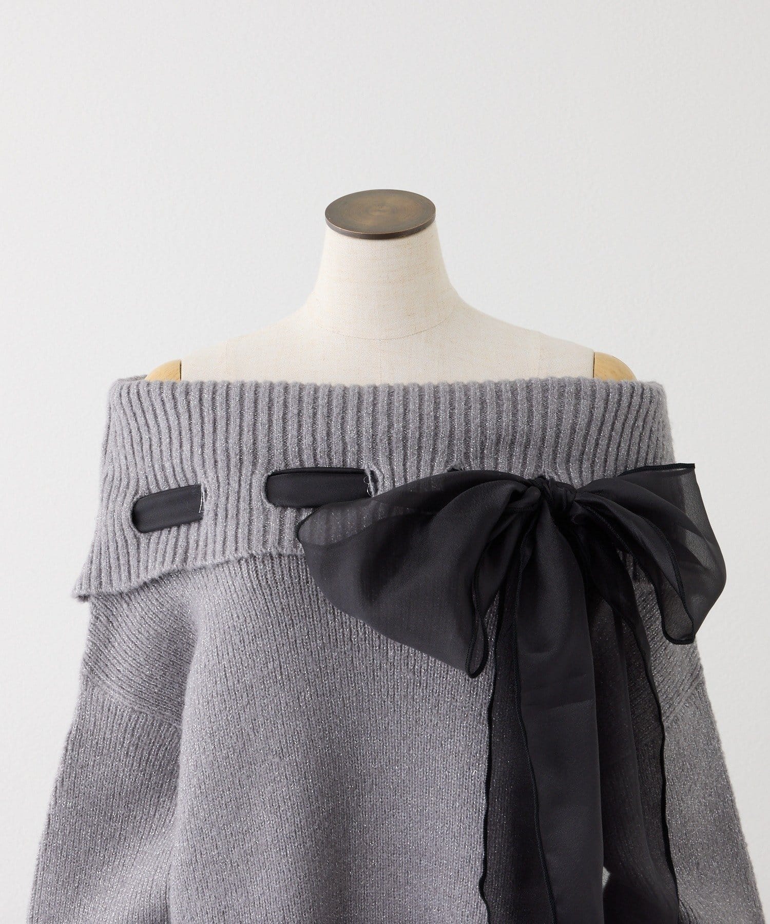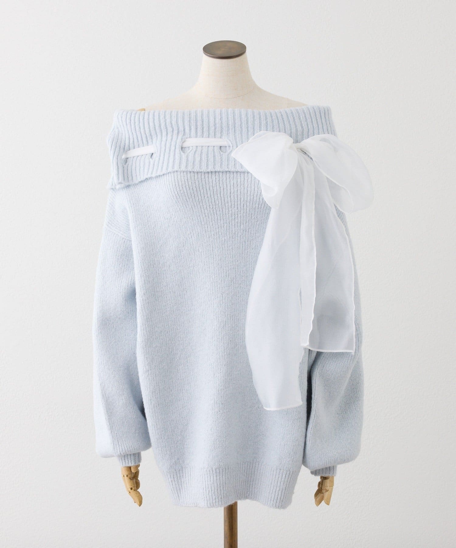 【one after another】リボン付きオフショルニットワンピ