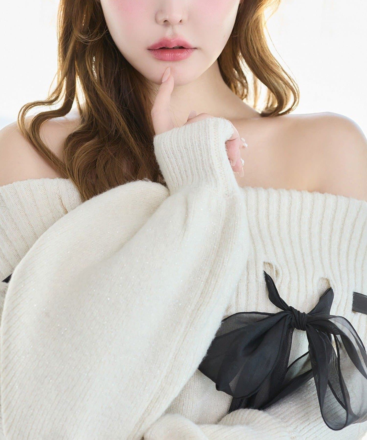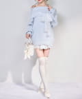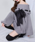 • NICE CLAUP / OLIVE des OLIVE OUTLET(ナイスクラップ  / オリーブ デ オリーブ アウトレット) 【one after another】リボン付きオフショルニットワンピ