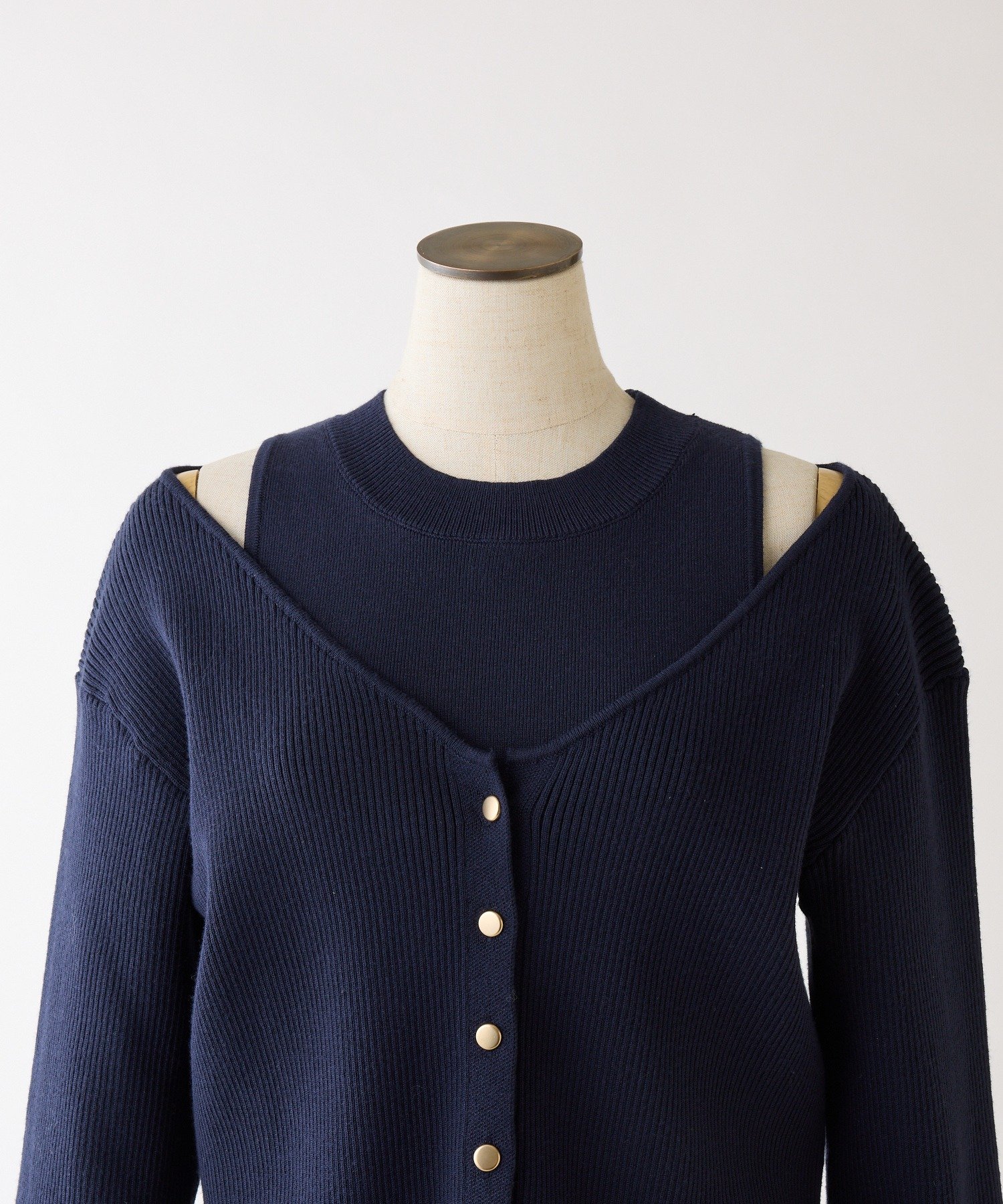 上からカーディガンを羽織るだけで、簡単にスタイルがまとまる万能セットです。